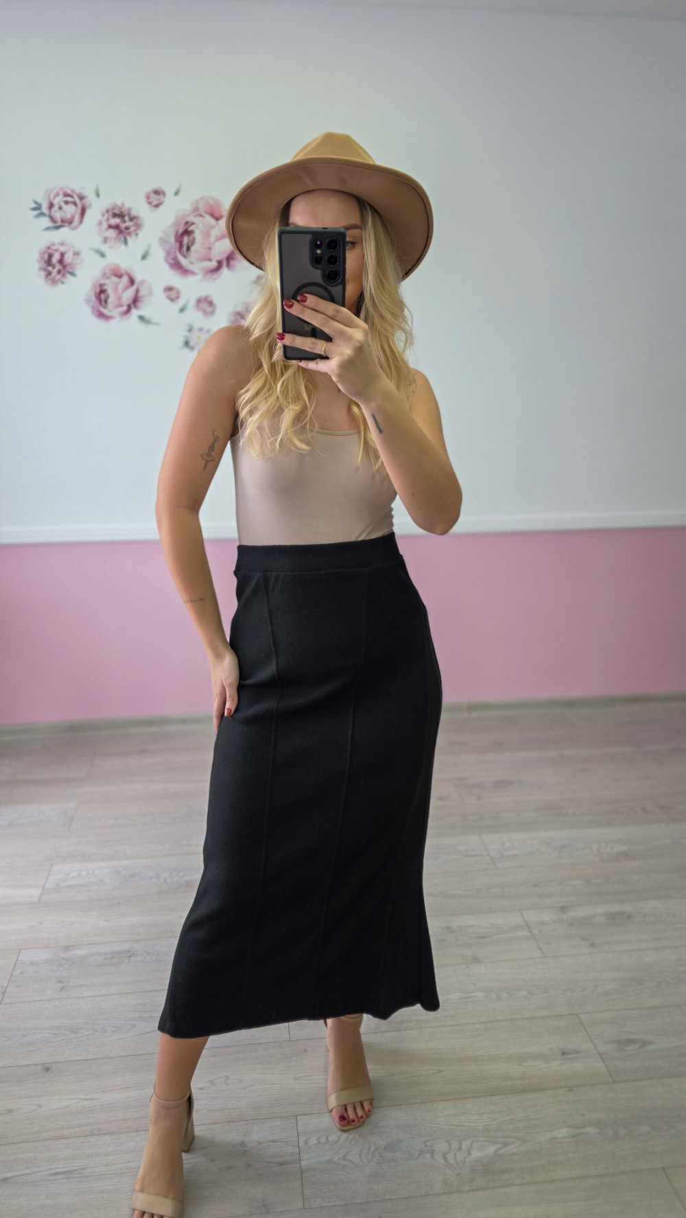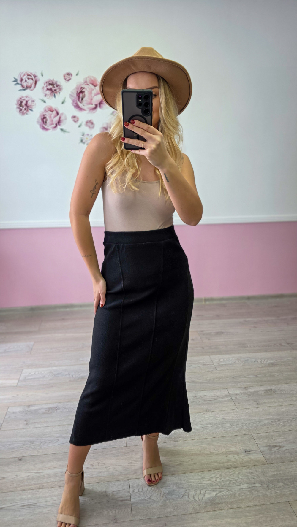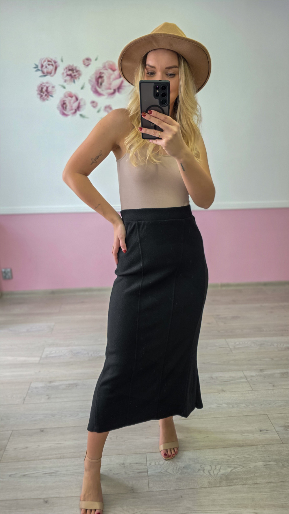 Czarna spódnica midi – elegancka, rozszerzana