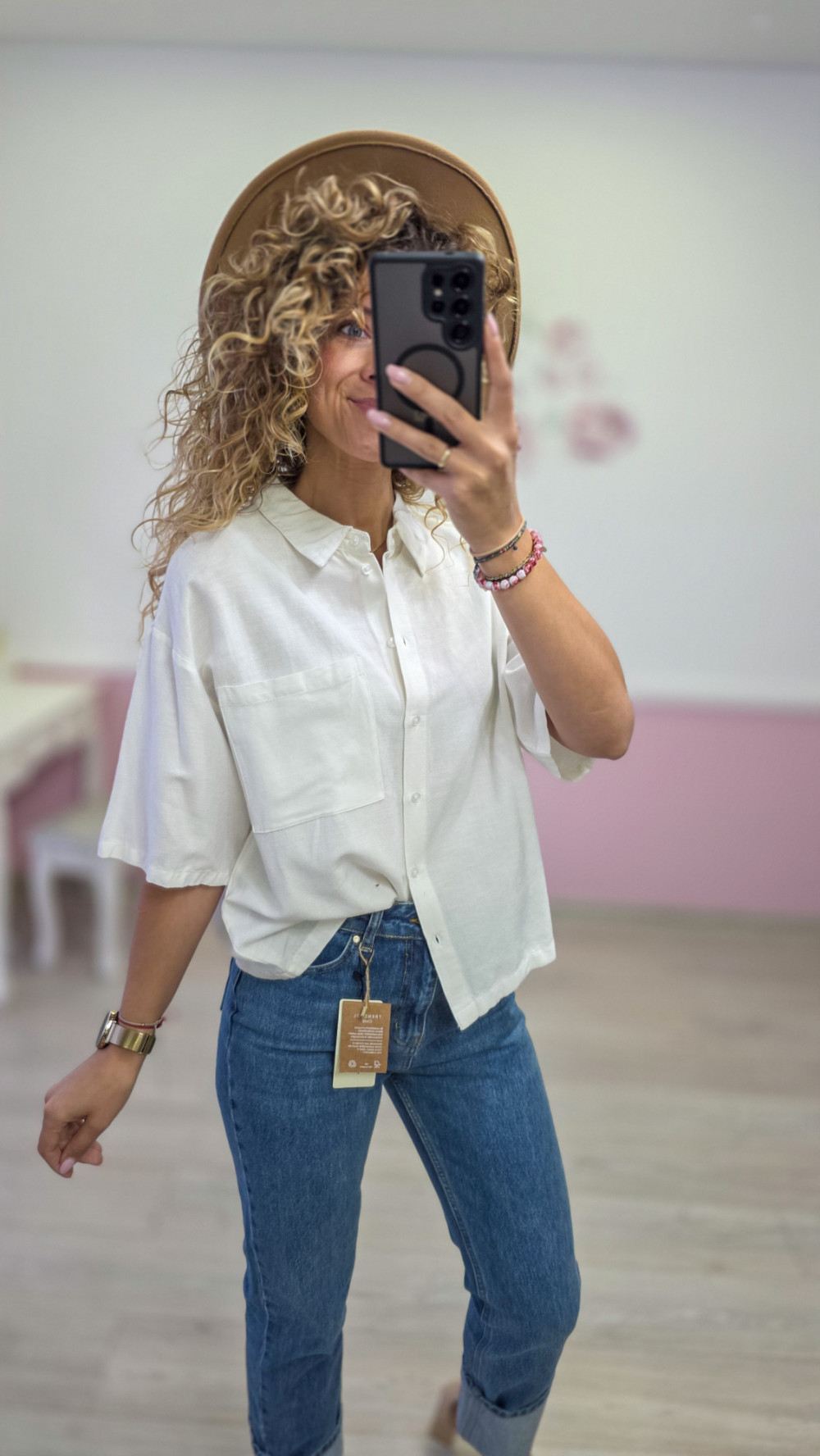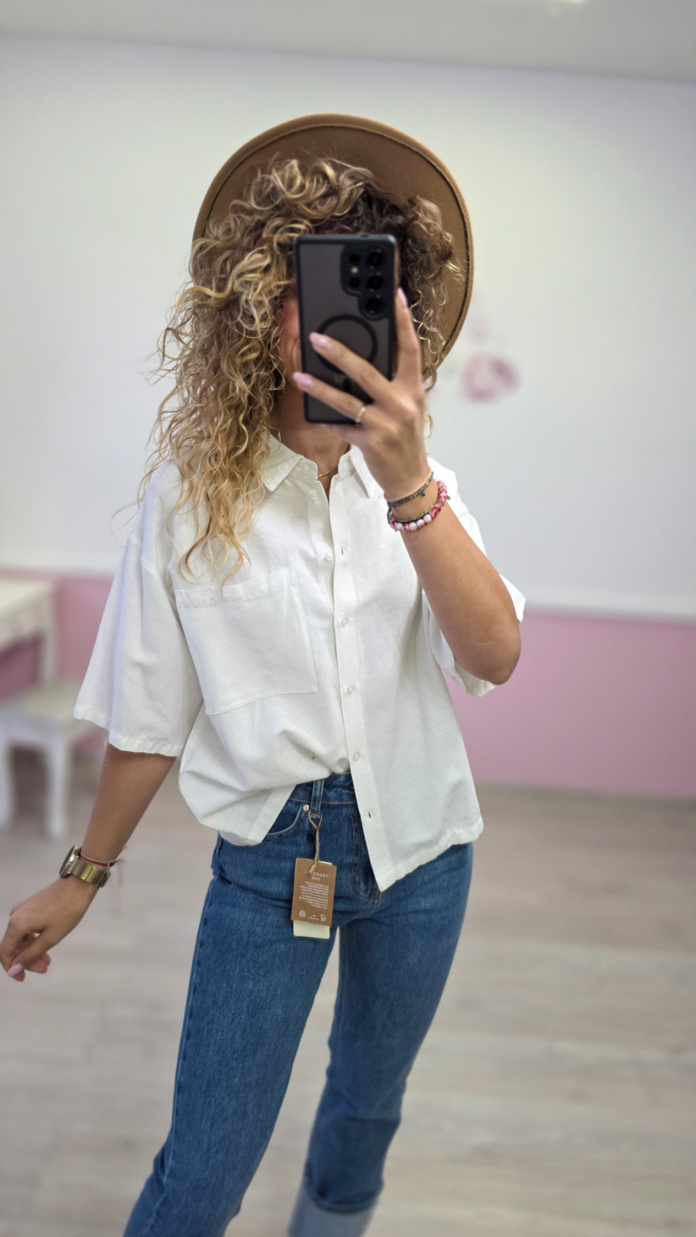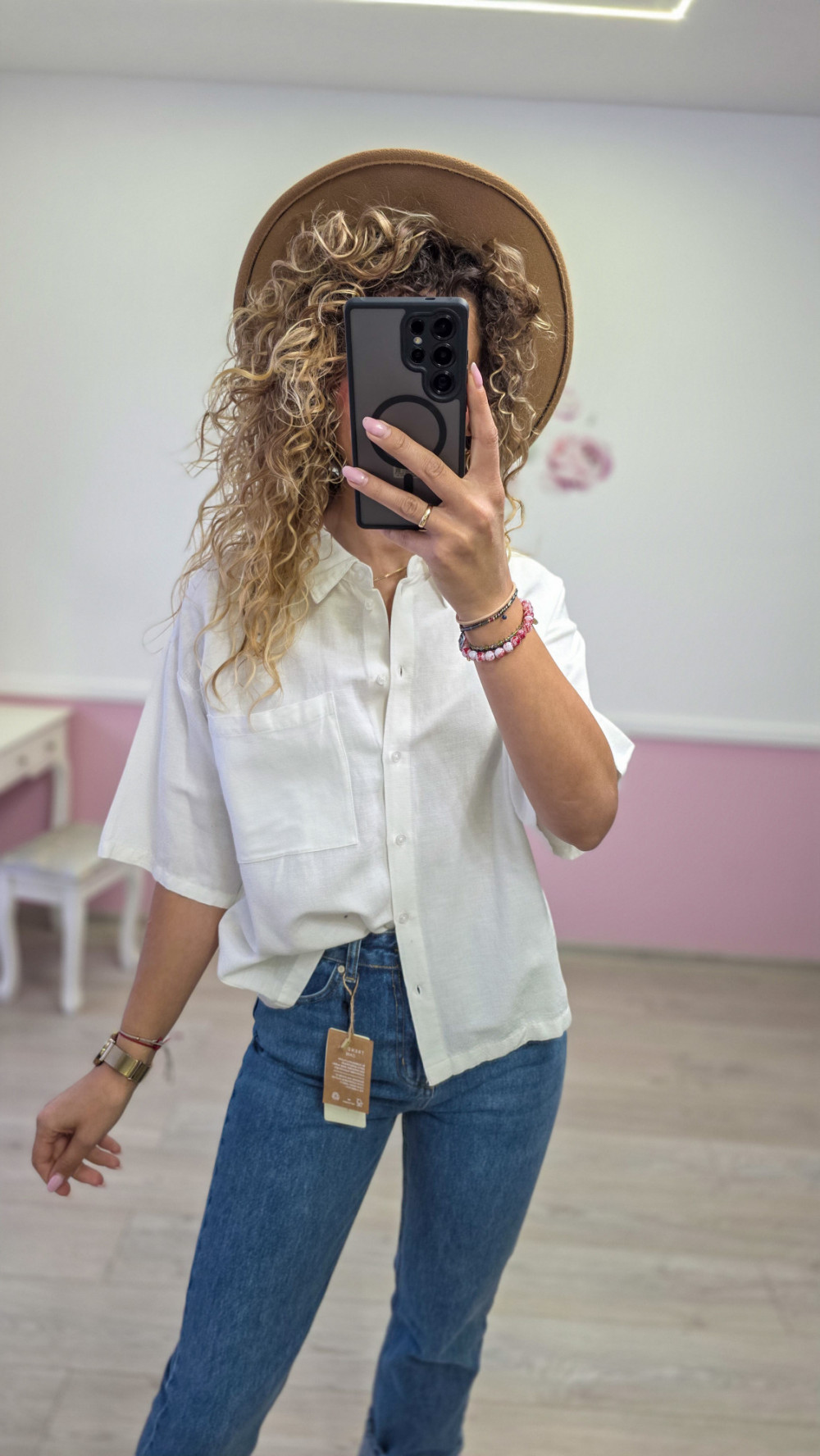 Koszula biała krótki rękaw (oversize) - wiskoza, bawełna i len