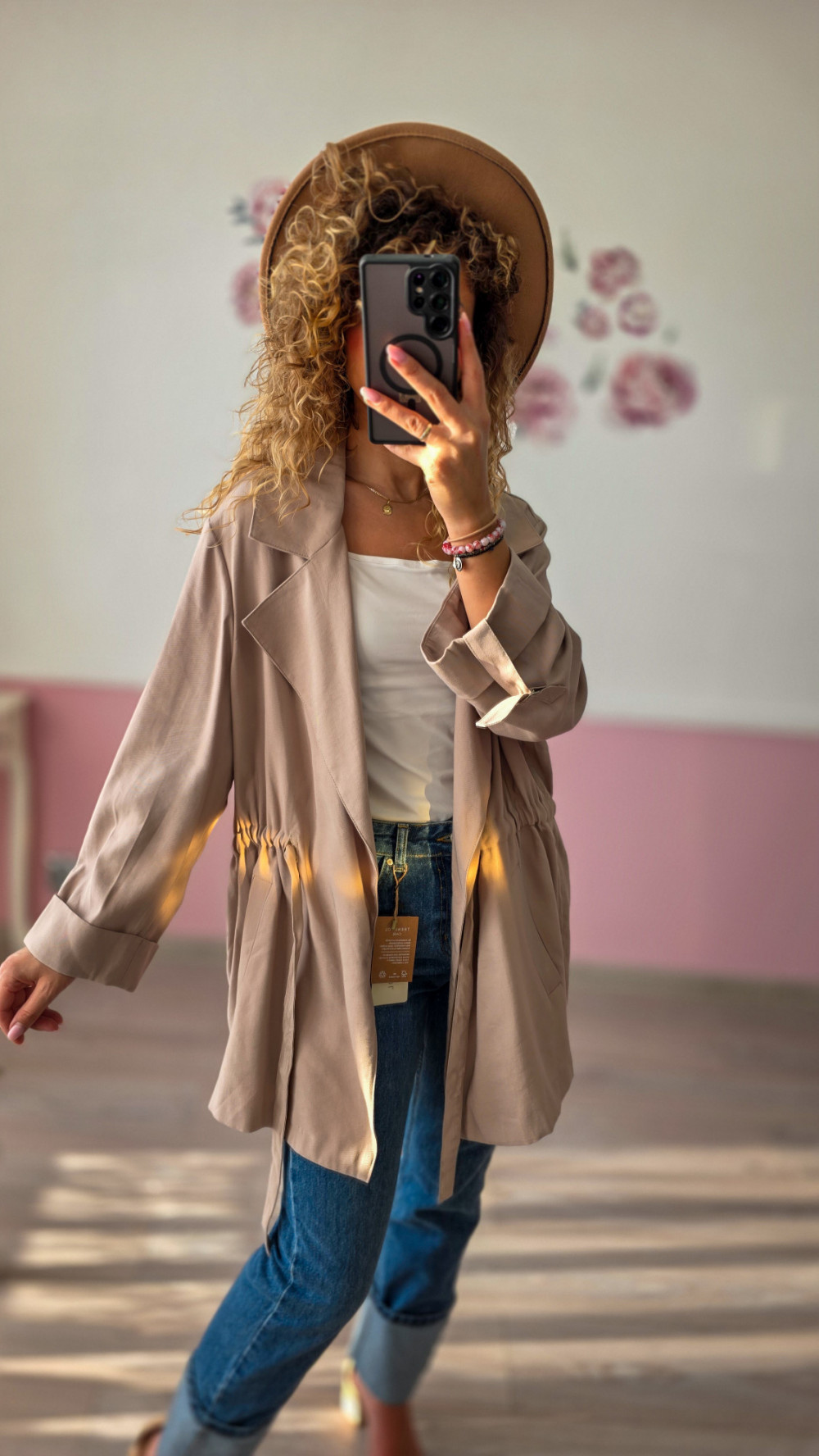 WymiarBeżowy płaszcz damski o lekkiej strukturze to elegancka propozycja na sezon przejściowy. Jego miękka linia i delikatny materiał sprawiają, że doskonale układa się na sylwetce. Pasuje zarówno do stylizacji casualowych, jak i tych bardziej eleganckich.y: