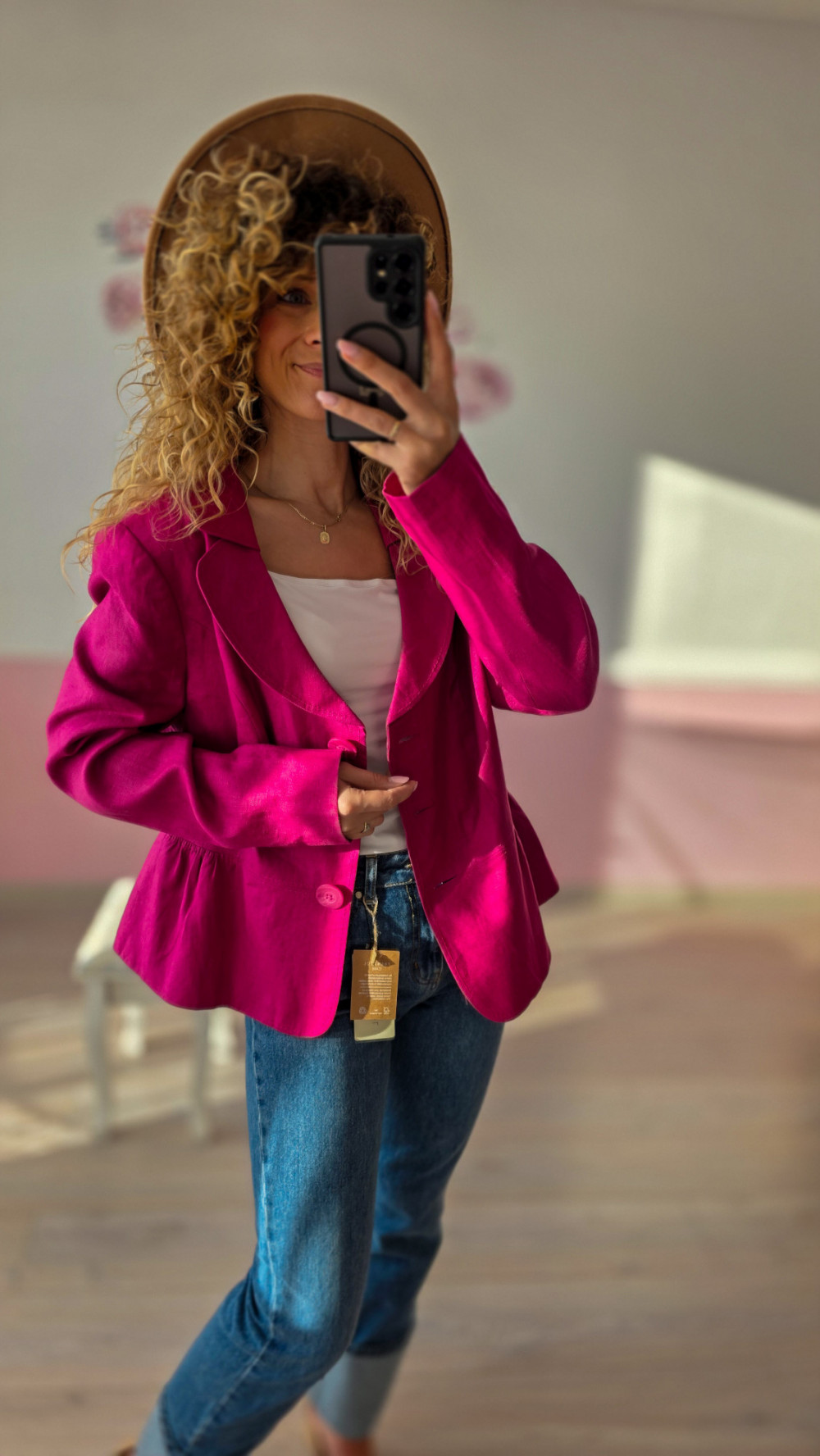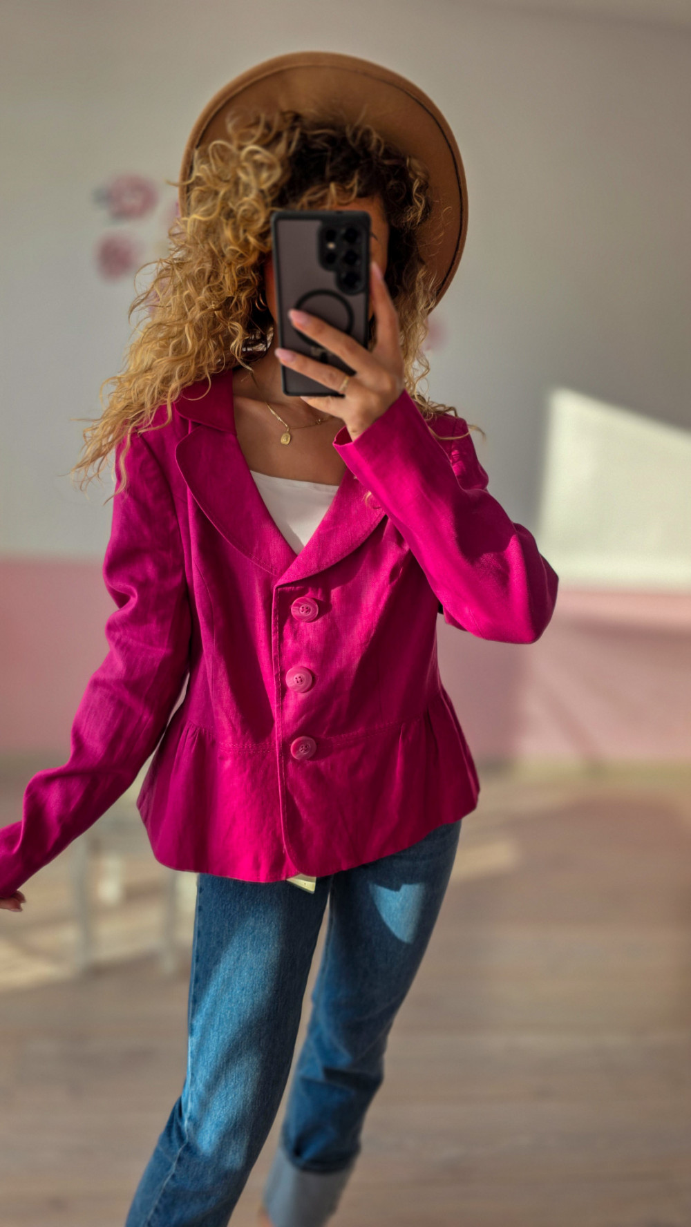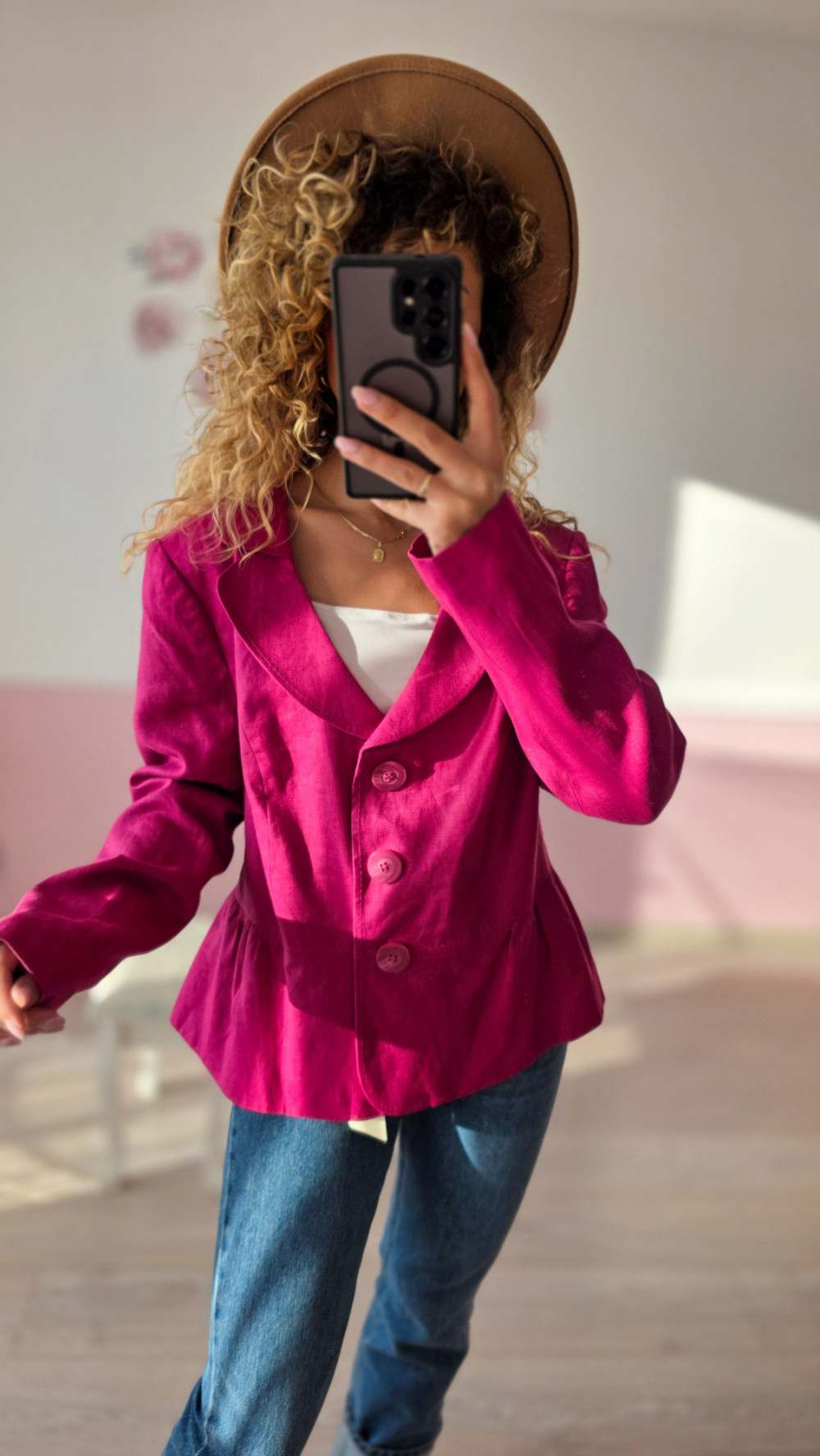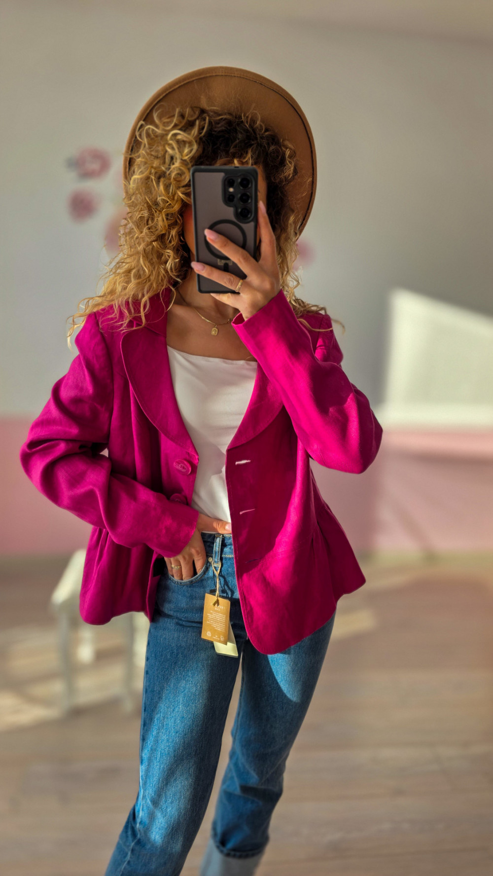 Fuksjowa marynarka lniana 100% – wyrazista elegancja na lato