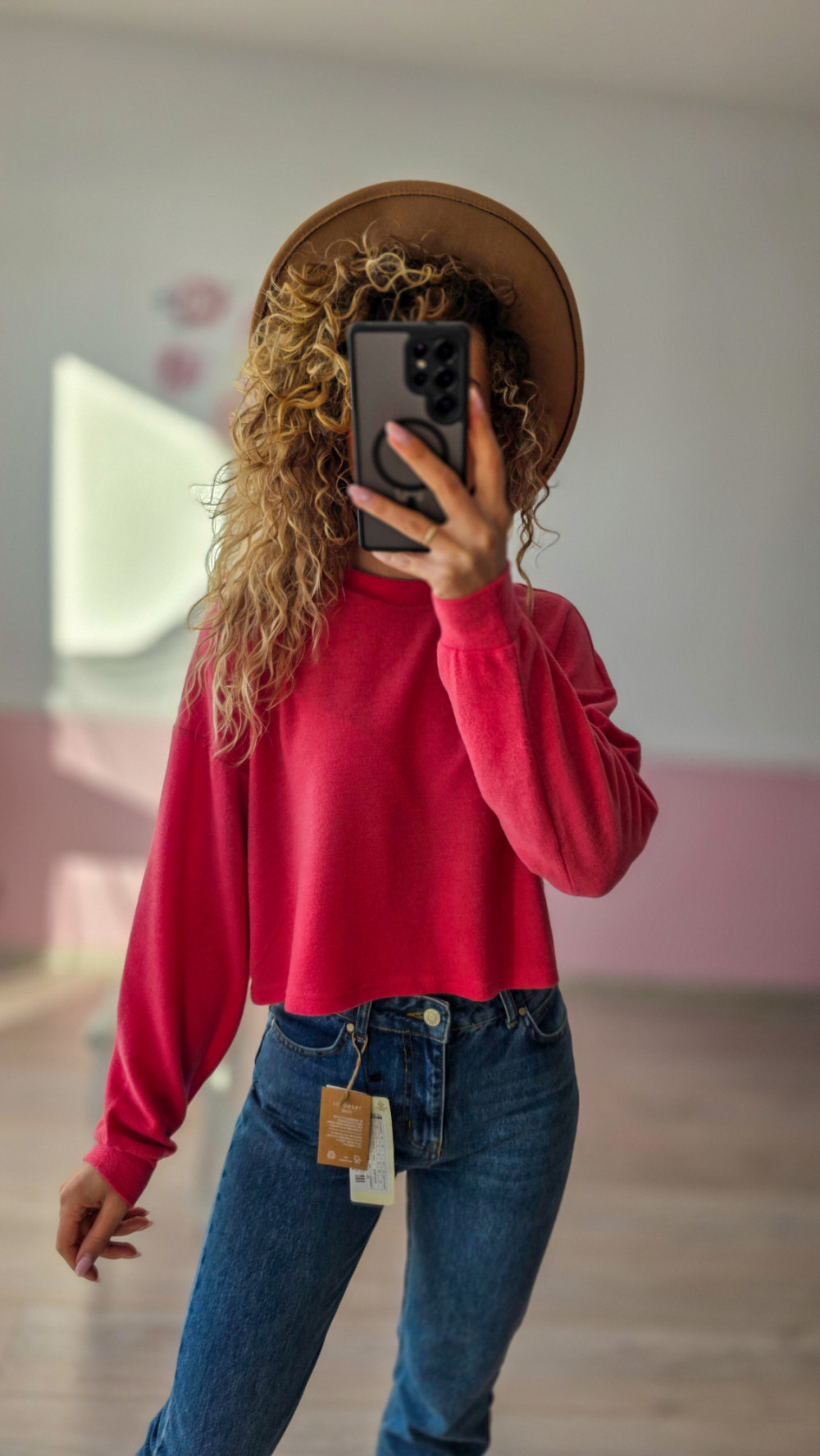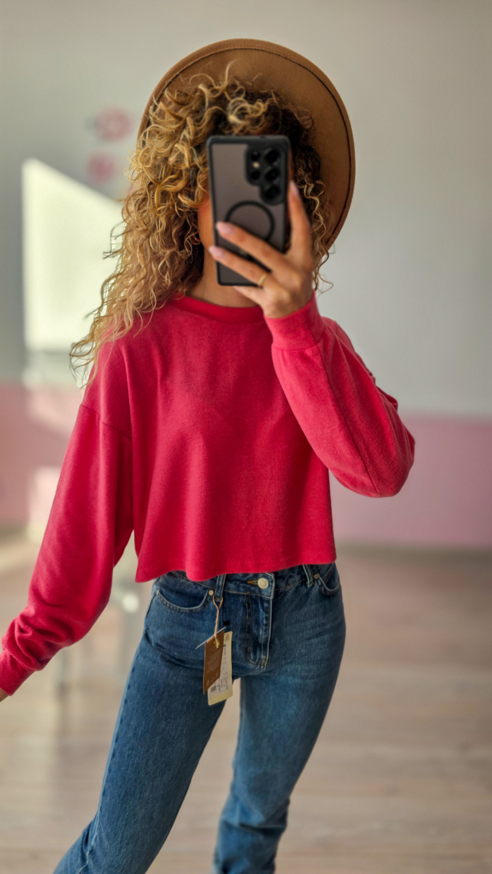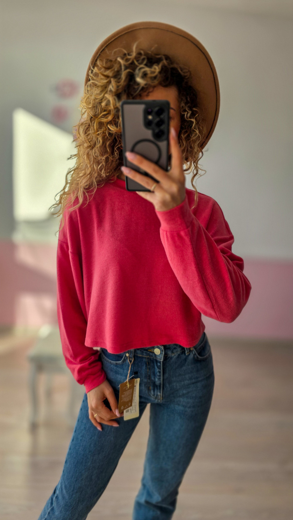 Różowa bluza crop top – miękka, basic