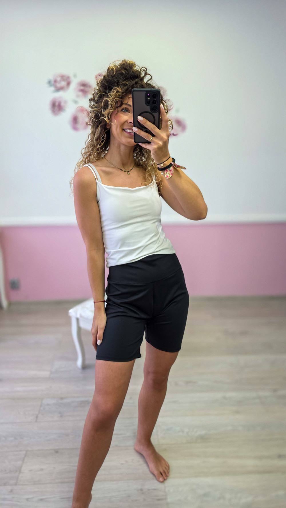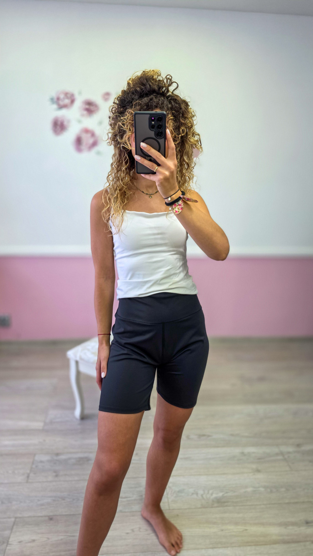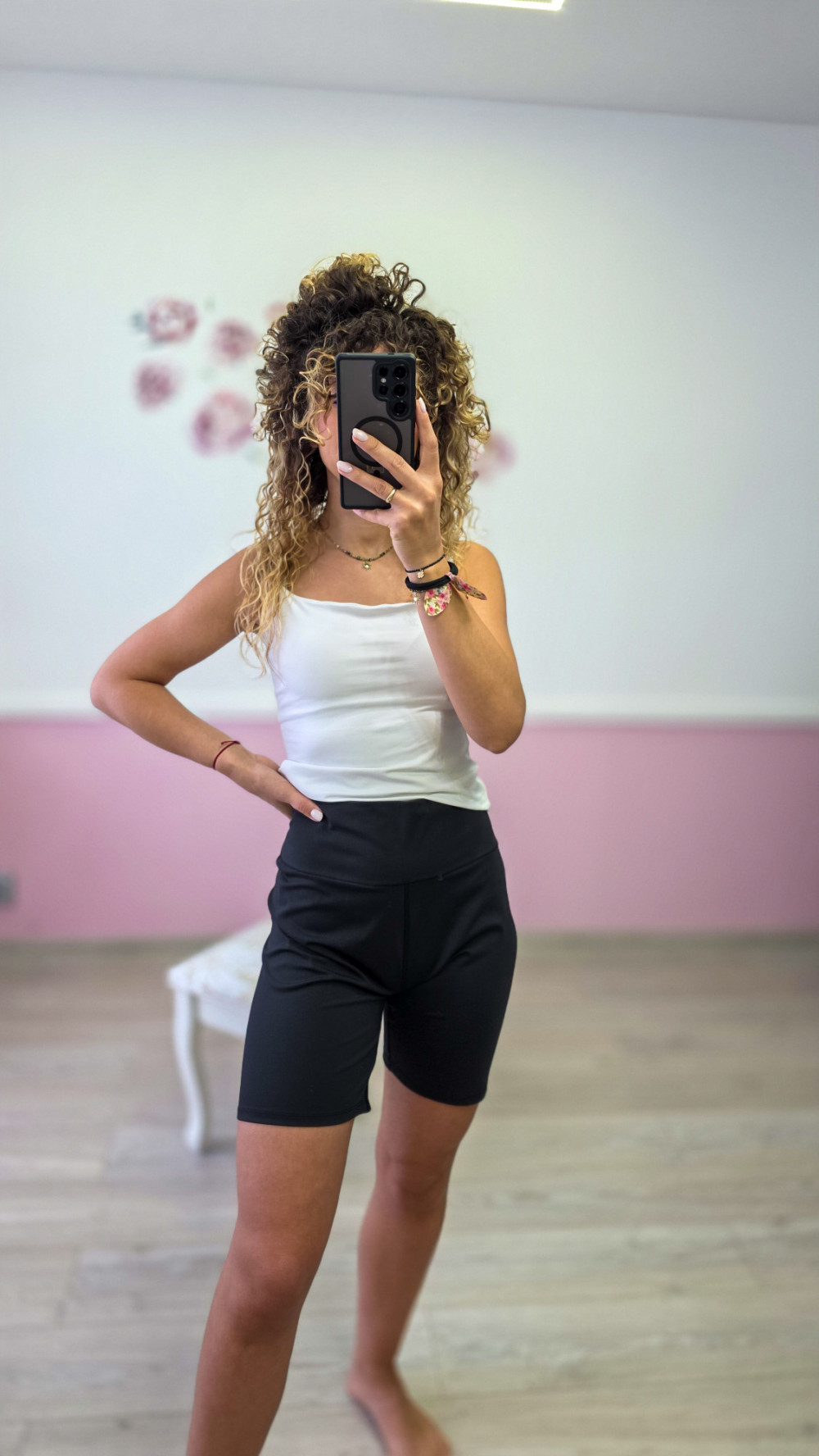Czarne krótkie legginsy sportowe z wysokim stanem – elastyczne, wygodne, idealne na trening i lato