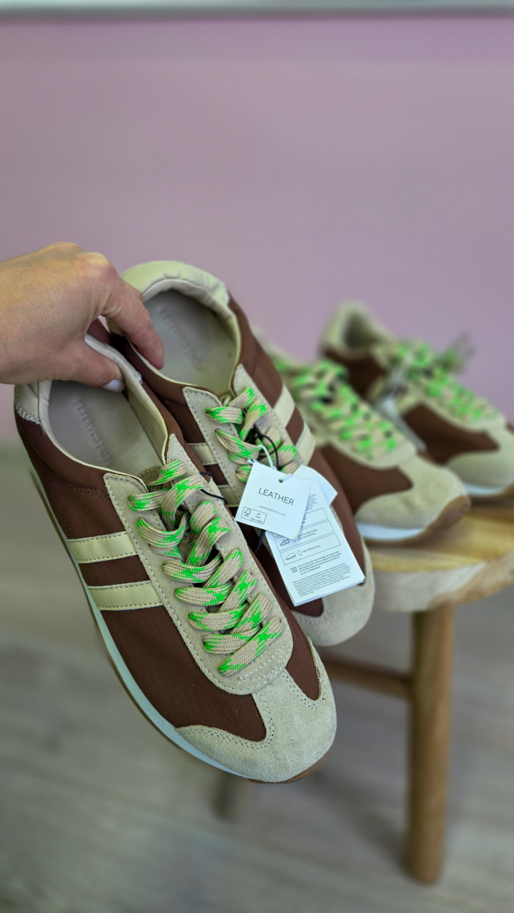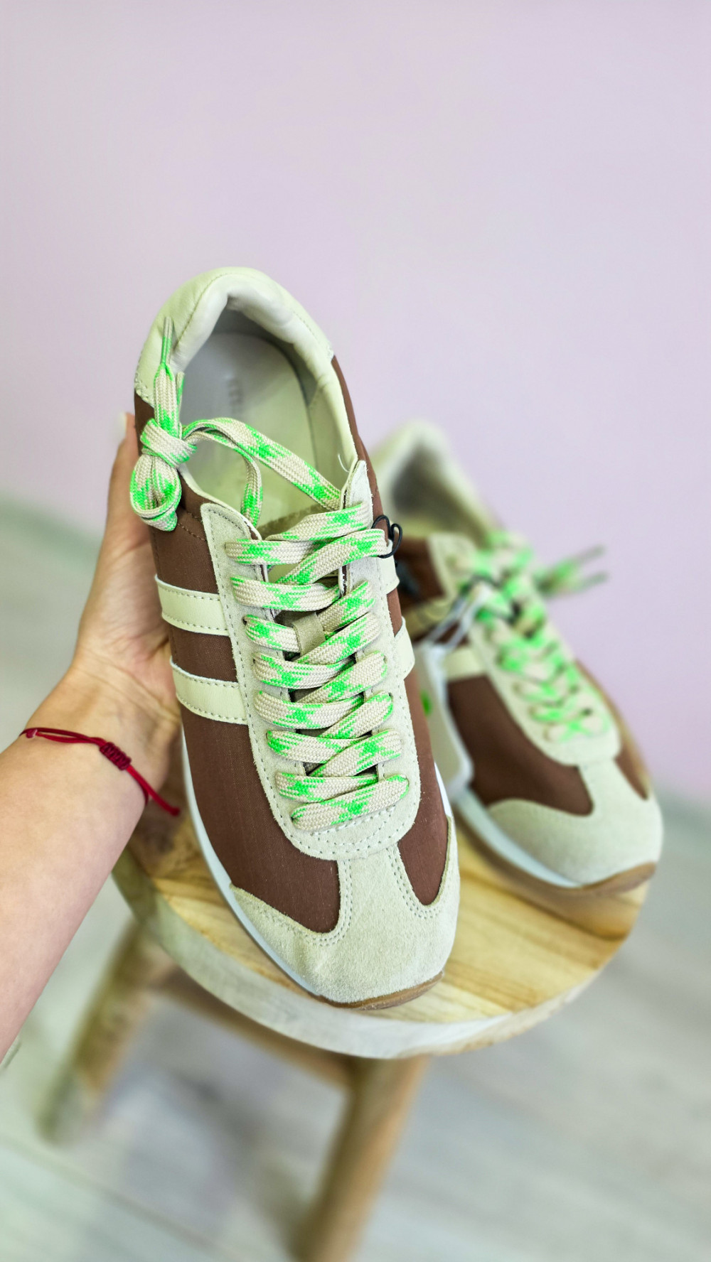 Męskie beżowo-brązowe sneakersy w stylu retro to idealny wybór dla panów ceniących komfort i oryginalny design. Połączenie klasycznej kolorystyki z wyrazistymi neonowo-zielonymi sznurówkami nadaje butom nowoczesny, sportowy charakter. Cholewka wykonana z lekkiego materiału i zamszowych wstawek gwarantuje przewiewność oraz dobre dopasowanie do stopy, a elastyczna podeszwa zapewnia wygodę podczas codziennego użytkowania. Ten model doskonale sprawdzi się do jeansów, joggerów czy krótkich spodenek, tworząc stylowe, miejskie zestawy. Idealne na co dzień, do pracy, szkoły czy weekendowych wyjść.