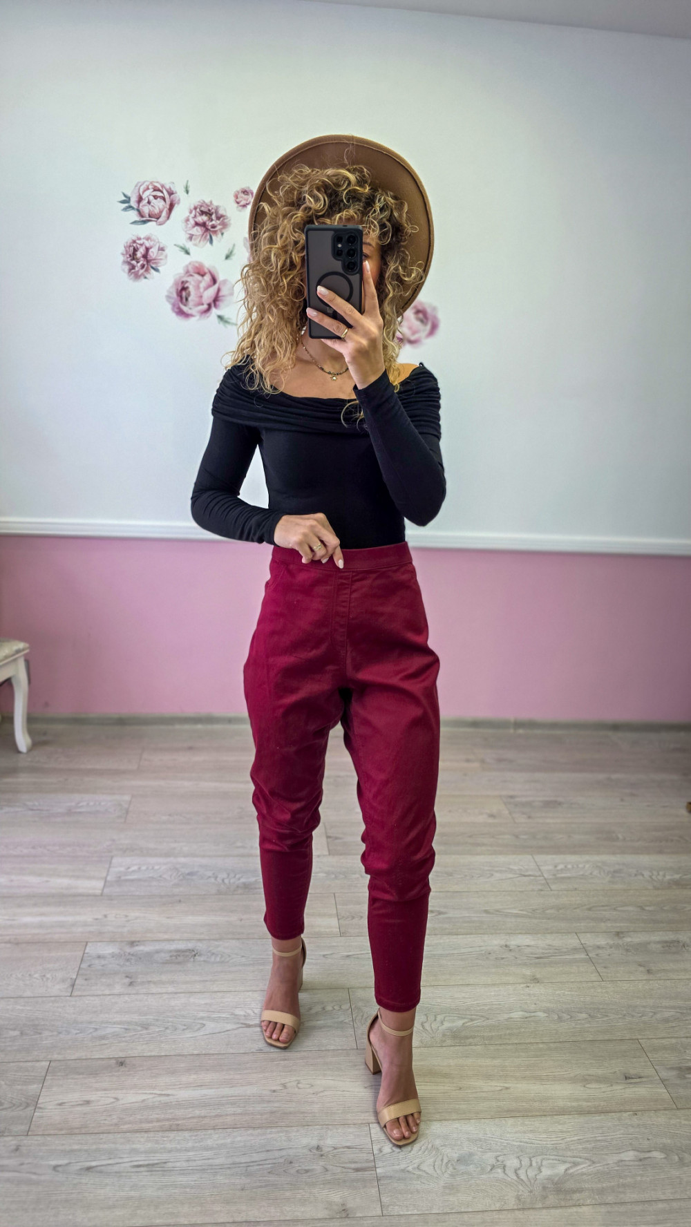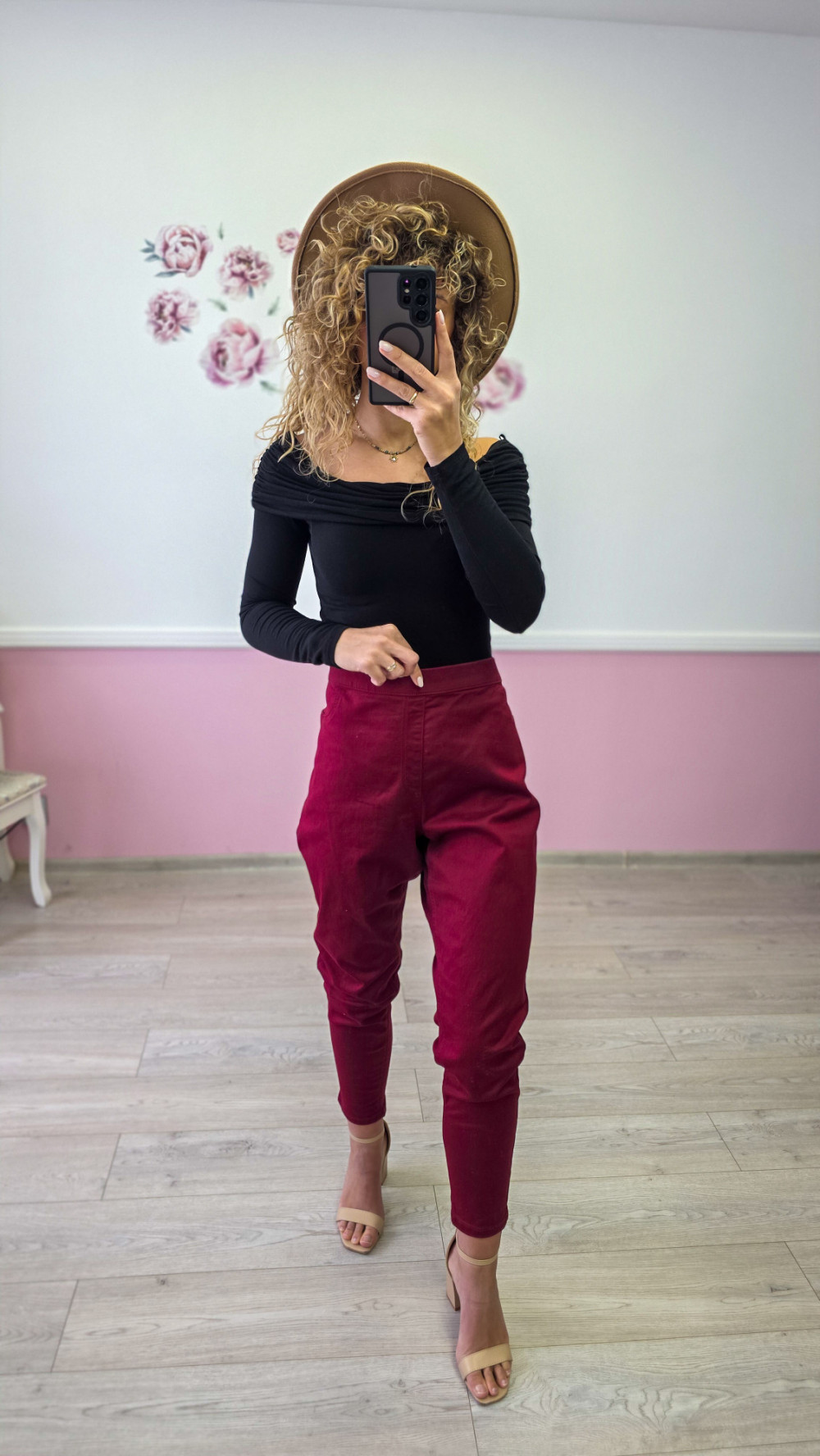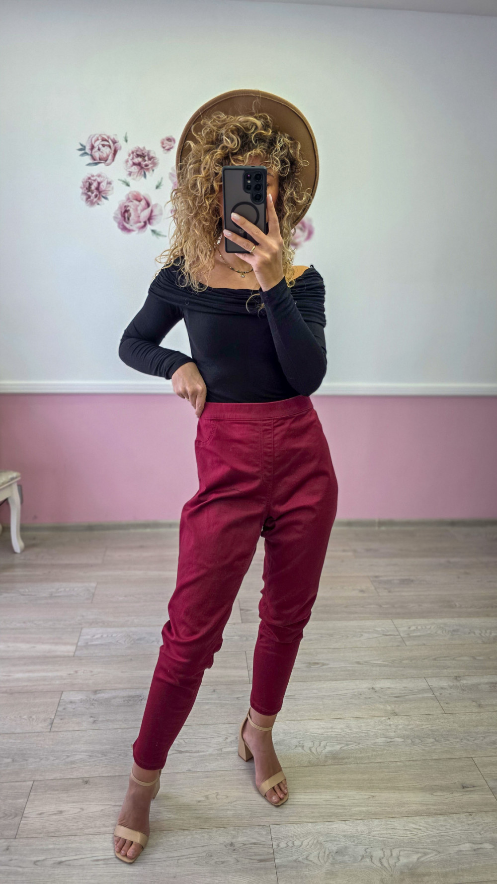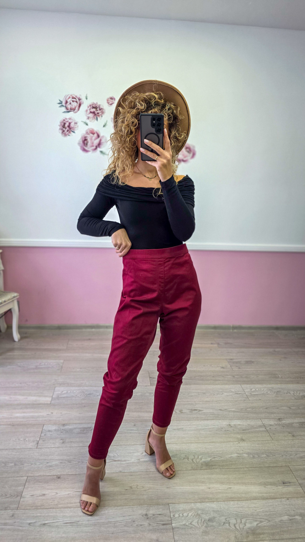 Bordowe spodnie damskie – eleganckie, zwężane, wysoki stan