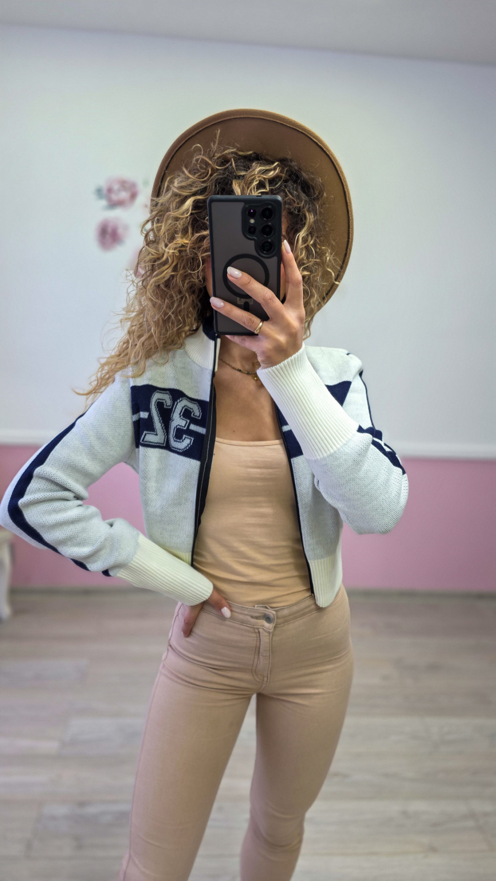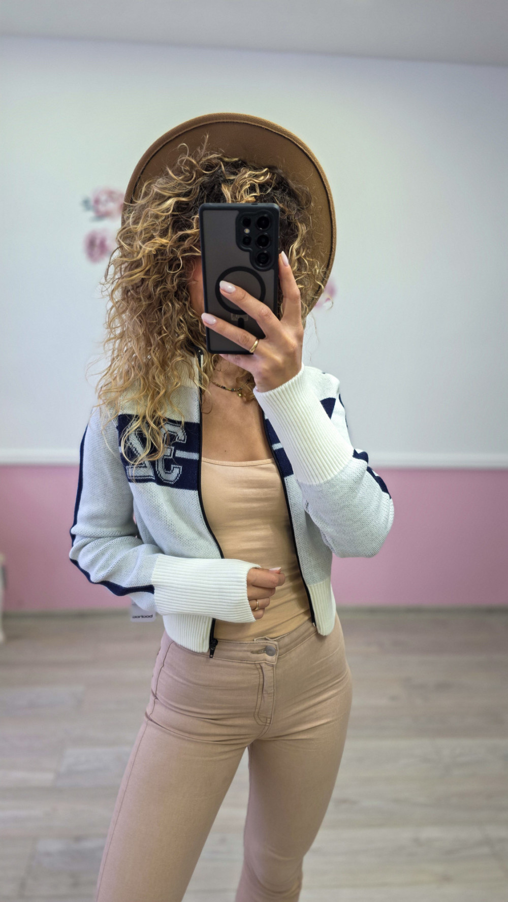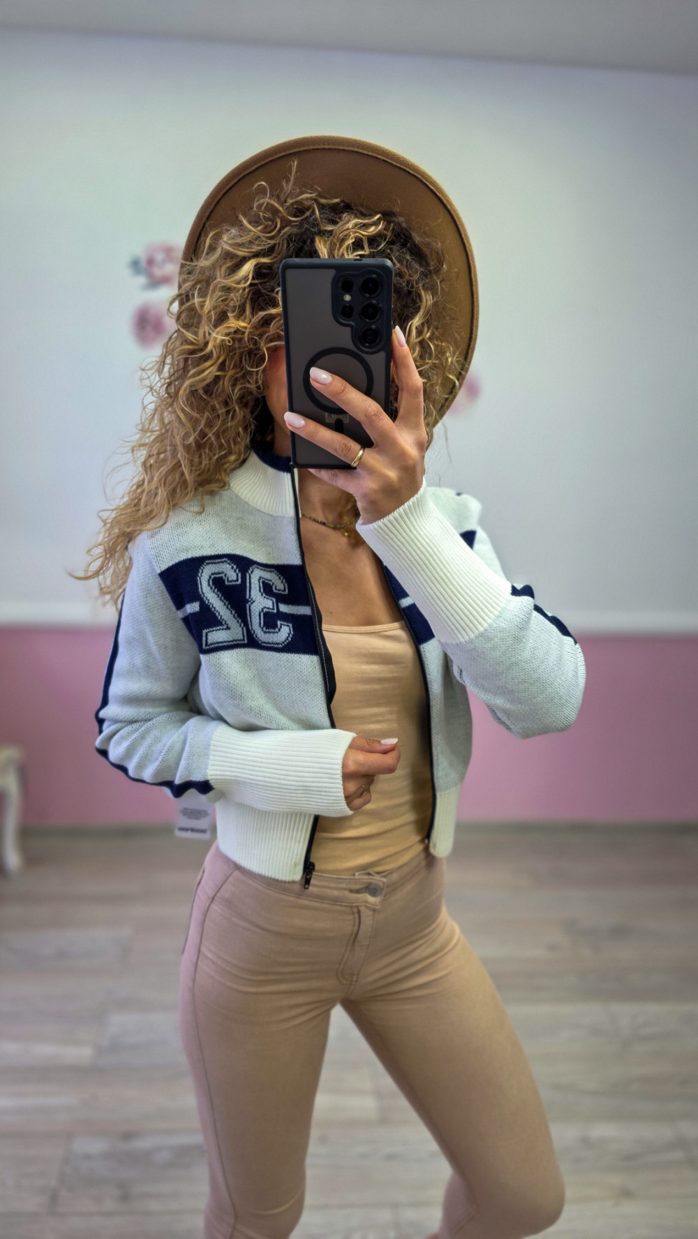 Jasnoszara bluza bejsbolowa z granatowymi paskami i naszywką to połączenie klasycznego stylu varsity z kobiecą wygodą. Miękka dzianina, ściągacze przy rękawach i krótszy fason idealnie dopasowują się do sylwetki, a kontrastowe wstawki dodają bluzie sportowej elegancji. To doskonała propozycja na co dzień, do legginsów, jeansów czy spodni z wysokim stanem, idealna dla kobiet, które lubią wygodę połączoną z modnym wyglądem.