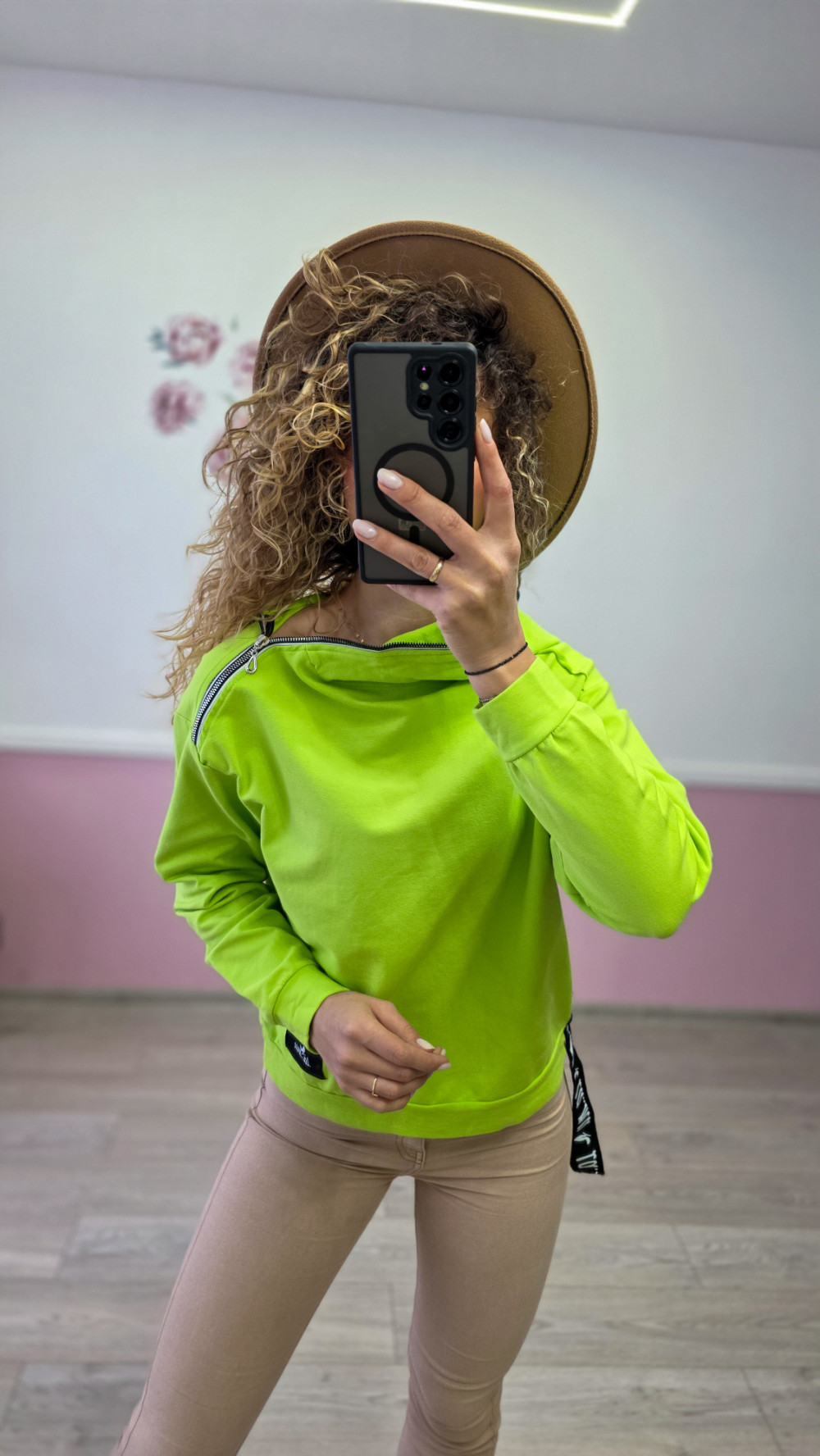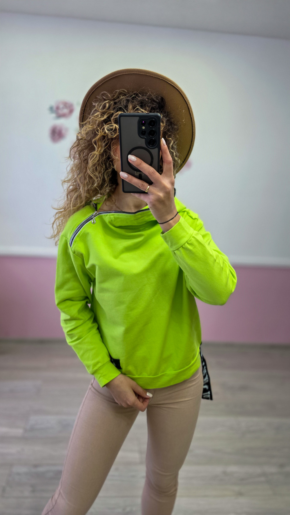Bluza damska neonowa zielona z ozdobnymi zamkami