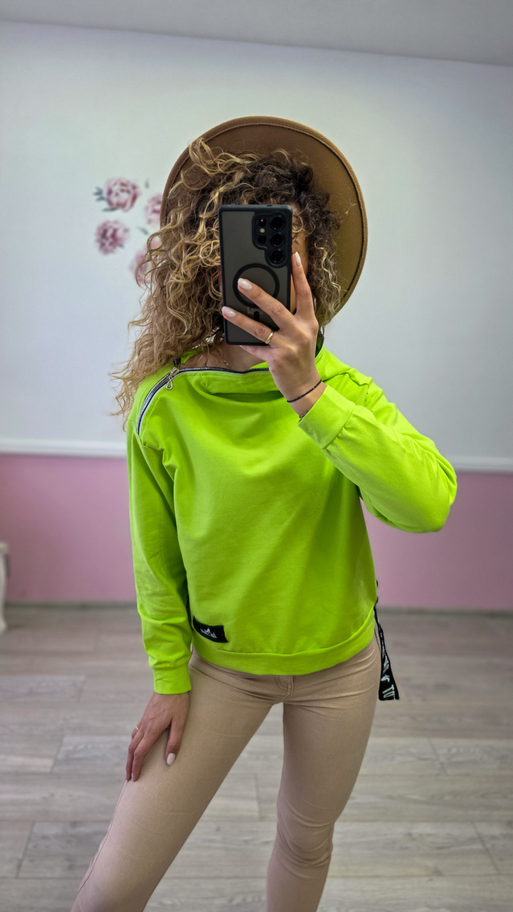 Neonowa zielona bluza damska z dekoracyjnymi zamkami to propozycja dla kobiet, które lubią mocny kolor i nowoczesny styl. Intensywny, energetyczny odcień przyciąga wzrok i dodaje charakteru każdej stylizacji, a ozdobny zamek biegnący przy dekolcie nadaje bluzie modnego, streetwearowego wyglądu. Miękki materiał i wygodny krój zapewniają komfort noszenia, a lekko podwyższony kołnierz dodaje jej oryginalności. Bluza świetnie sprawdzi się w codziennych zestawach, szczególnie u kobiet, które lubią wyróżniać się z tłumu i stawiać na wyraziste kolory. To doskonały wybór na trening, spacer, wyjazd czy luźny dzień w mieście.