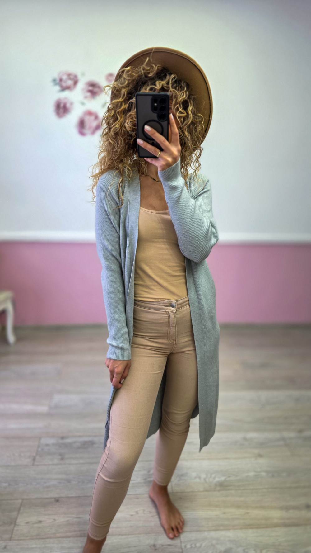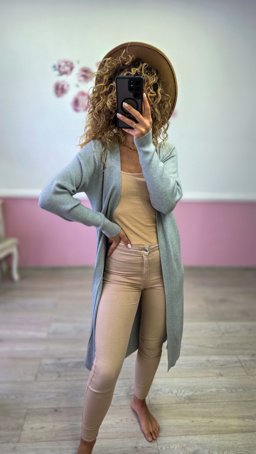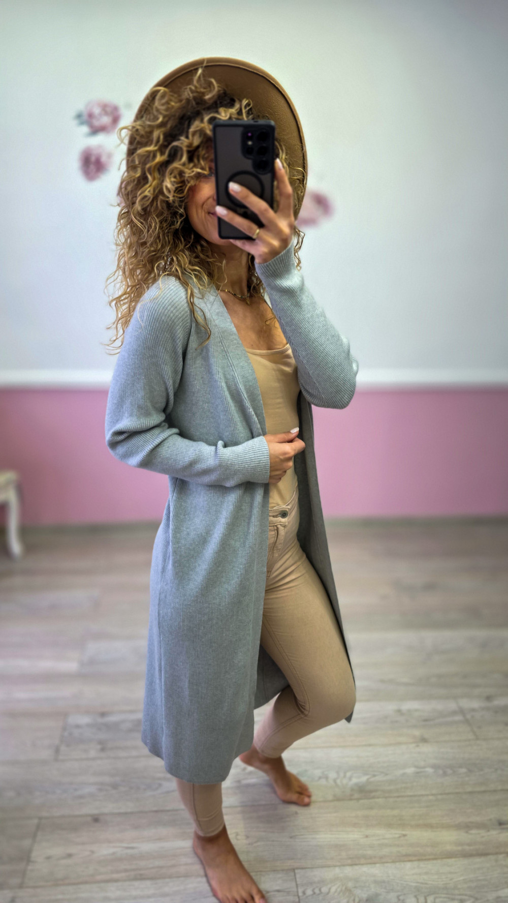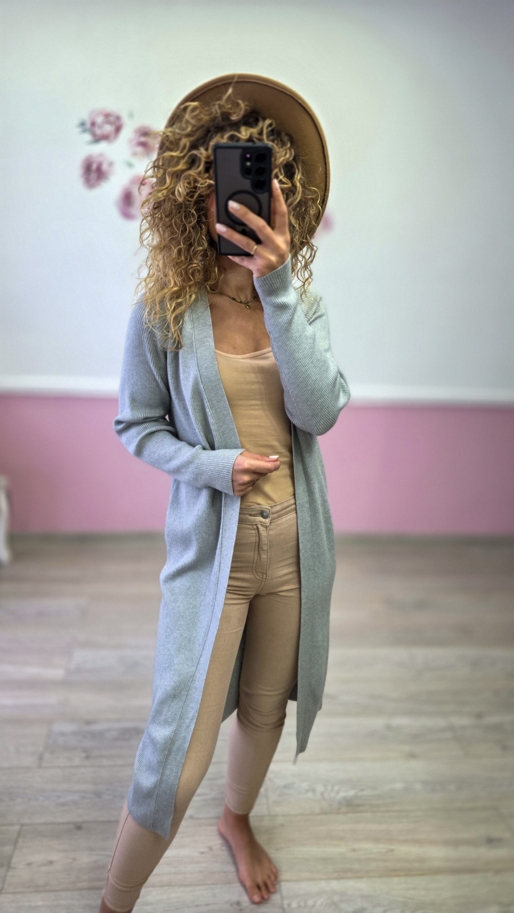 Jasnoszary długi kardigan to ponadczasowy model, który podkreśla sylwetkę i dodaje stylu każdej codziennej stylizacji. Wykonany z miękkiej, elastycznej dzianiny idealnie układa się na ciele, a długość do kolan optycznie wysmukla figurę. To świetna propozycja na jesień i zimę, do pracy, na spacer lub do domu. Pasuje zarówno do jeansów, jak i bardziej eleganckich zestawów.