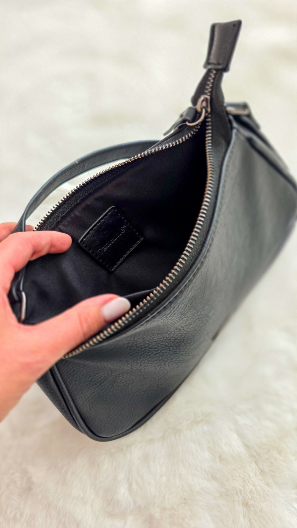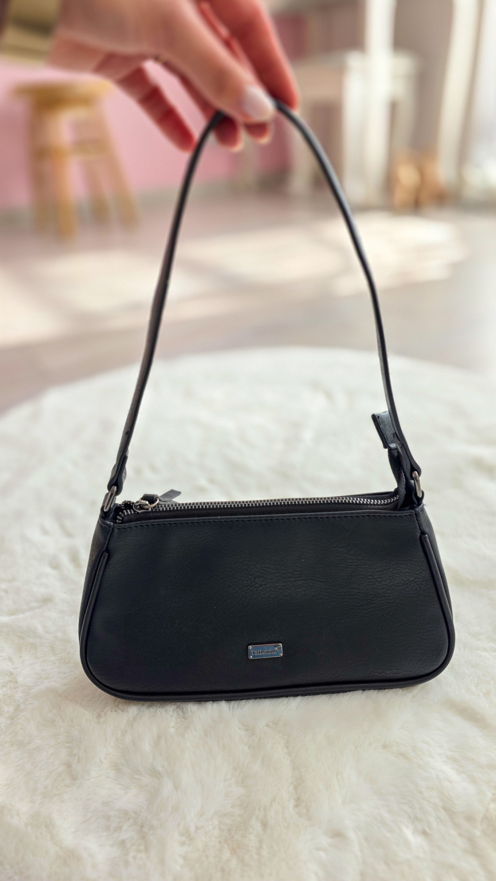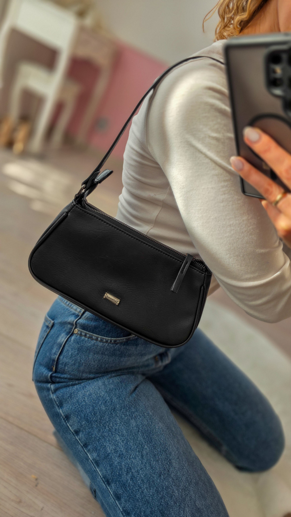 Czarna torebka baguette – klasyczna mała torebka na ramię, minimalistyczna