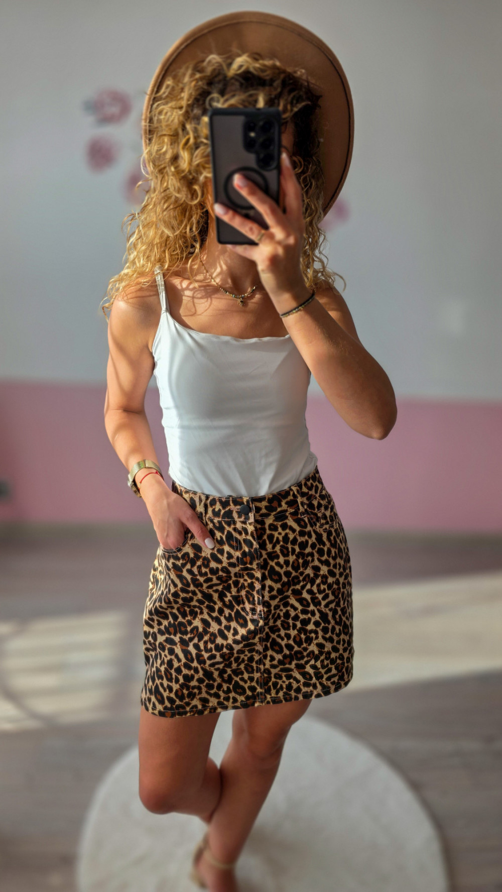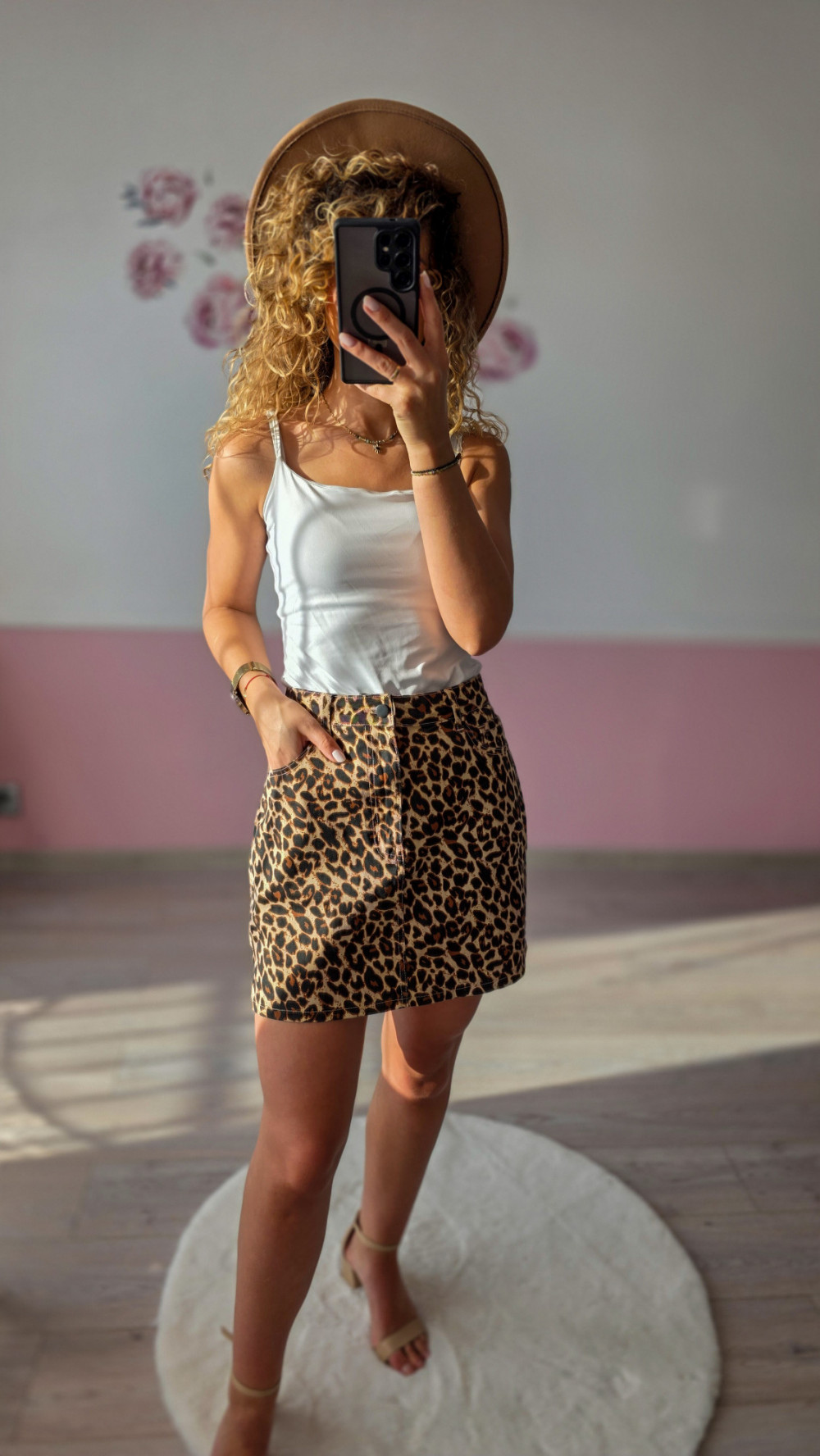 Spódnica mini w panterkę – modny zwierzęcy print, kobieca i wyrazista