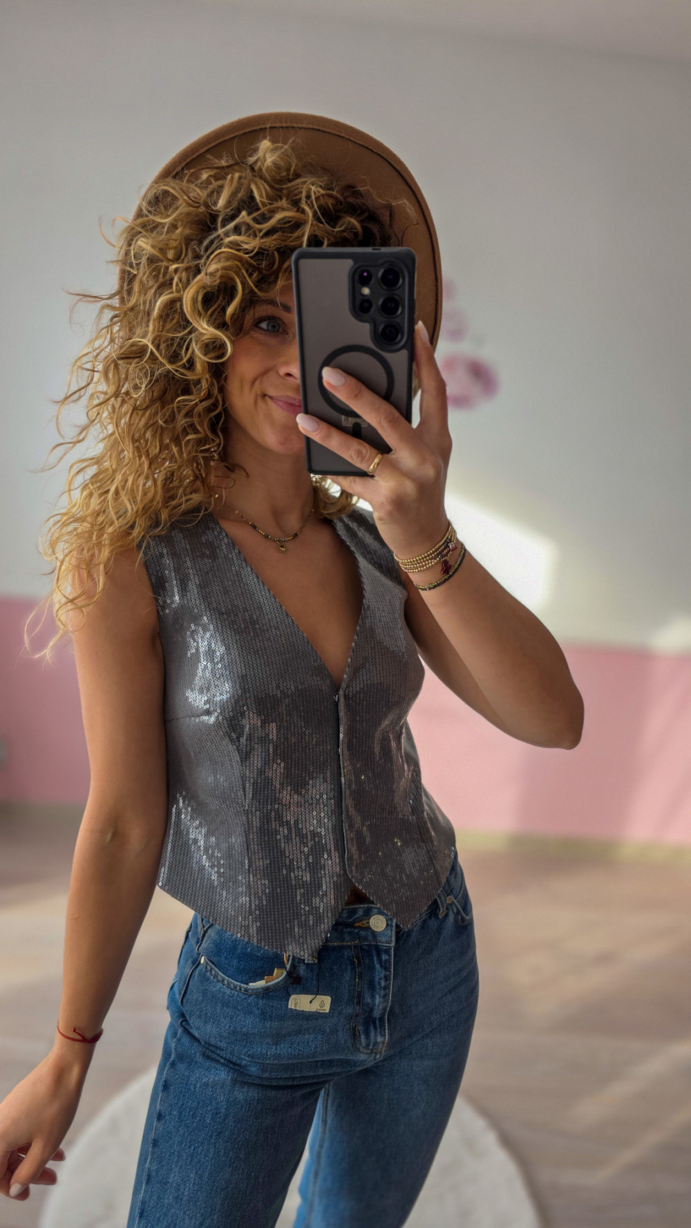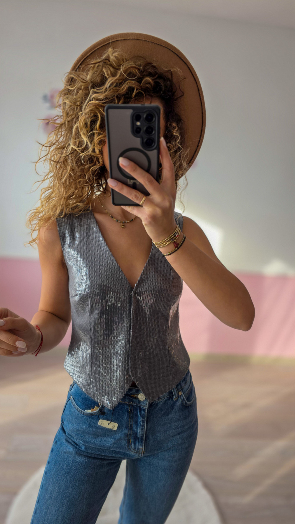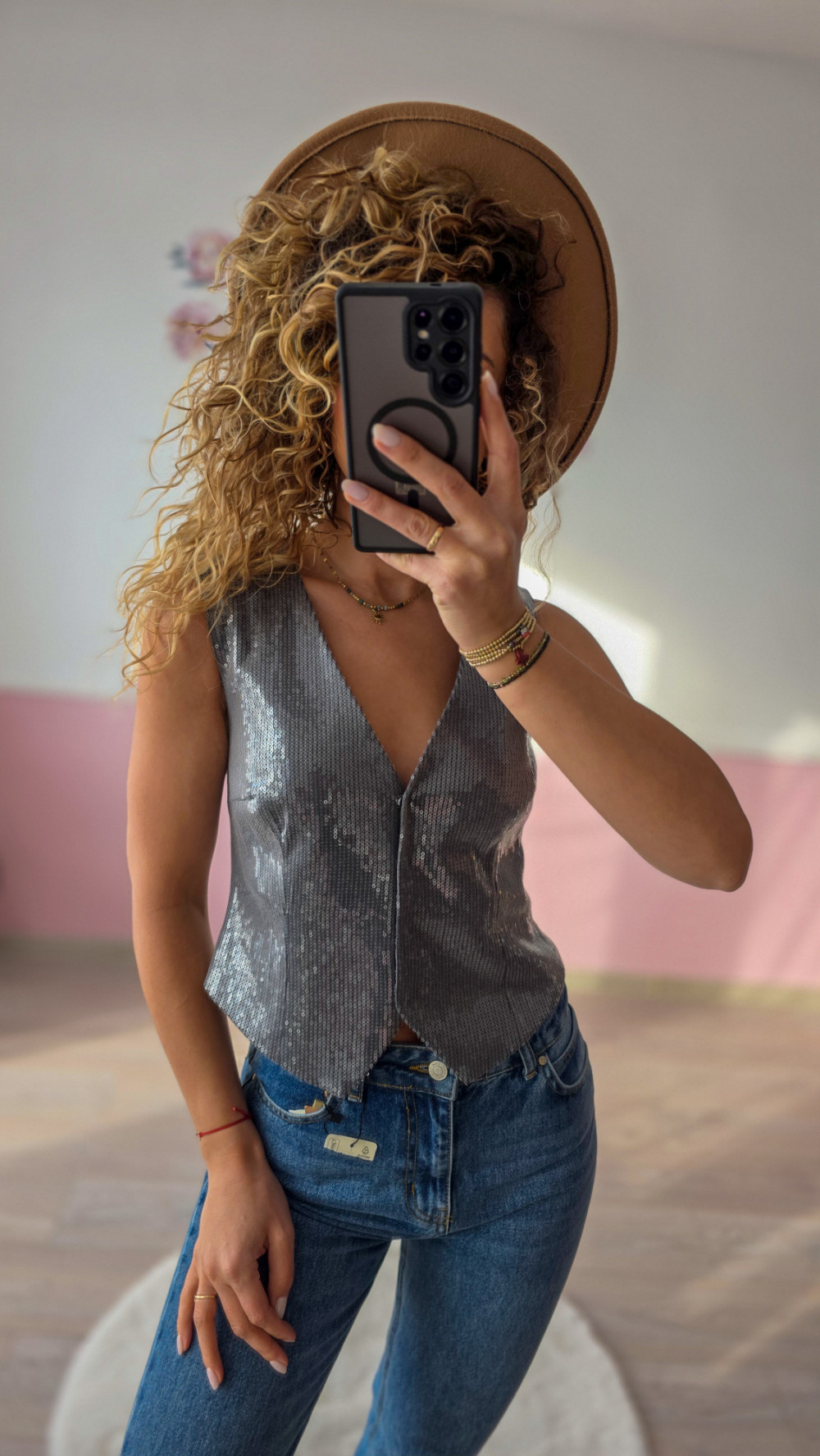 Cekinowa kamizelka nada Twojej stylizacji blasku i sprawi, że nawet prosty outfit nabierze wyjątkowego charakteru. To must-have w szafie każdej kobiety, która lubi łączyć luz z elegancją i stawia na efektowne detale.