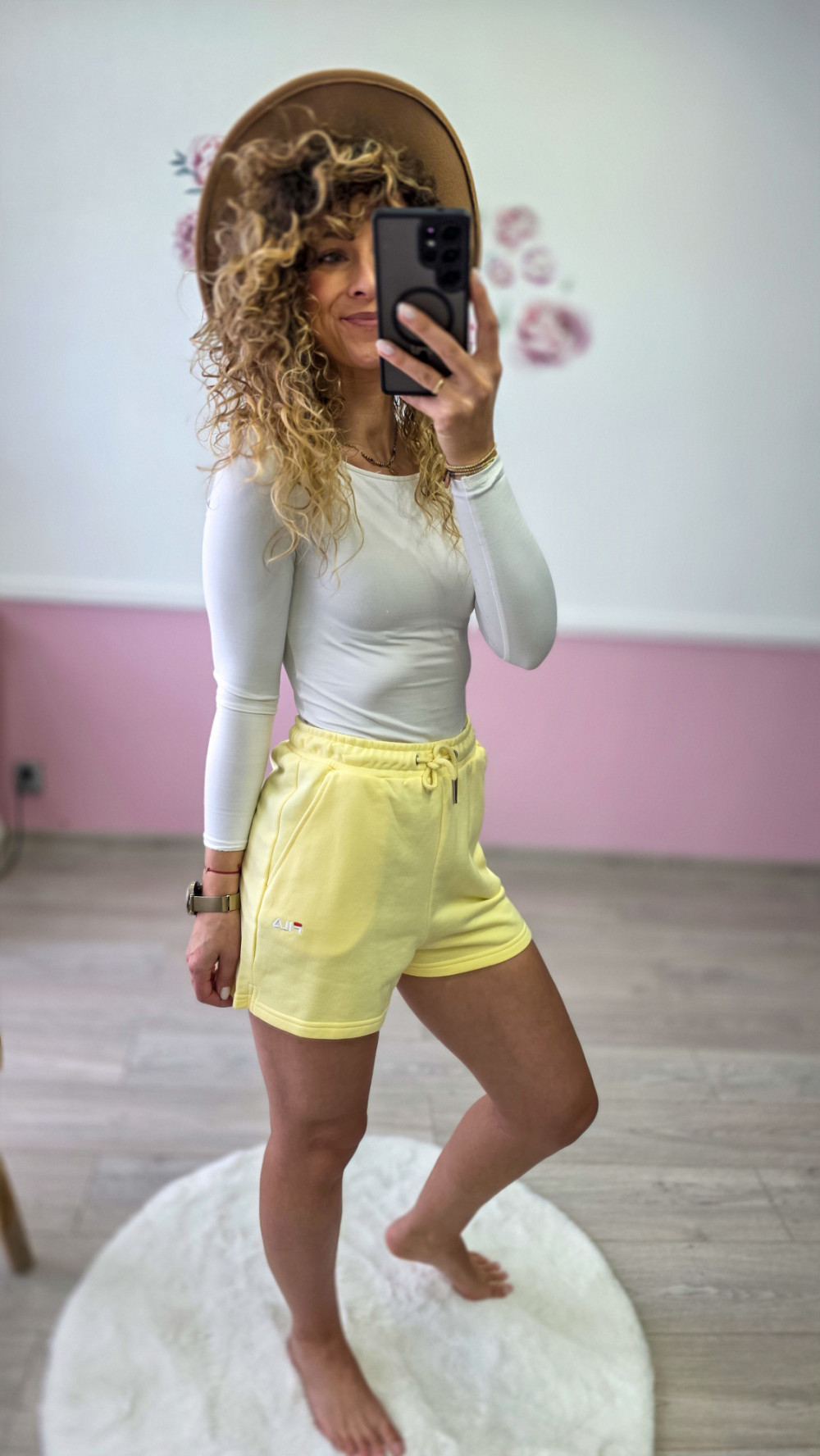 Pastelowy odcień żółci dodaje stylizacjom świeżości — świetnie wygląda z białymi topami i sportowymi koszulkami.