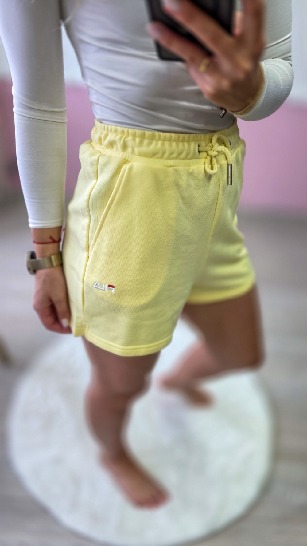 Żółte damskie szorty dresowe Fila – krótkie spodenki z gumką i wiązaniem