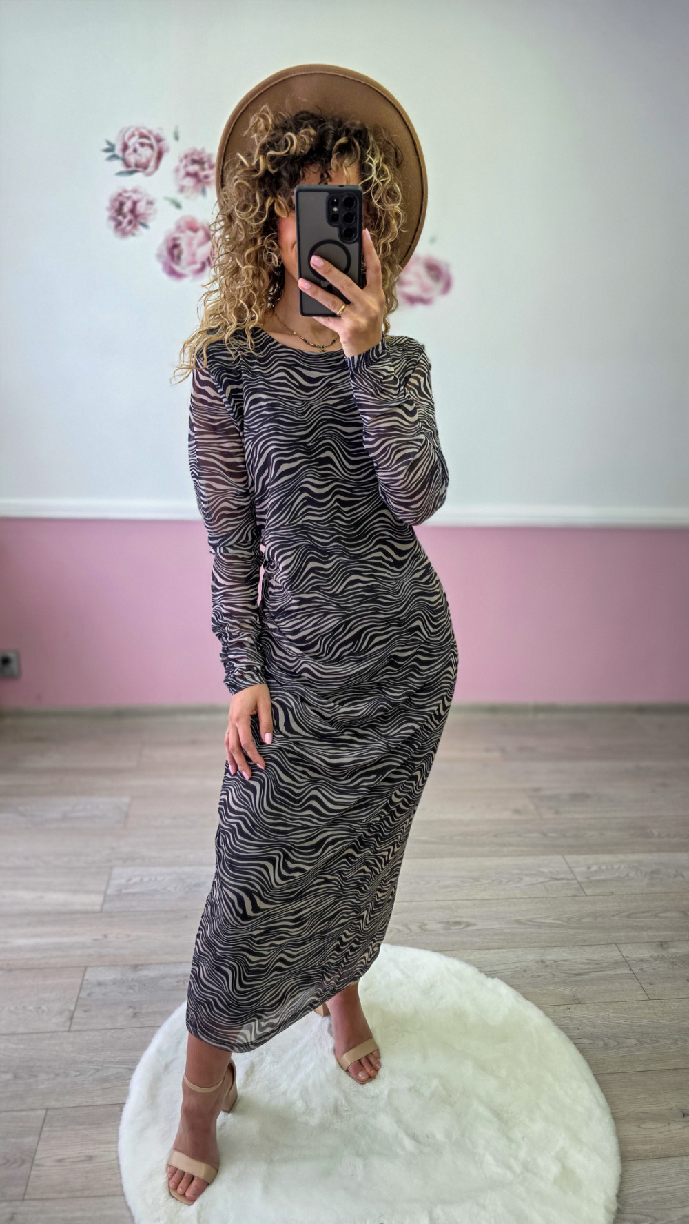 Sukienka maxi w zwierzęcy wzór to propozycja dla kobiet, które cenią wyrazisty styl i nowoczesną elegancję. Dopasowany krój pięknie podkreśla sylwetkę, eksponując jej kształty, a długość maxi nadaje całości smukłości i klasy. Elastyczny materiał idealnie dopasowuje się do figury, zapewniając komfort noszenia.