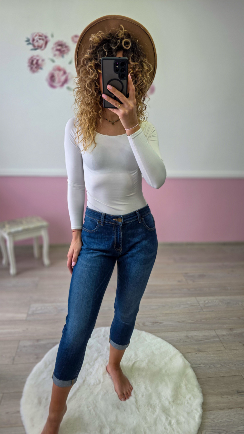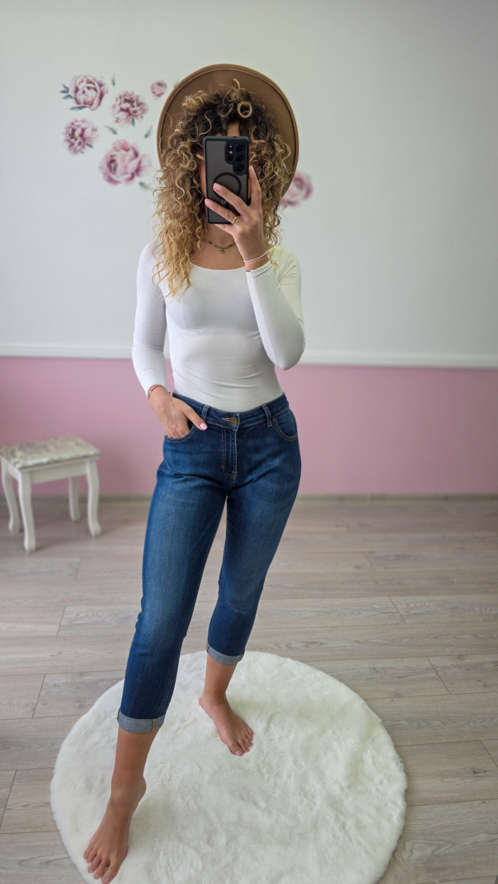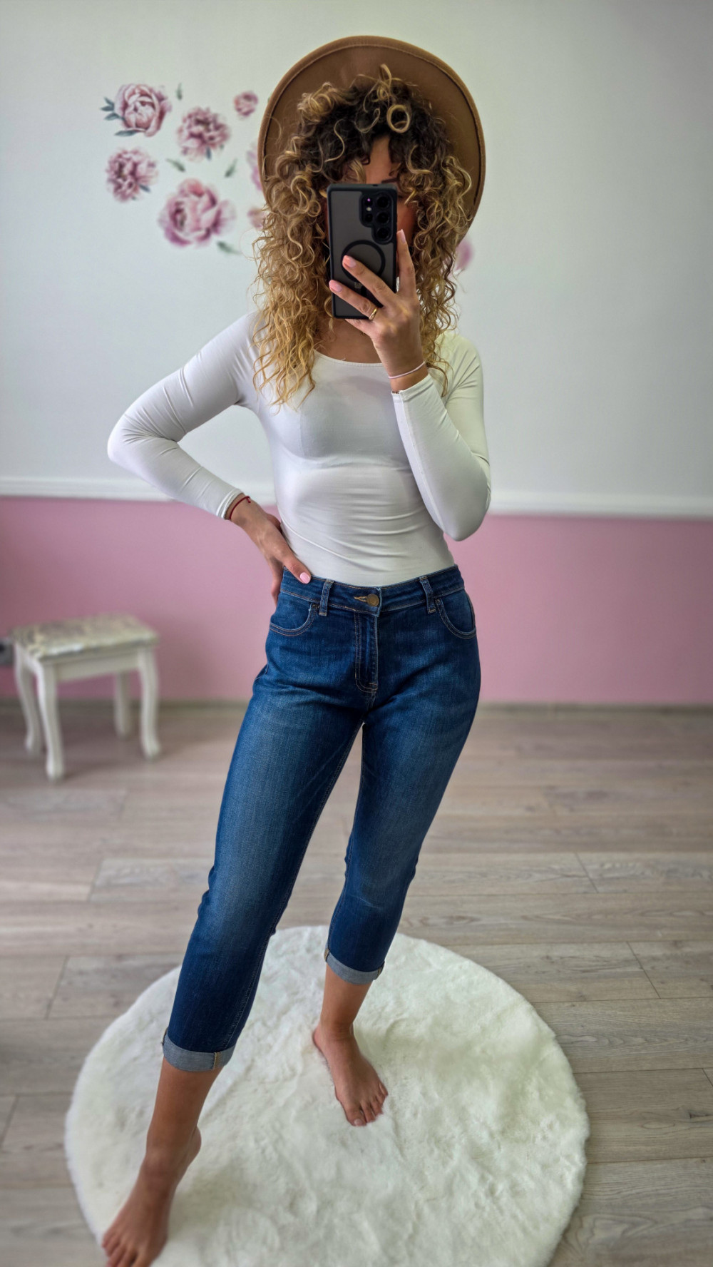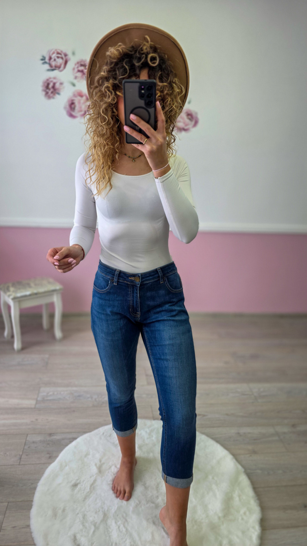 Damskie jeansy rybaczki – elastyczne denim, średni stan, dopasowany krój
