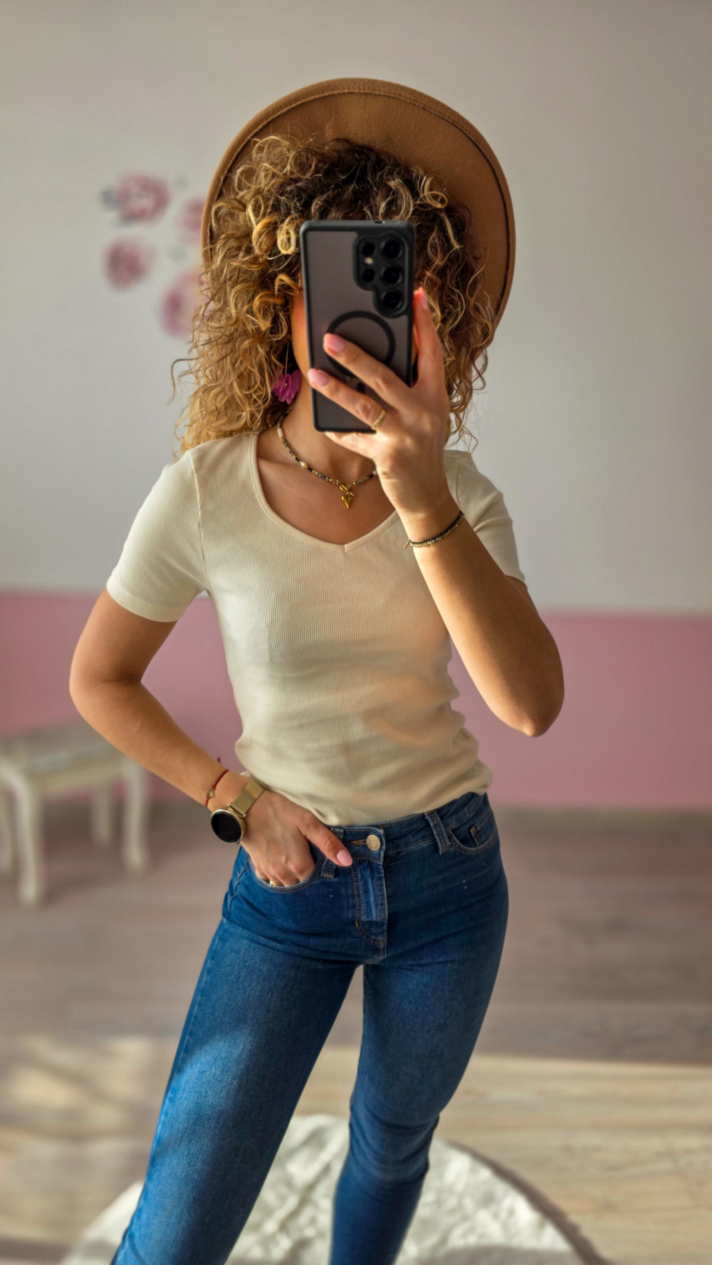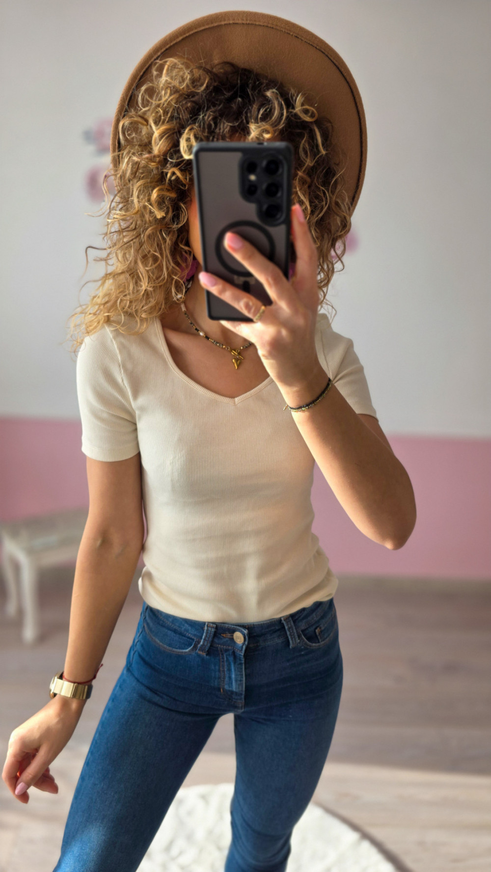 Beżowy prążkowany t-shirt PROMOD wykonany w 100% z miękkiej bawełny to ponadczasowa baza każdej garderoby. Dopasowany, elastyczny materiał pięknie układa się na sylwetce, a delikatny dekolt V dodaje mu kobiecego charakteru. Koszulka jest wyjątkowo wygodna, oddychająca i idealna na każdy dzień – świetnie sprawdzi się w stylizacjach casualowych, biurowych oraz minimalistycznych zestawach. Ten model to klasyk, który można łączyć z jeansami, spódnicą czy marynarką, tworząc niezawodne, modne połączenia.