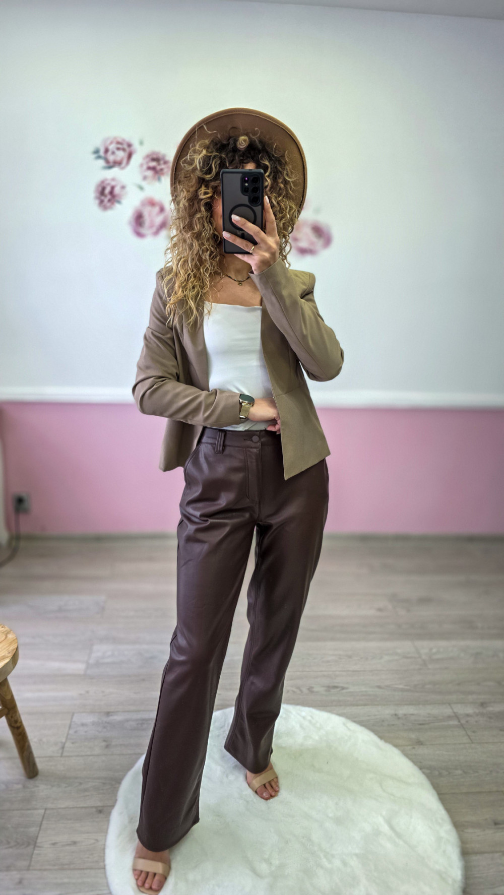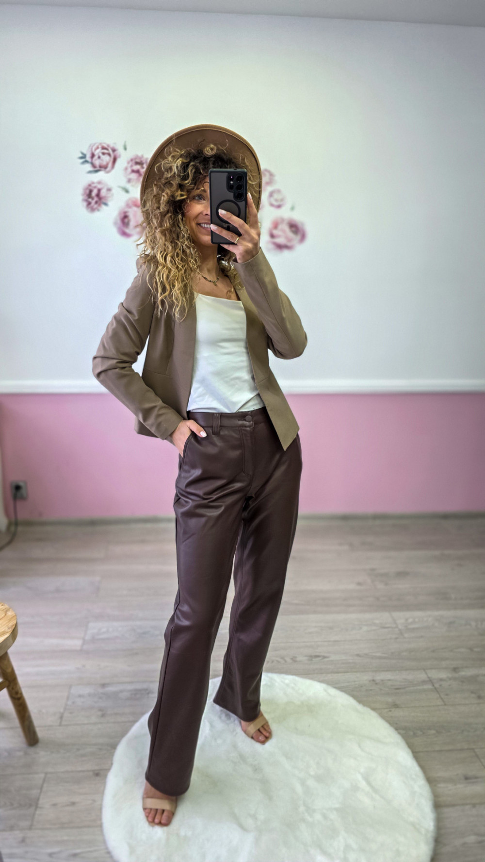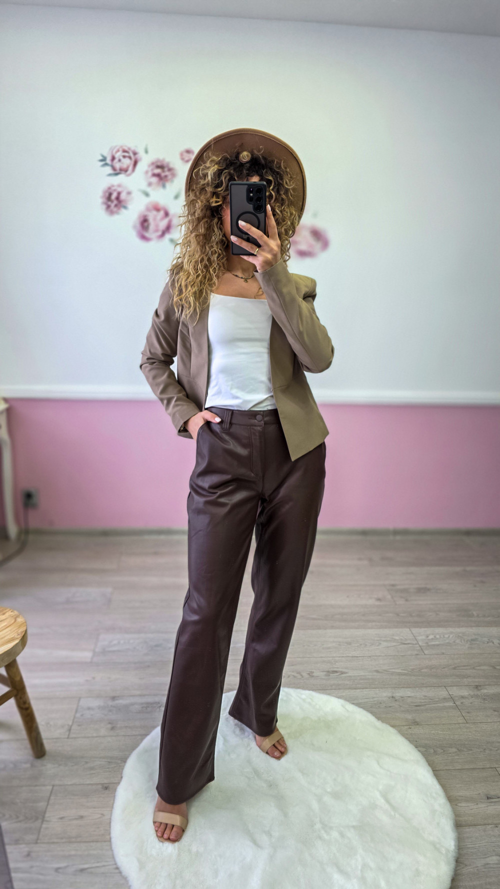 Czekoladowe spodnie Asos z ekoskórki