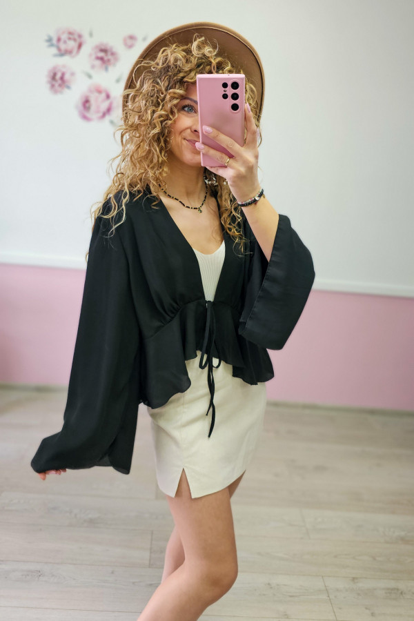 Wiązana prześwitująca czarna bluzka