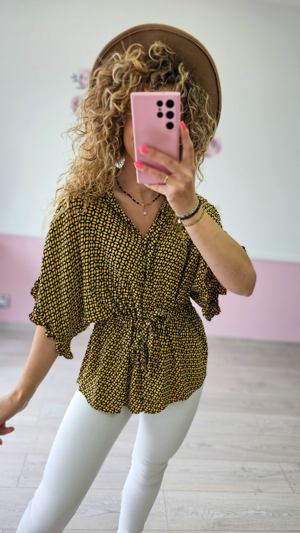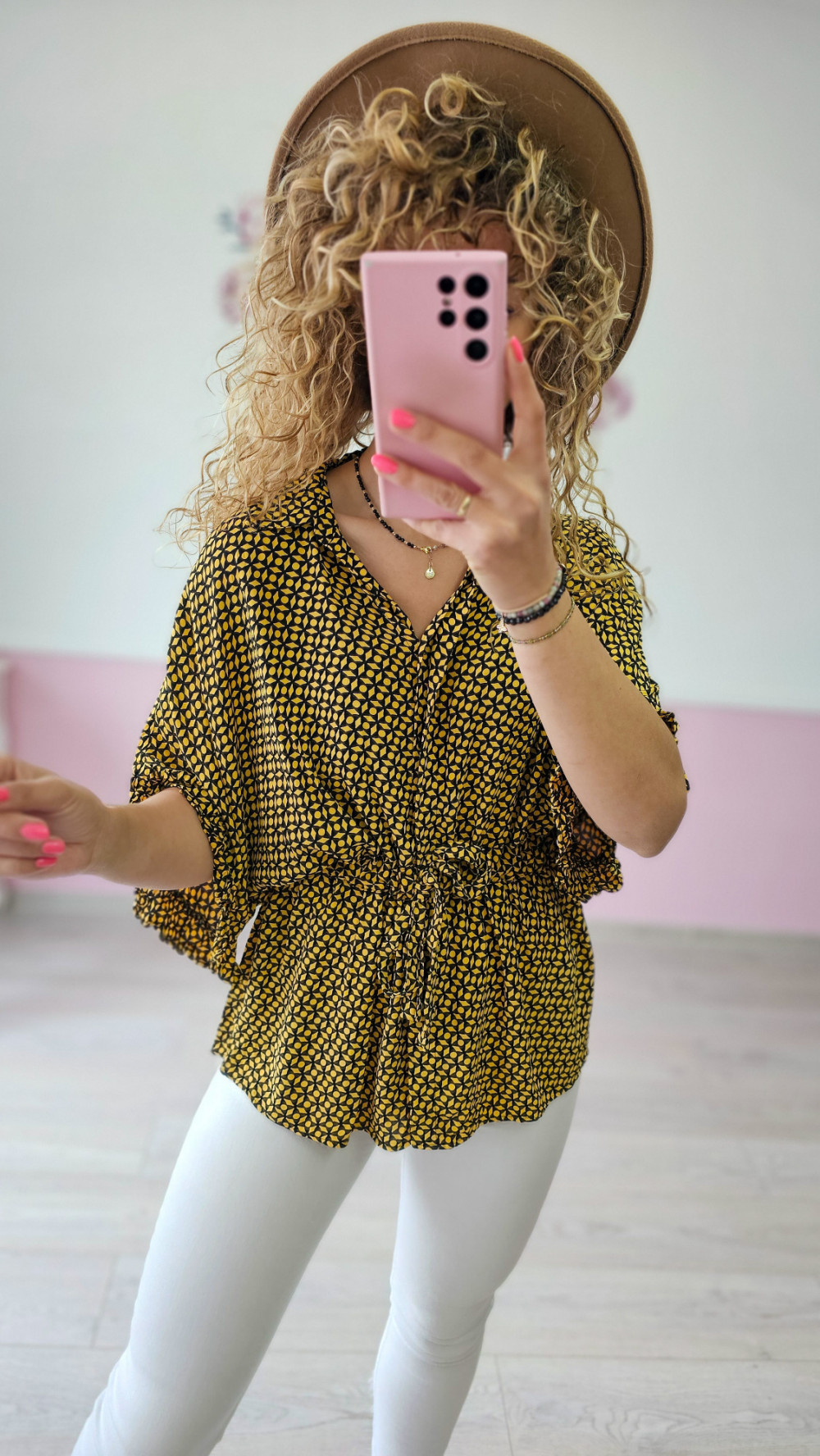 Modelka na co dzień nosi rozmiar S i ma 167cm wzrostu.
