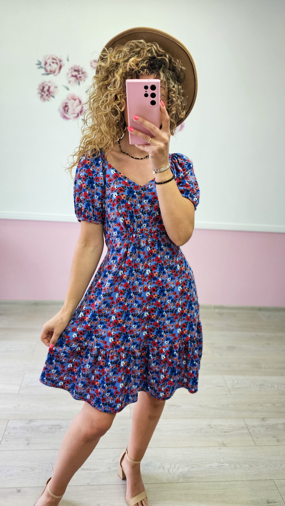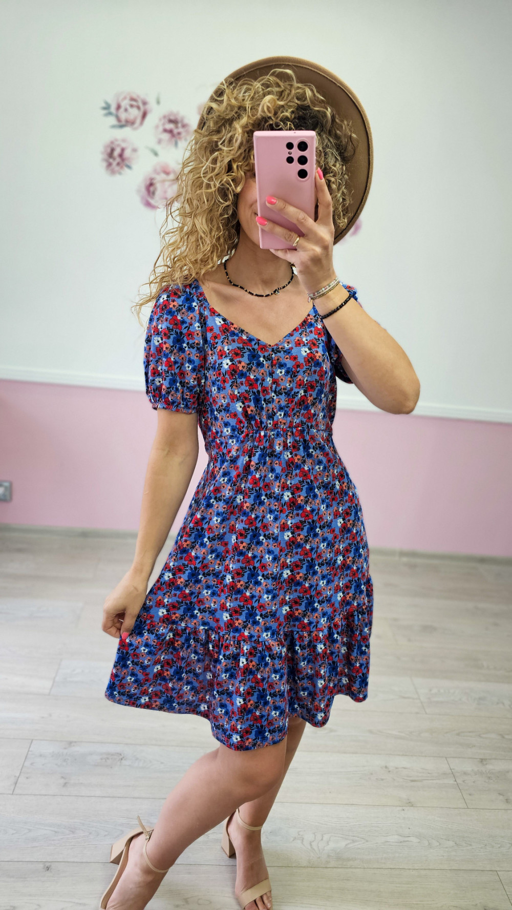 posiada gumkę w pasie oraz na dekolcie ozdobne guziki