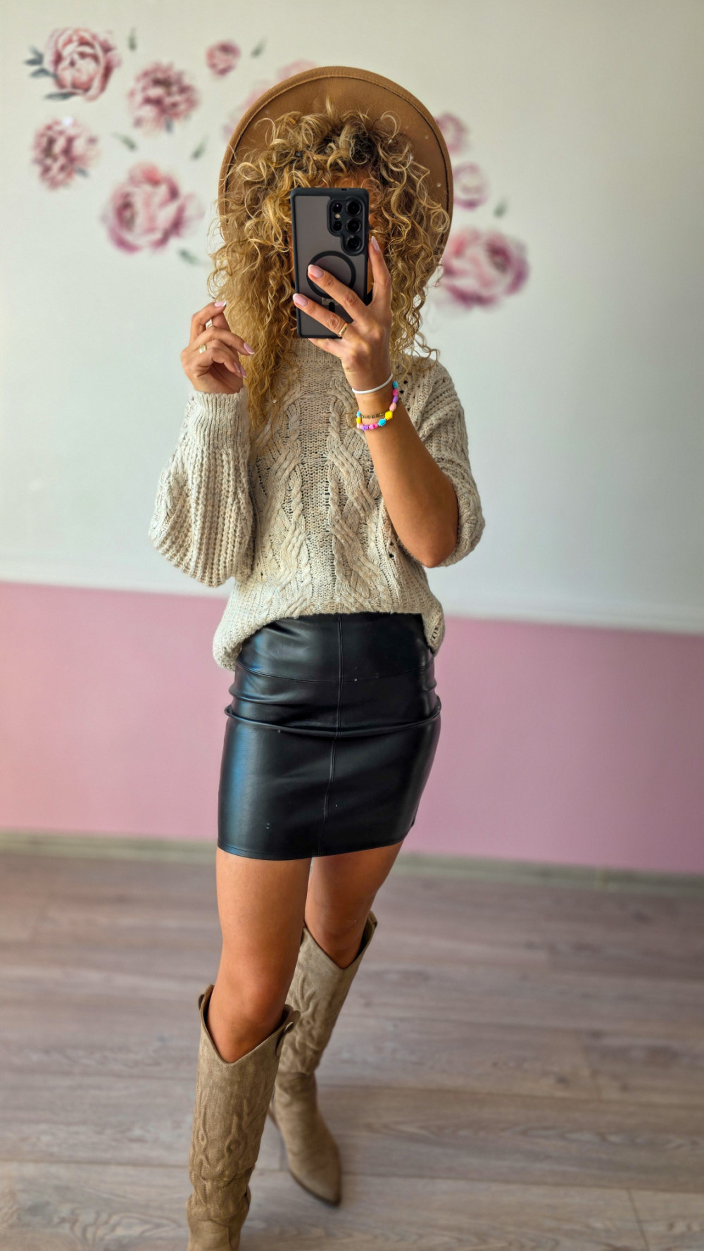 Minimalistyczna czarna spódnica z eko skóry to ponadczasowy model, który doskonale łączy kobiecość i elegancję. Gładka faktura i prosty krój sprawiają, że łatwo dopasujesz ją do każdej stylizacji – od casual po wieczorową.