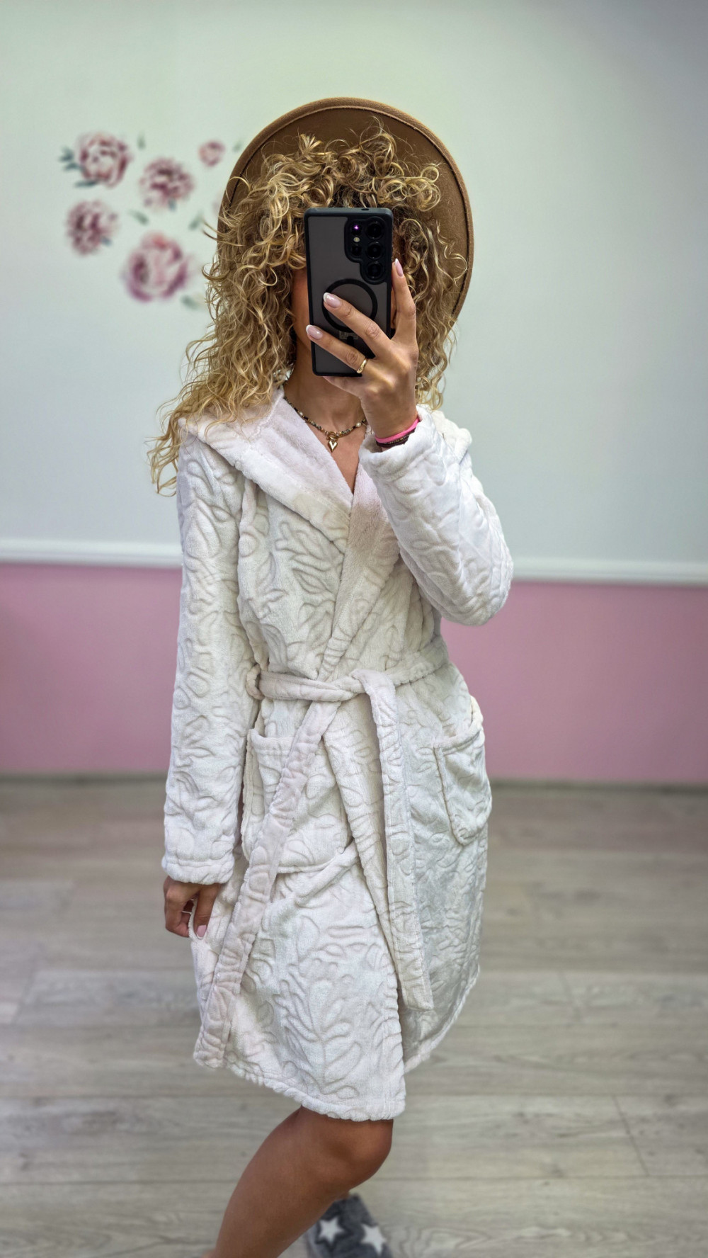 Elegancki, kobiecy i niezwykle przytulny Ten szlafrok ESOTIQ z tłoczonym wzorem to idealne połączenie komfortu i stylu. Wykonany z miękkiego, puszystego materiału, który cudownie otula ciało, zapewniając ciepło i wygodę. Delikatny, wypukły wzór nadaje mu wyjątkowej elegancji i subtelnego uroku.