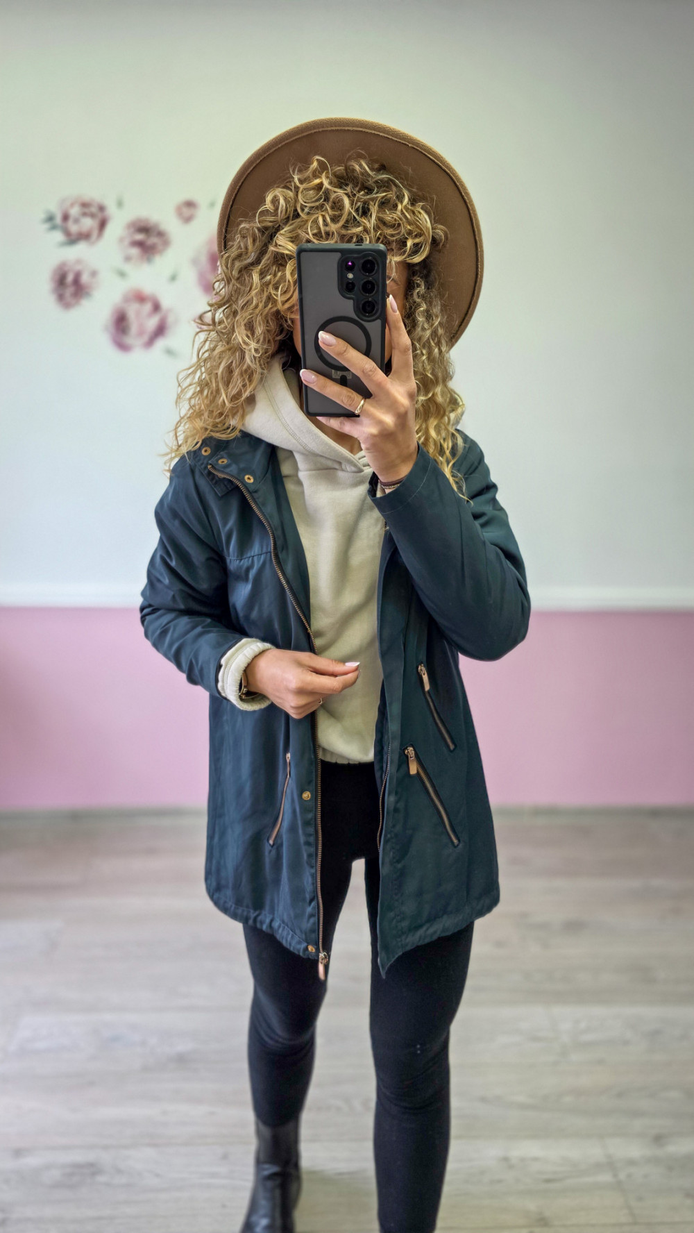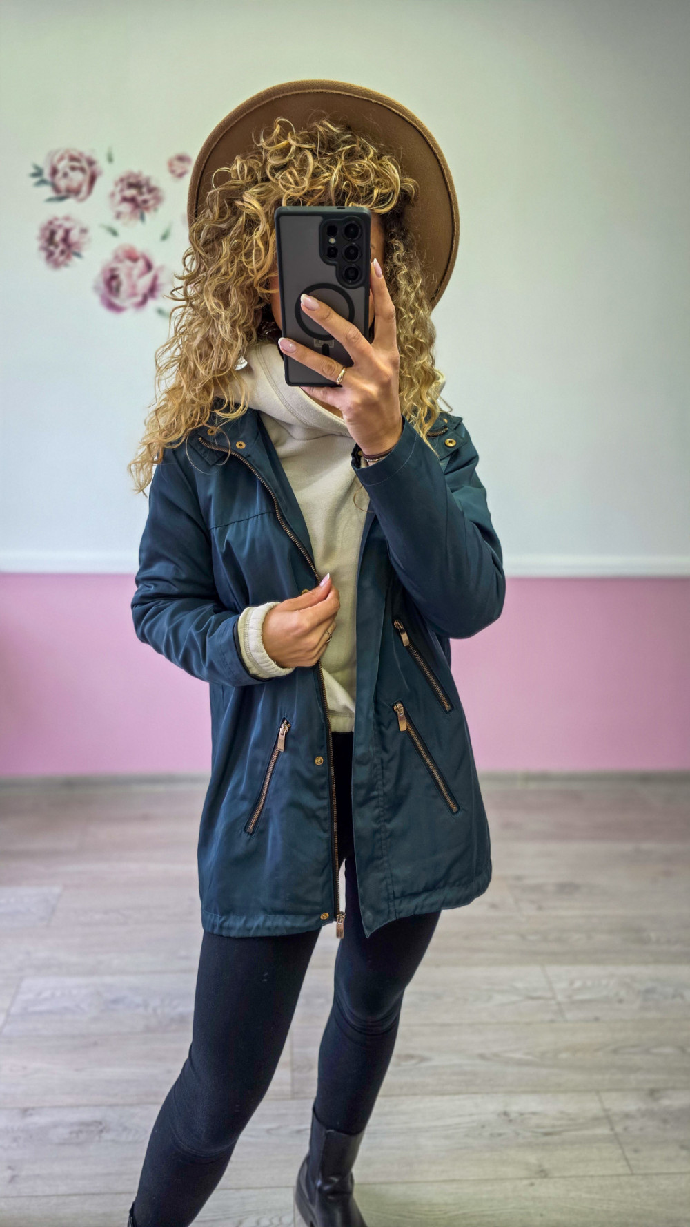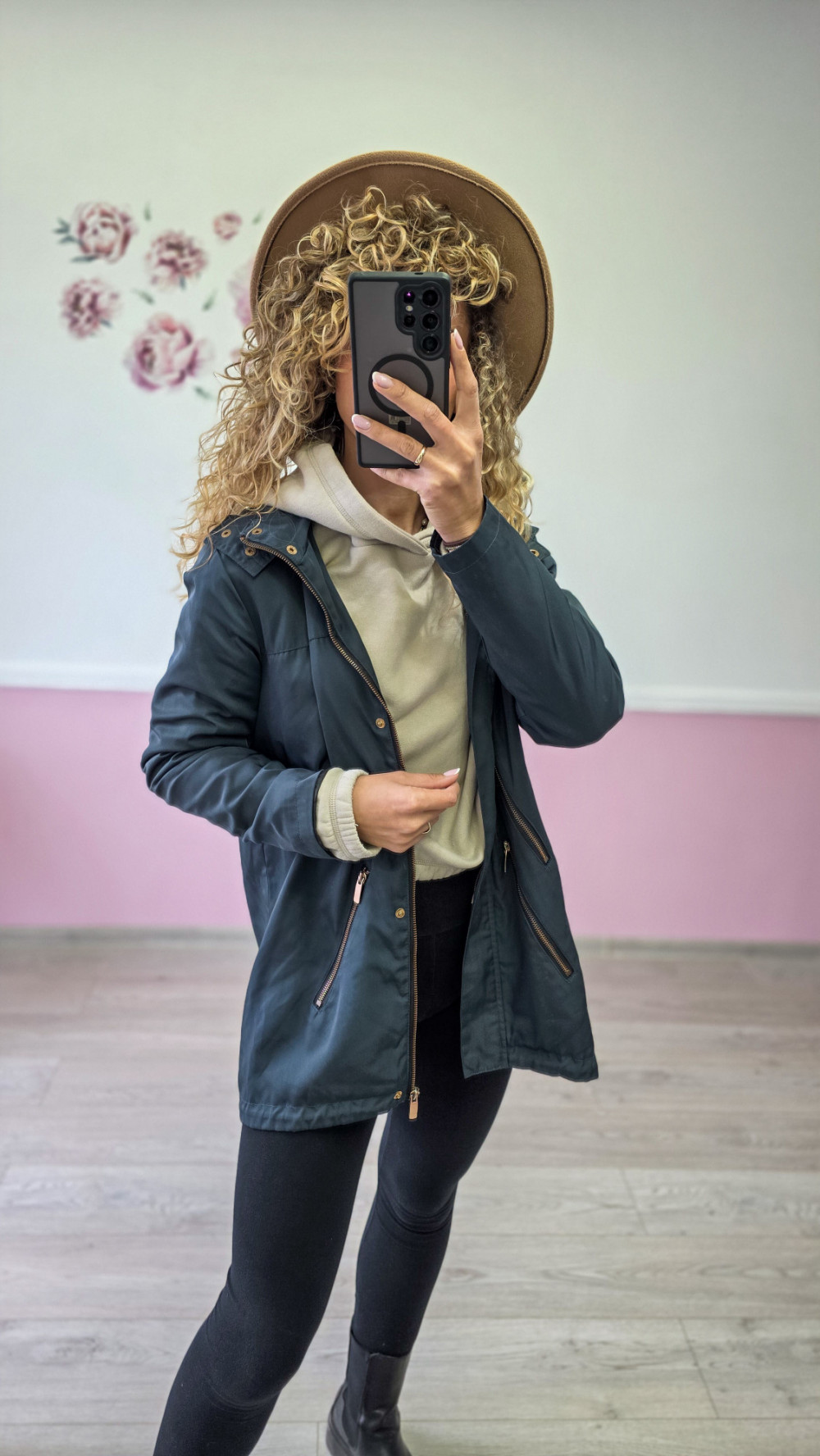 Stylowa i funkcjonalna granatowa kurtka parka damska to idealny wybór na sezon jesienno-zimowy. Chroni przed wiatrem i chłodem, zapewniając wygodę i swobodę ruchów. Model posiada praktyczne kieszenie zapinane na suwak oraz regulowany kaptur, który doskonale sprawdza się w chłodne dni. Dłuższy krój wysmukla sylwetkę i dodaje elegancji każdej stylizacji. Kurtka świetnie komponuje się zarówno z jeansami, jak i bardziej eleganckimi zestawami, tworząc modny, miejski look.