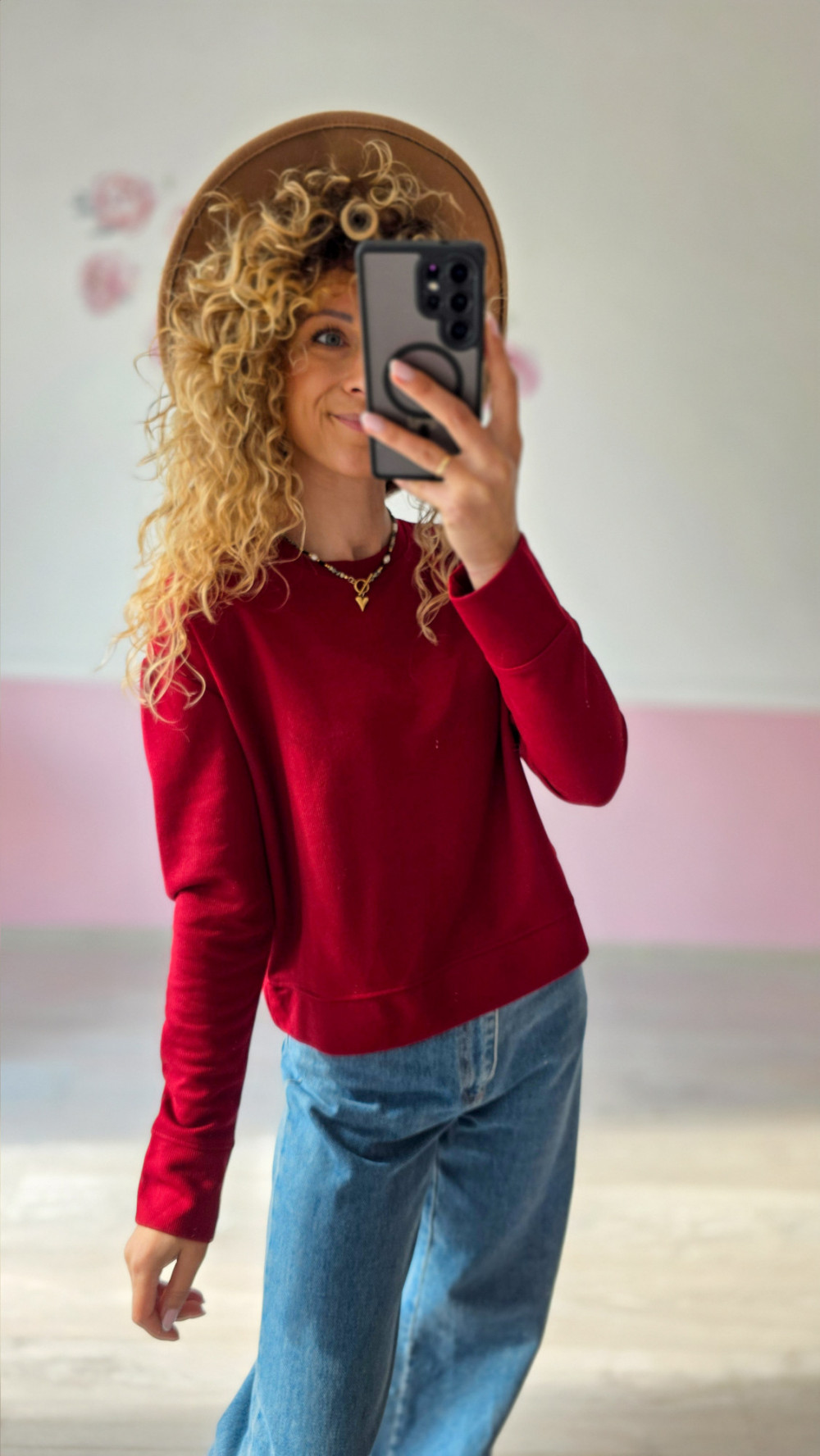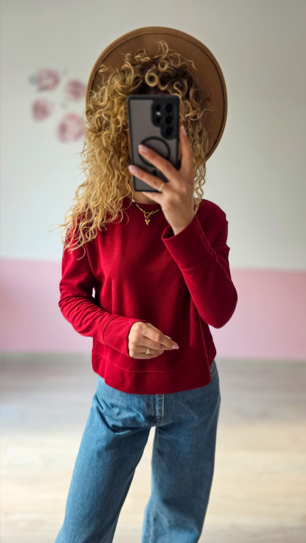 Klasyczna bordowa bluza o prostym kroju to ponadczasowy element garderoby. Wykonana z miękkiego materiału, zapewnia wygodę i komfort noszenia. Świetnie pasuje do jeansów, legginsów lub spódnic, tworząc idealny codzienny outfit.