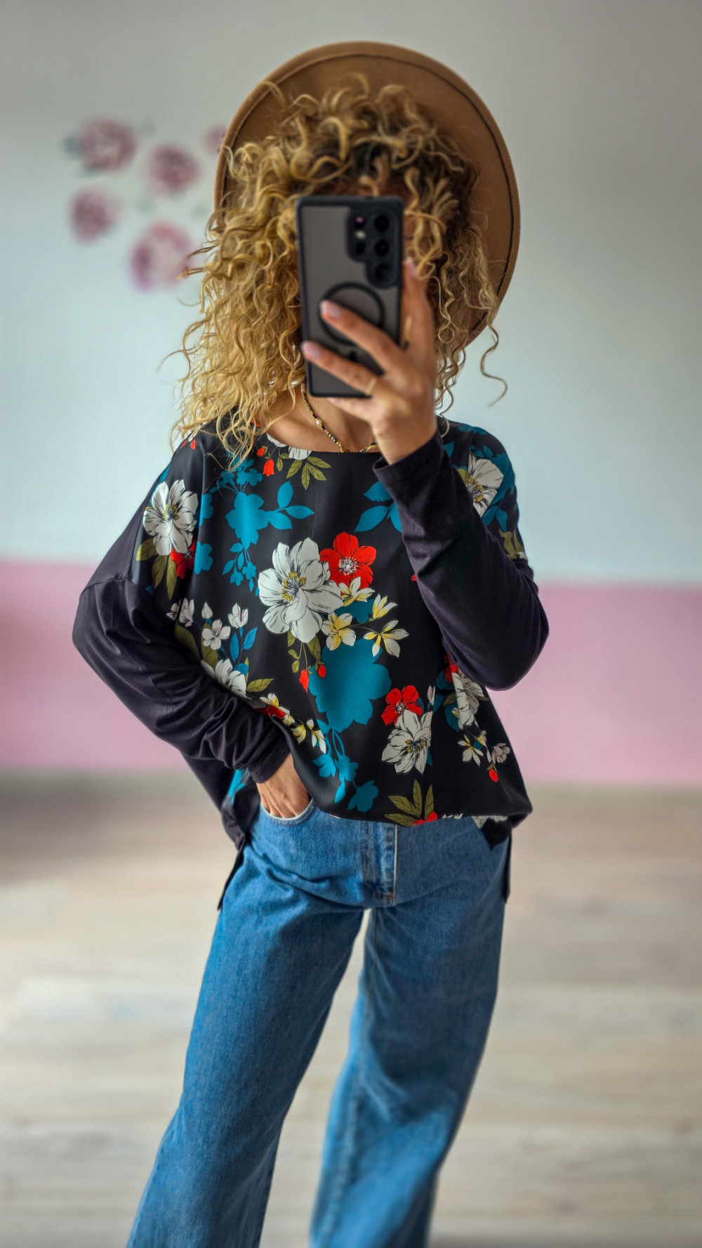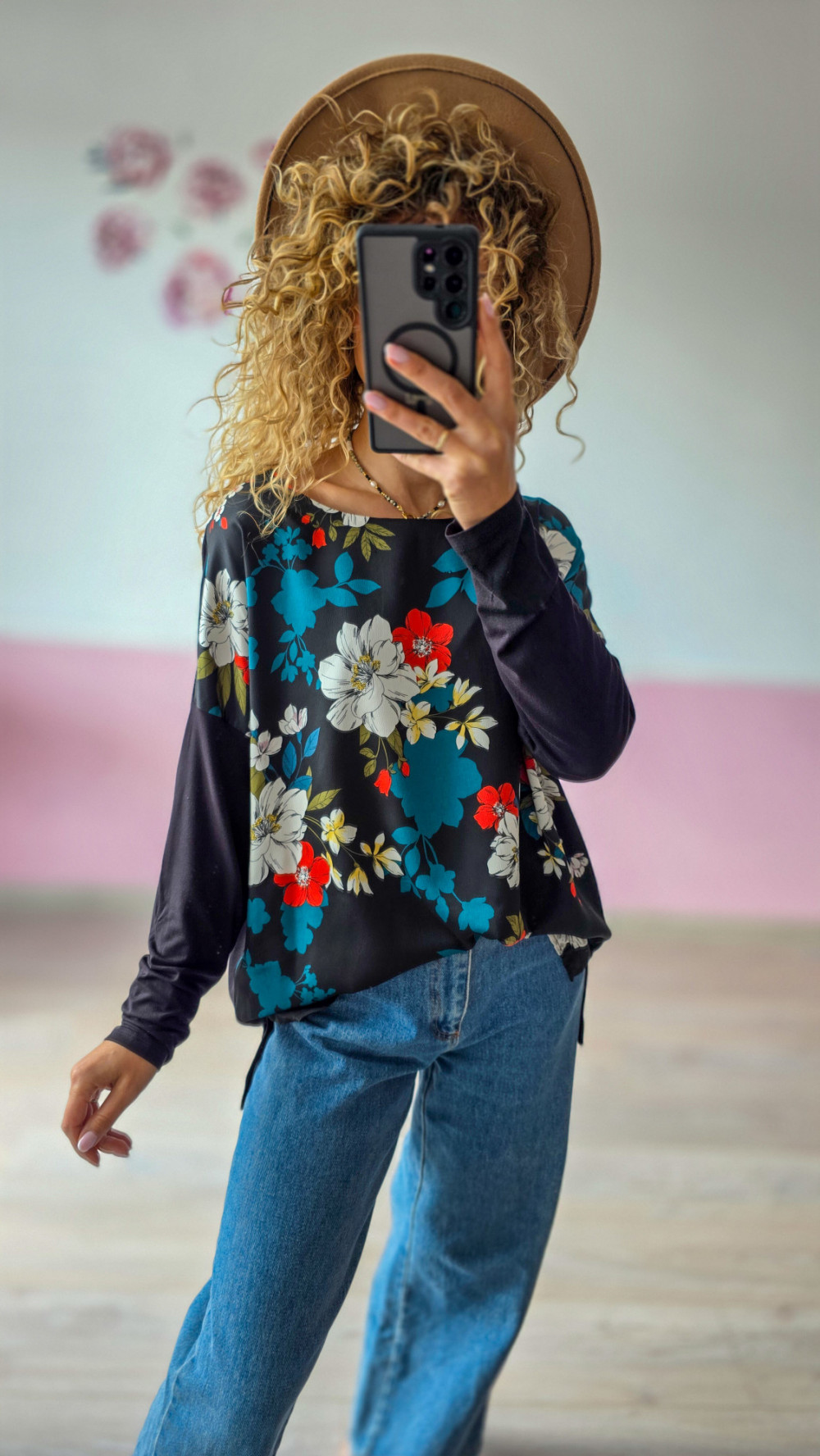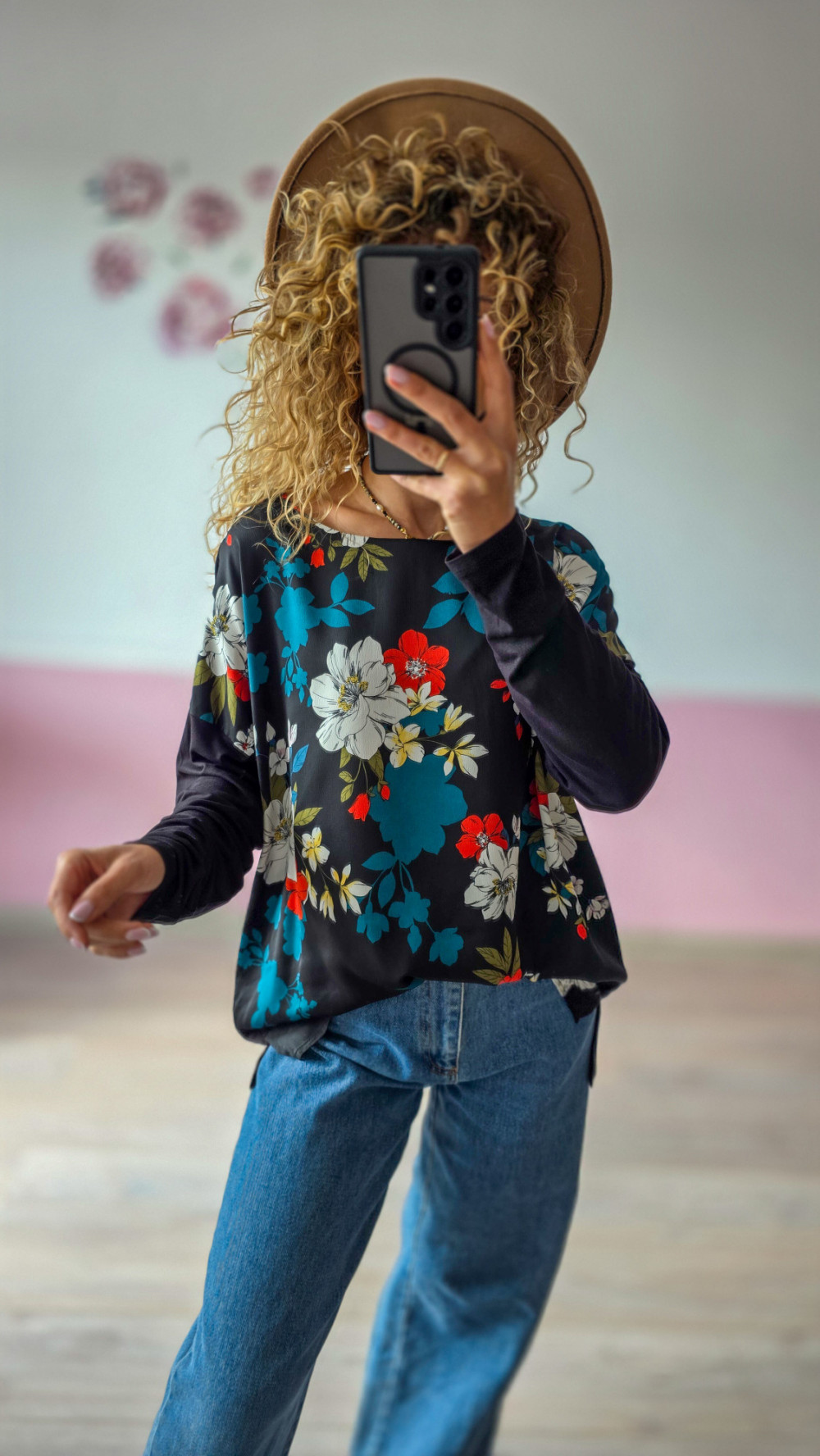 Bluzka w kwiaty na czarnym tle – nowoczesna elegancja i wygoda