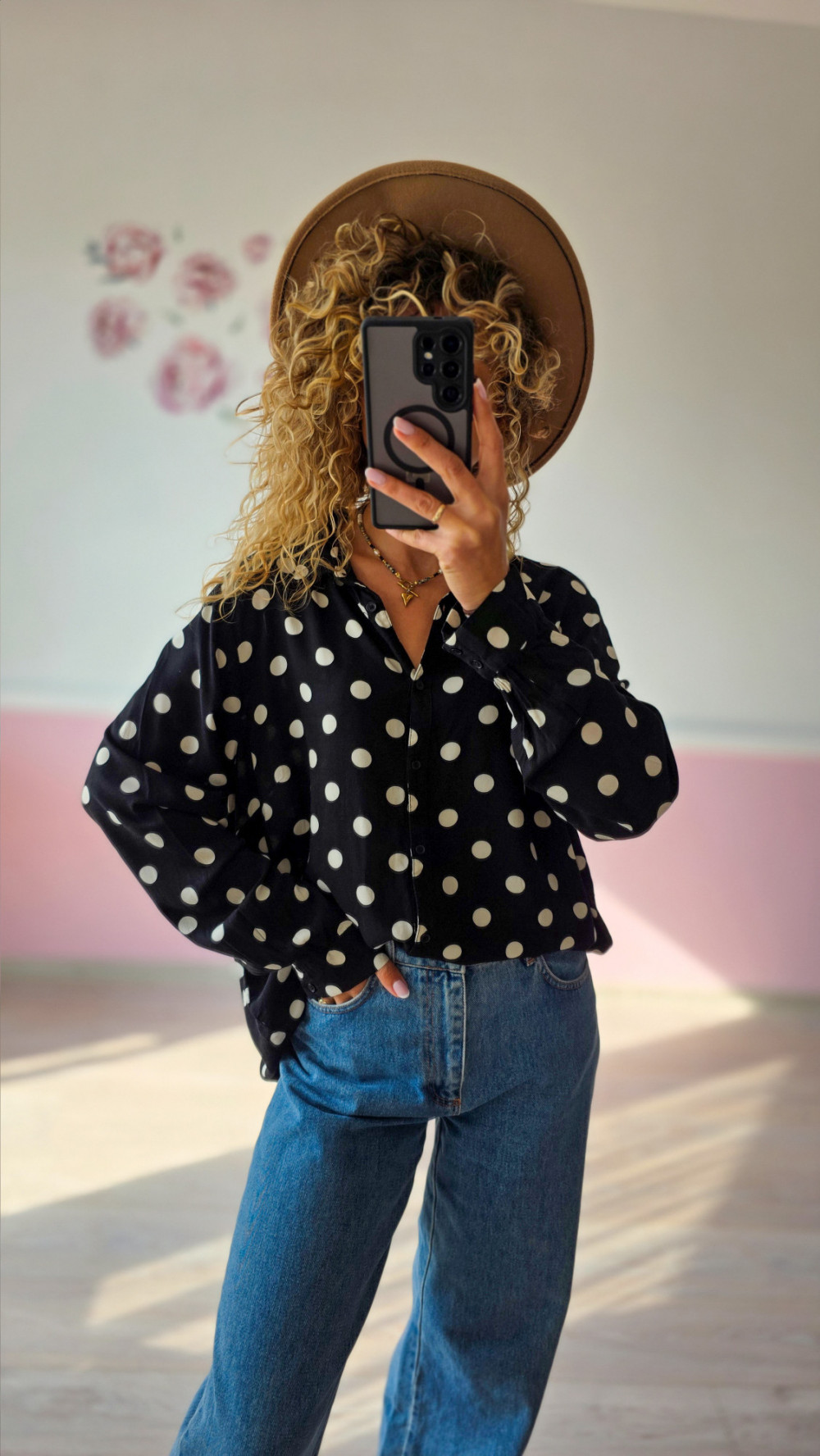 Czarna koszula w duże, białe groszki to absolutny must-have w szafie każdej kobiety. Ten ponadczasowy wzór od lat zachwyca swoją prostotą i elegancją. Delikatny materiał sprawia, że koszula pięknie układa się na ciele, a luźny krój dodaje jej lekkości i wygody. Można ją nosić zarówno do pracy, jak i na spotkania z przyjaciółmi – wystarczy dodać ulubione jeansy lub spódnicę, by stworzyć stylizację w paryskim stylu. To idealny wybór dla kobiet, które kochają klasykę w nowoczesnym wydaniu.