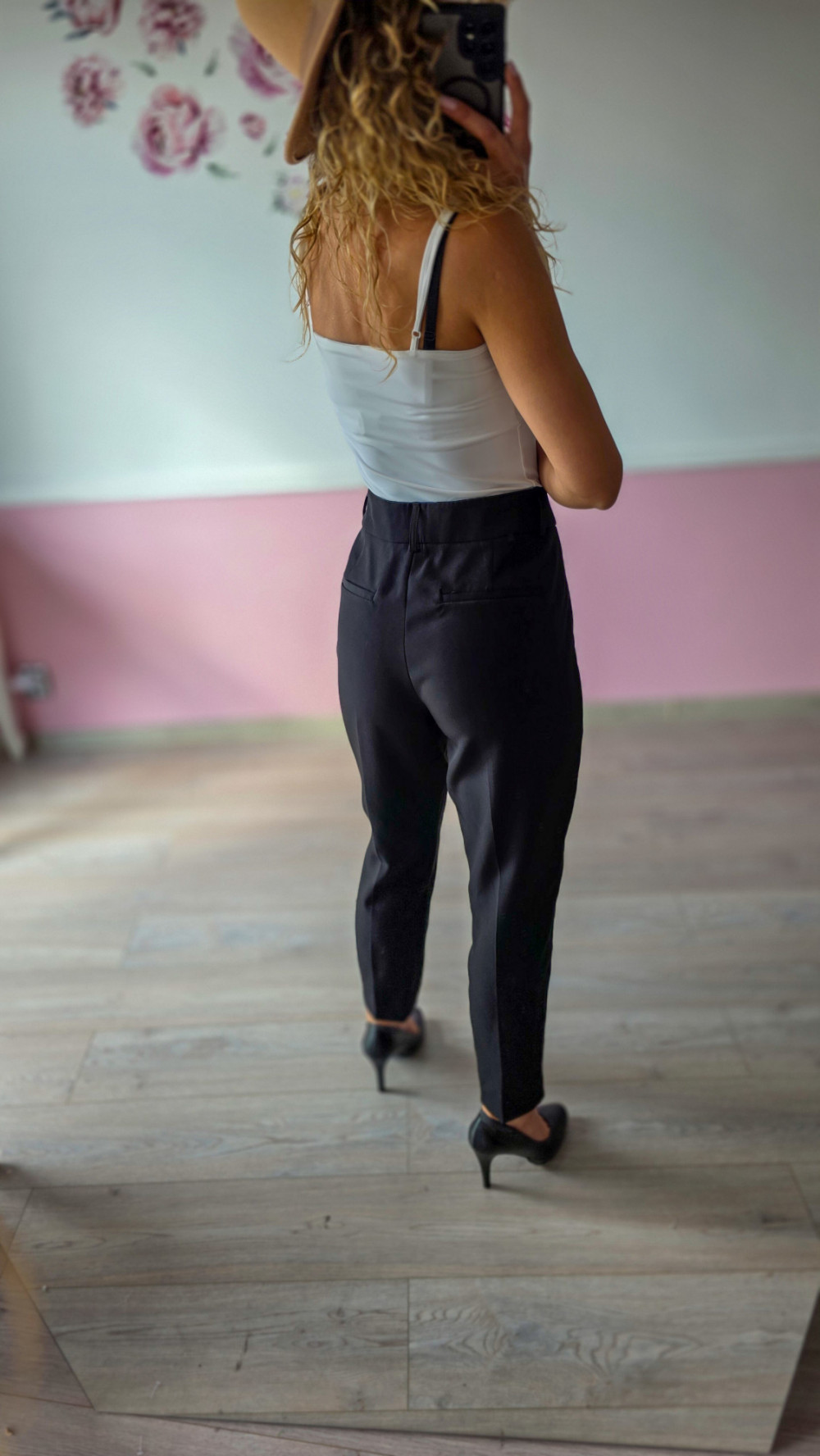 Te czarne spodnie z prostą nogawką to podstawa każdej kobiecej garderoby.