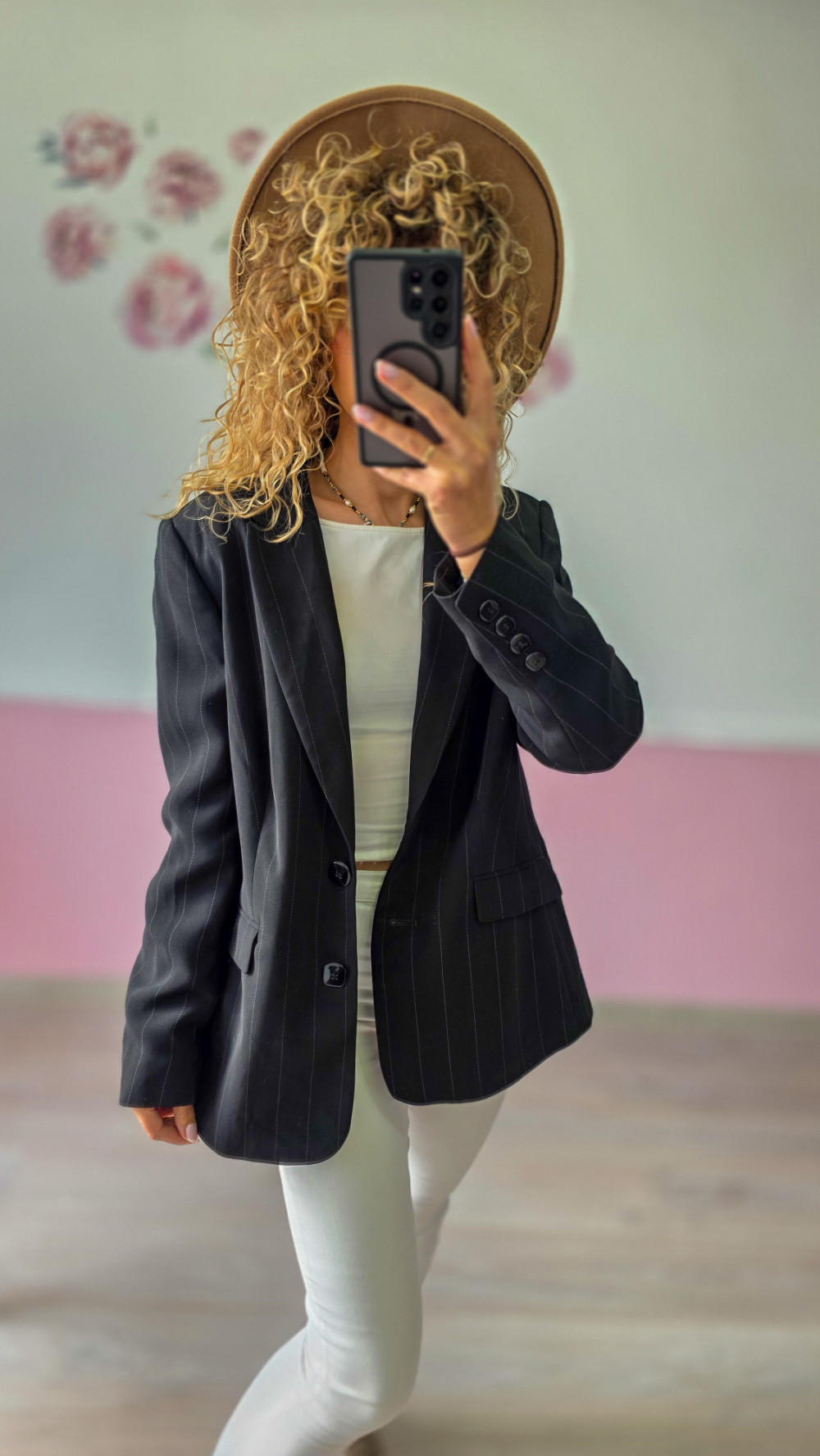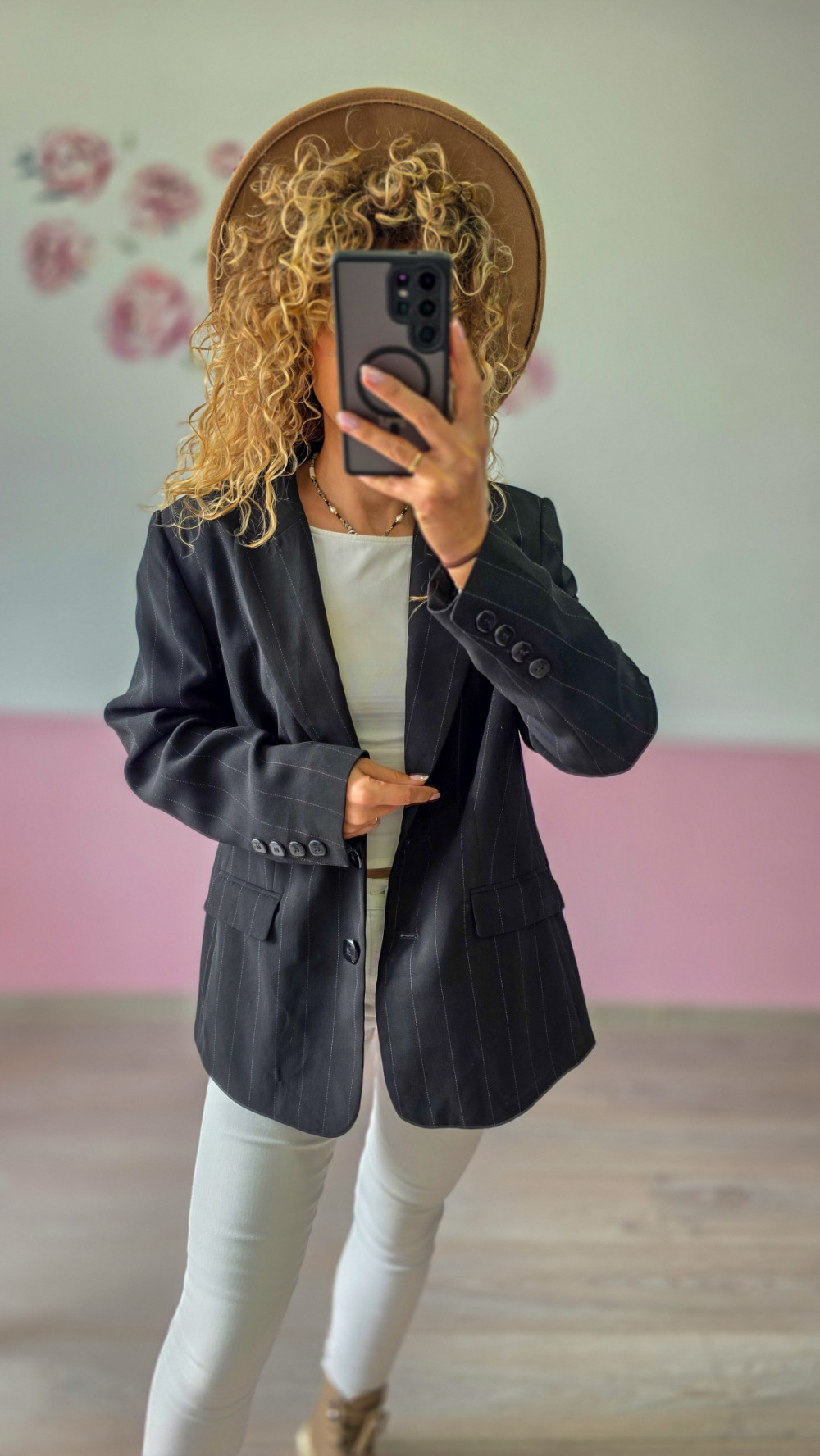 Marynarka damska czarna w paski – elegancja w nowoczesnym stylu