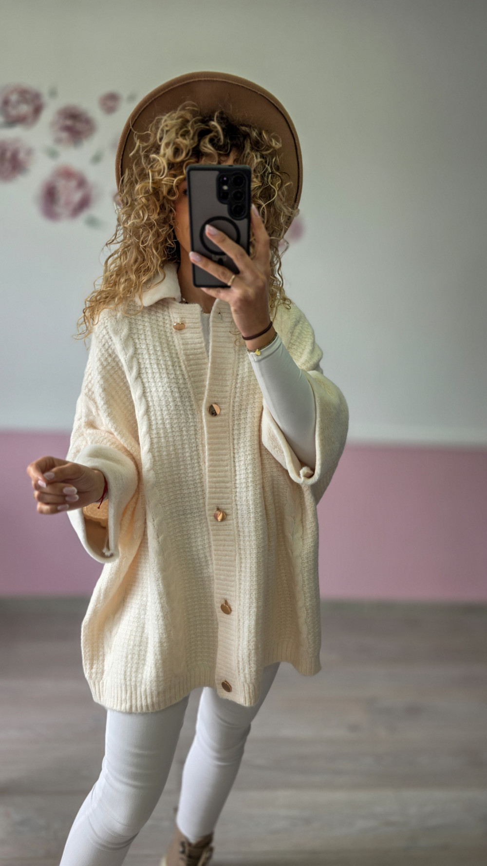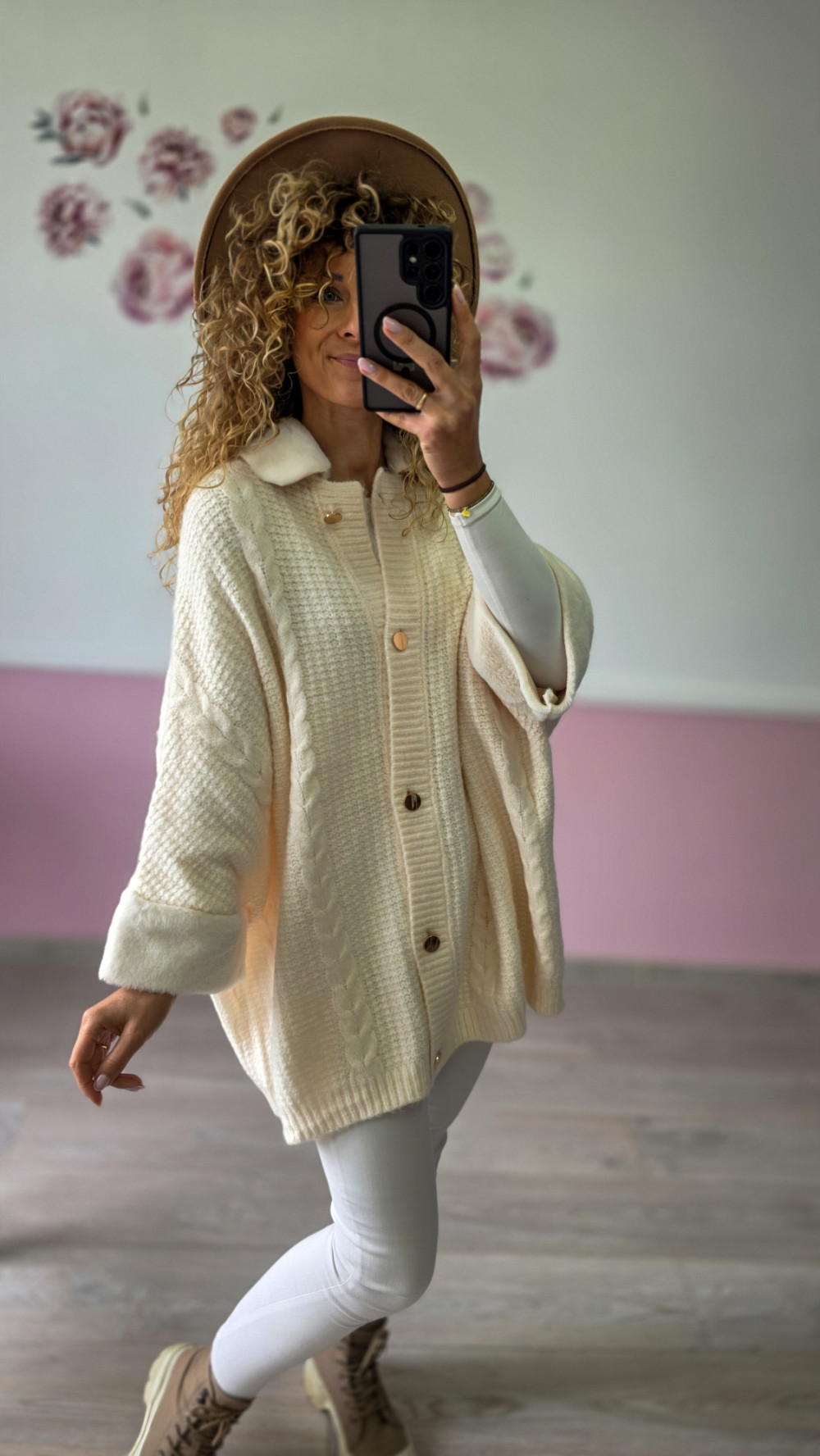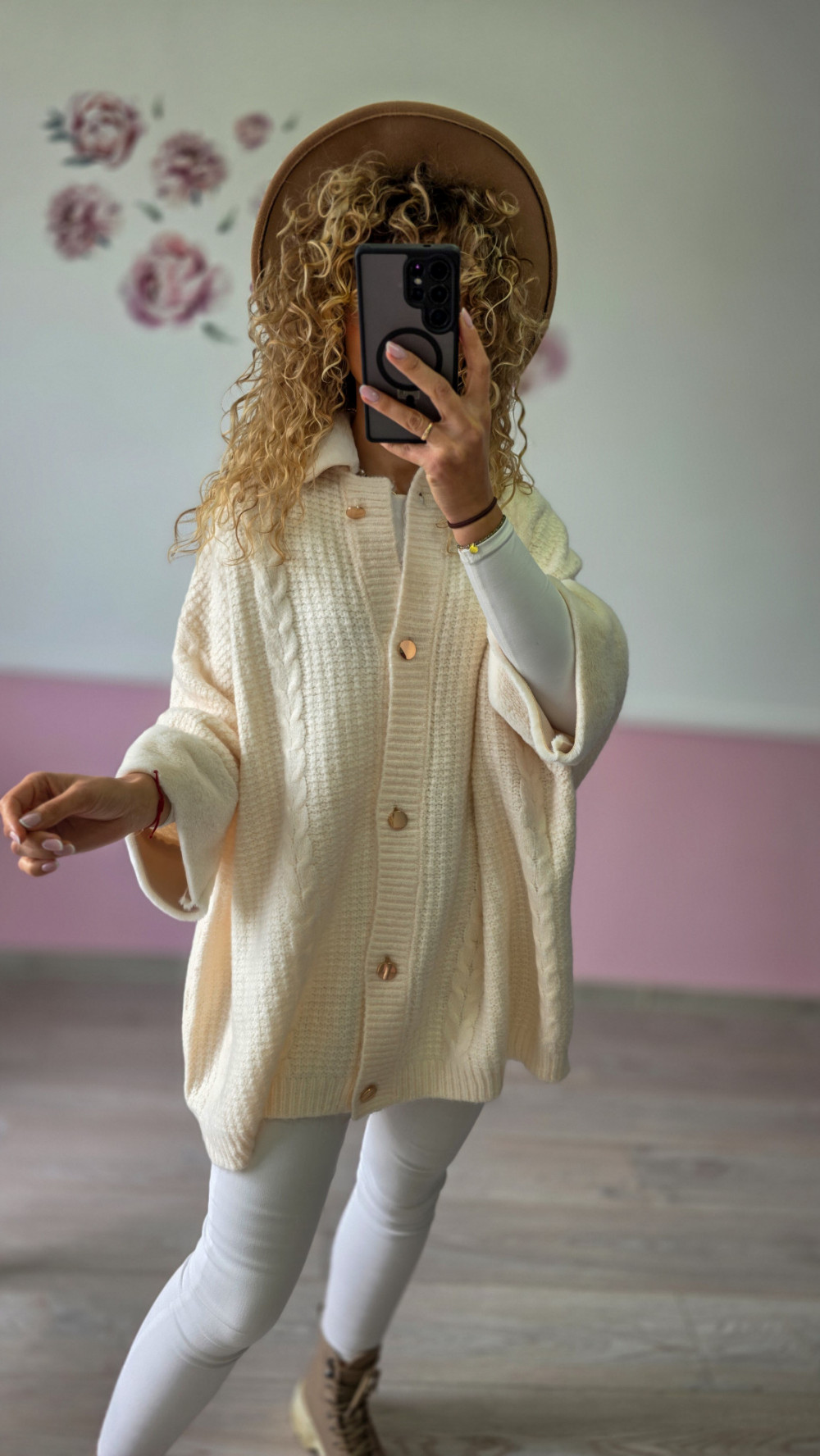 Kremowe ponczo swetrowe – przytulna elegancja M-XL