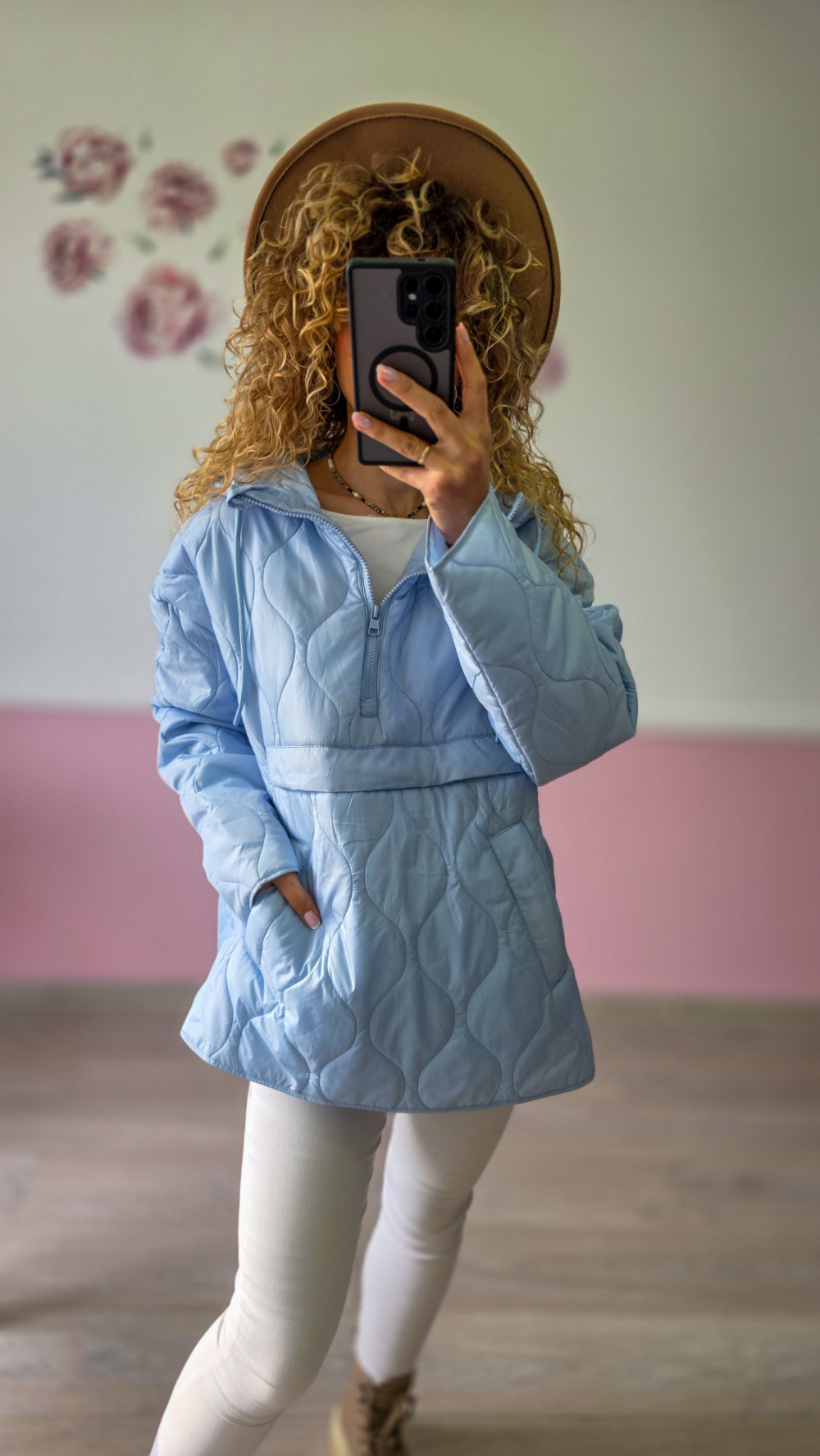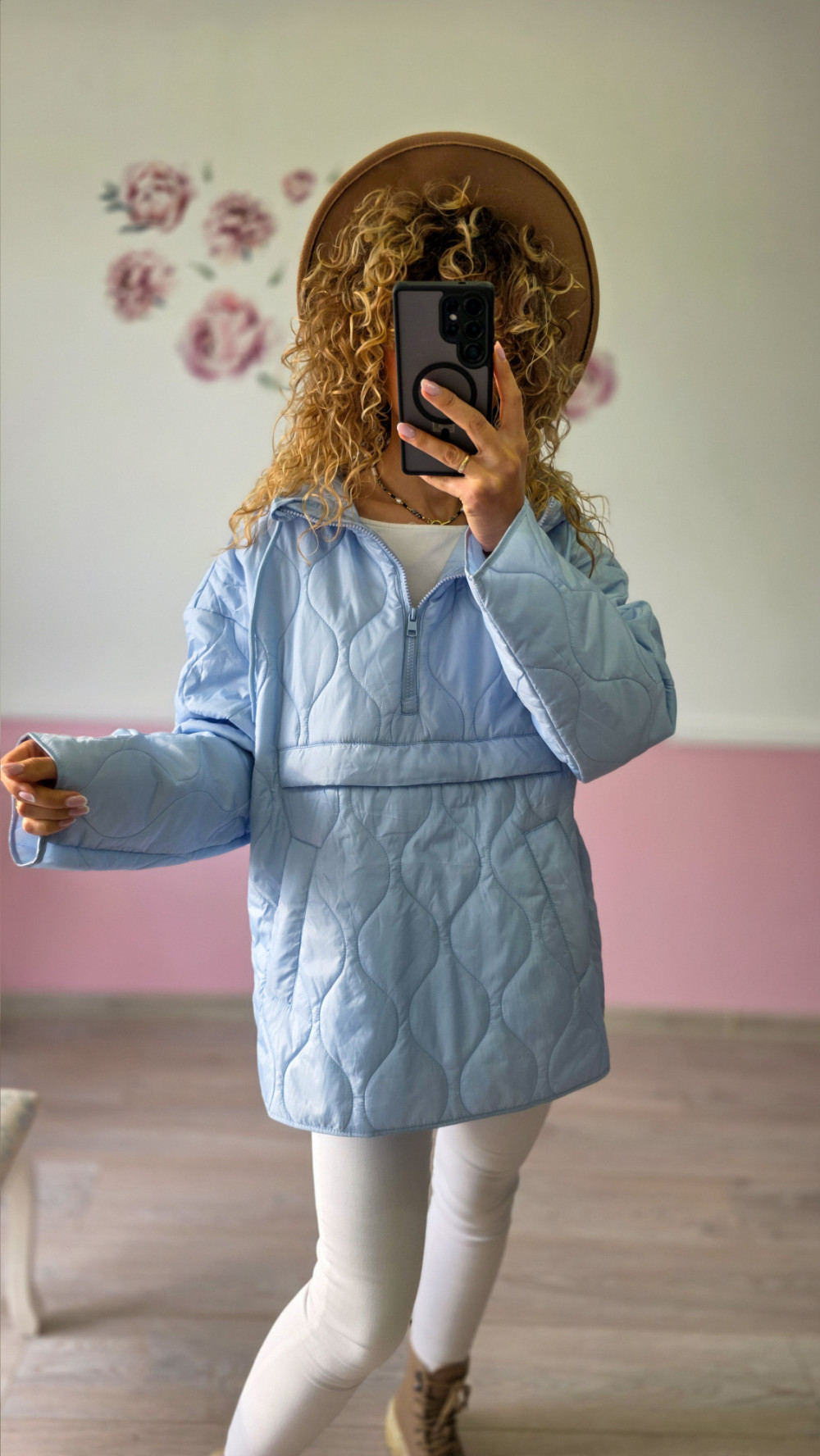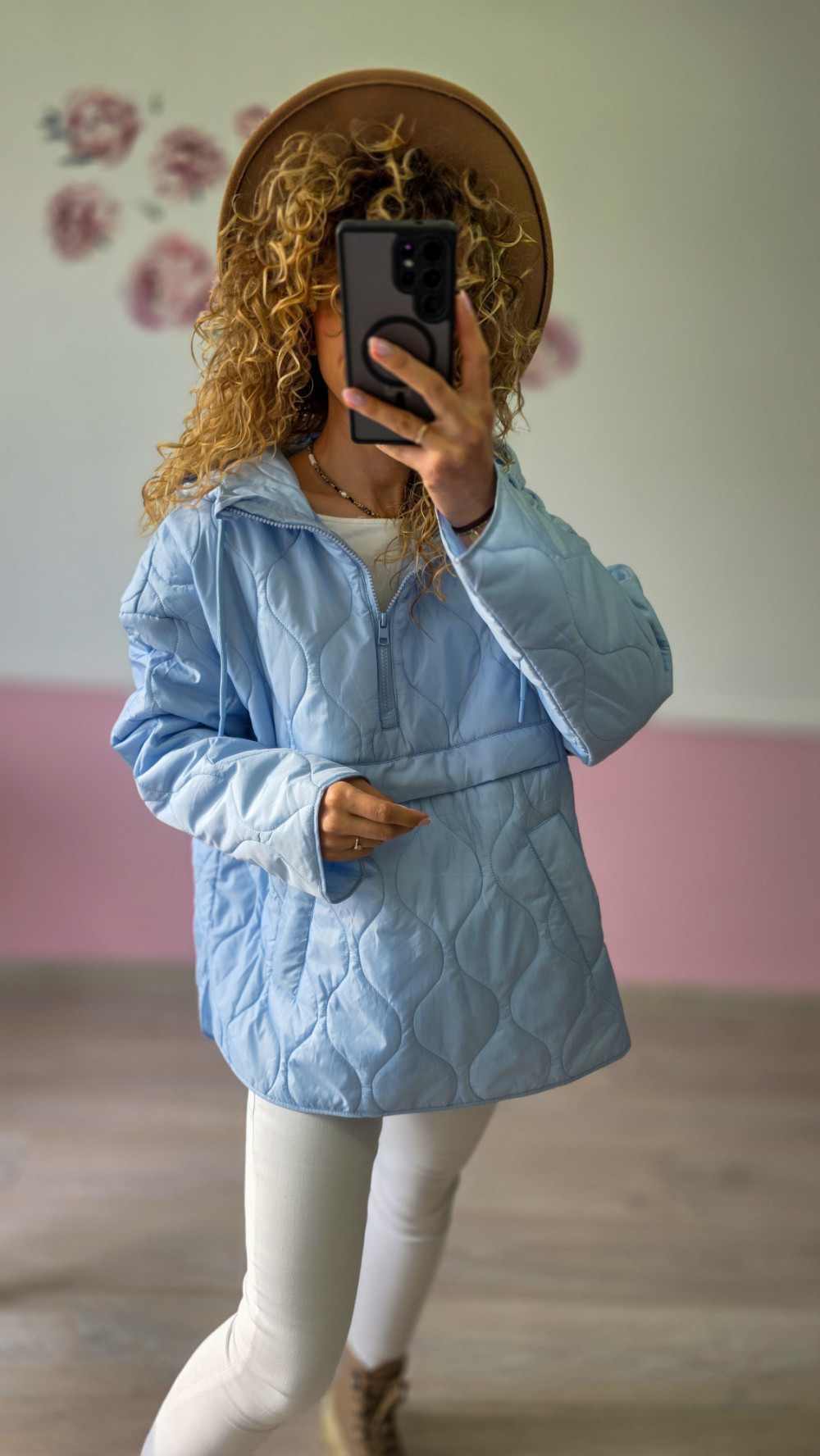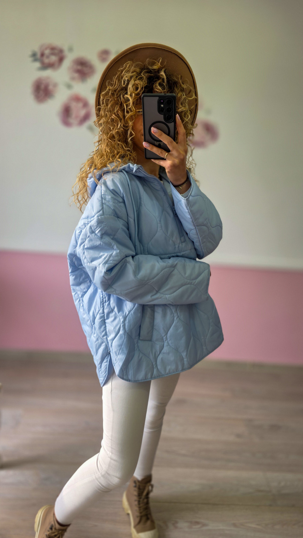 Stylowa, praktyczna i ponadczasowa – taka właśnie jest nasza niebieska kurtka pikowana z Domowego Lumpeksu. To doskonały wybór dla osób, które cenią sobie wygodę i elegancję w codziennym wydaniu. Delikatny odcień błękitu ożywia stylizację i wprowadza świeżość, idealną na wiosenne lub jesienne dni.