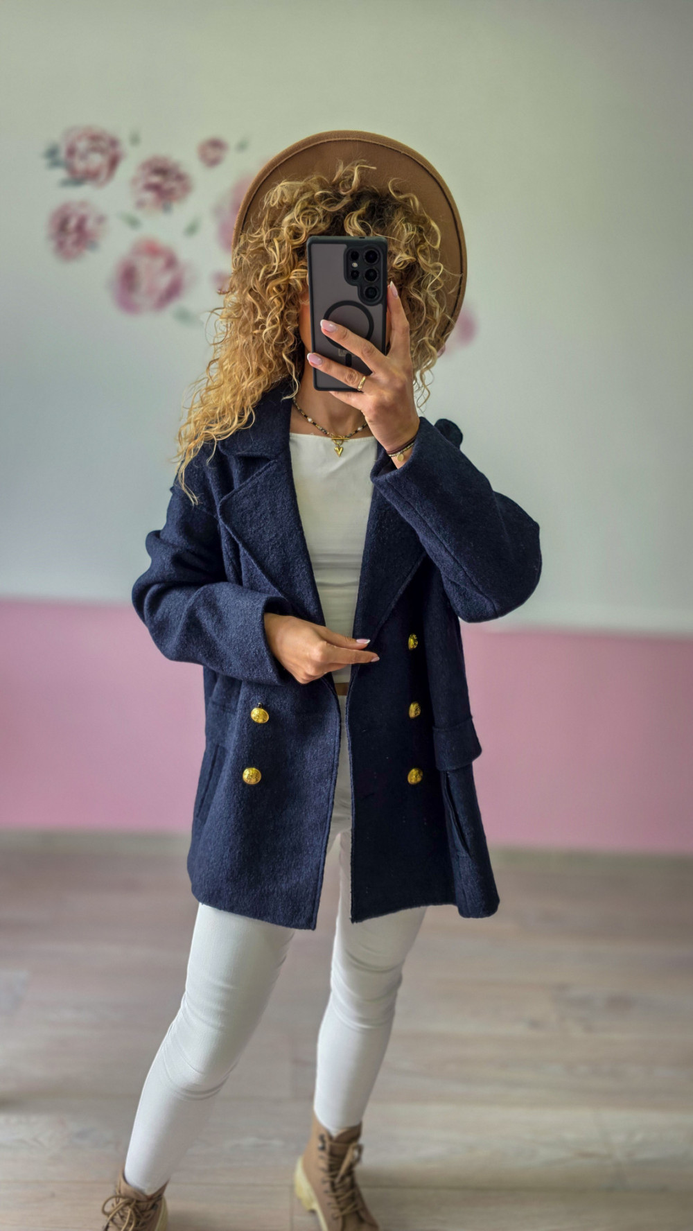 Zamów granatowy płaszcz dwurzędowy w Domowym Lumpeksie i przekonaj się, że odzież online z secondhandu potrafi zachwycić jakością, stylem i ponadczasową elegancją.