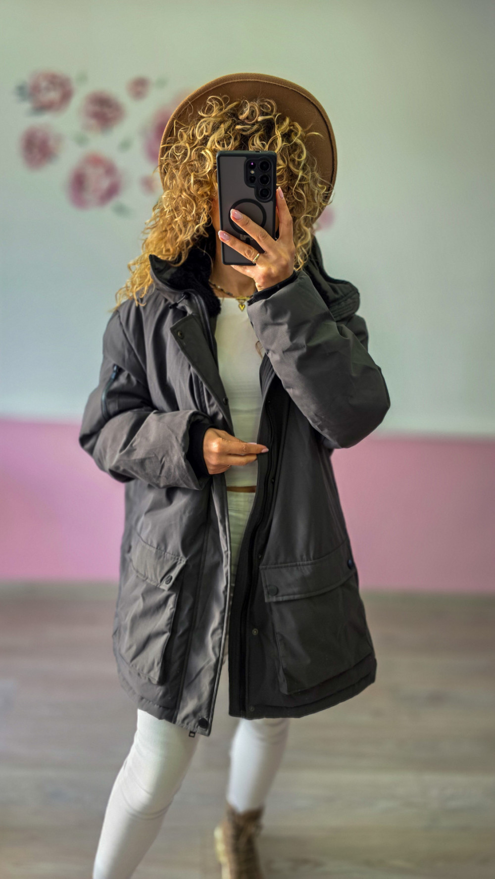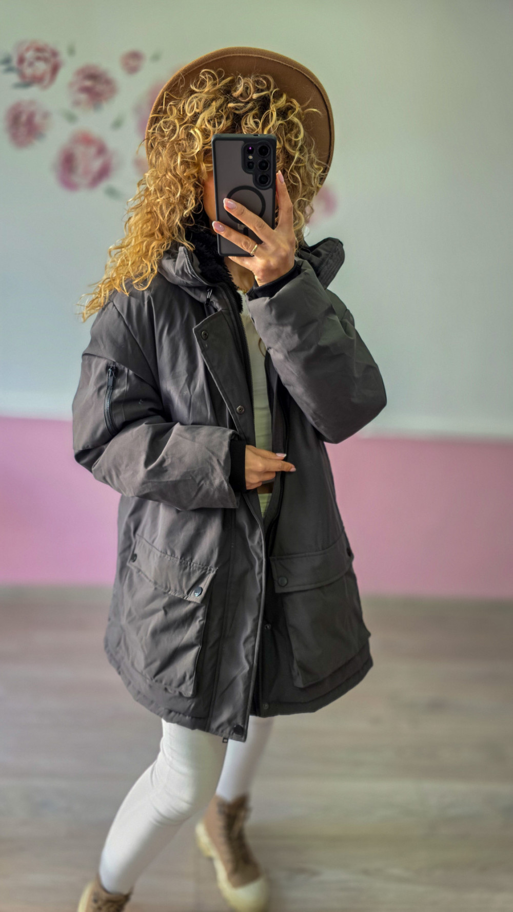 Jeśli szukasz ciepłej, wygodnej i praktycznej kurtki na zimę, ta ciemnoszara kurtka zimowa z Domowego Lumpeksu będzie idealnym wyborem. Luźny krój i duże kieszenie sprawiają, że jest niezwykle funkcjonalna, a jednocześnie zachowuje modny, miejski charakter.