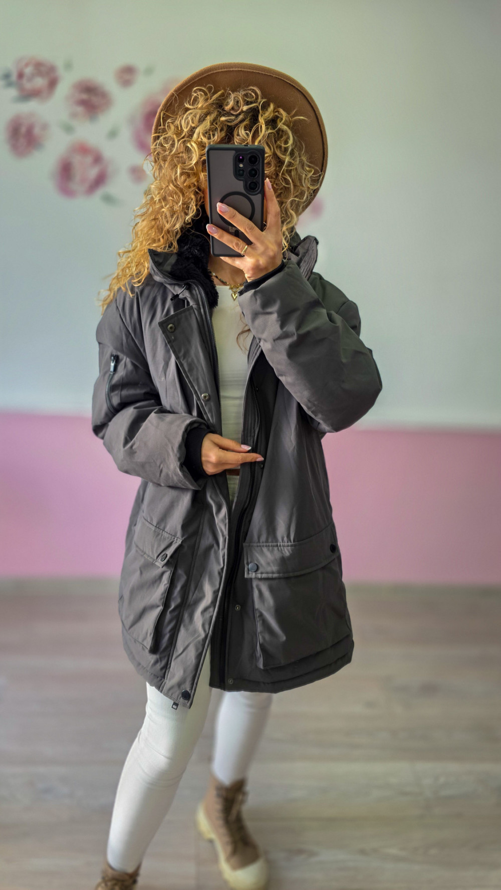 Gruby materiał i wysoki kołnierz skutecznie chronią przed zimnem, wiatrem i wilgocią. Zapięcie na suwak i napy zapewnia wygodę, a stonowany odcień szarości sprawia, że kurtka pasuje do wszystkiego – od sportowych po casualowe stylizacje.