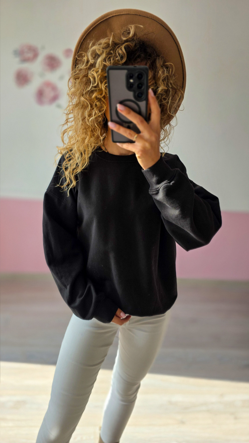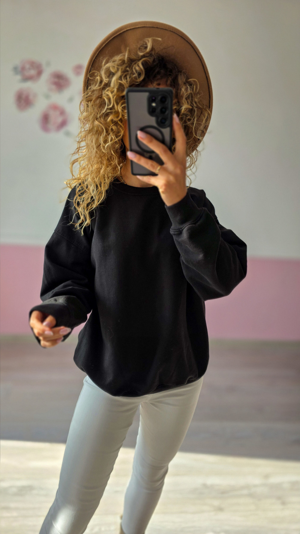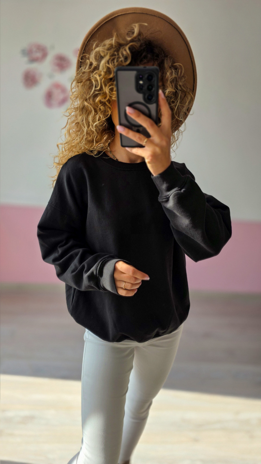Prosta i stylowa czarna bluza damska basic to niezbędny element każdej garderoby. Wykonana z miękkiego, przyjemnego materiału, zapewnia komfort noszenia przez cały dzień. Klasyczny krój z okrągłym dekoltem pasuje do jeansów, legginsów czy spódnicy.
