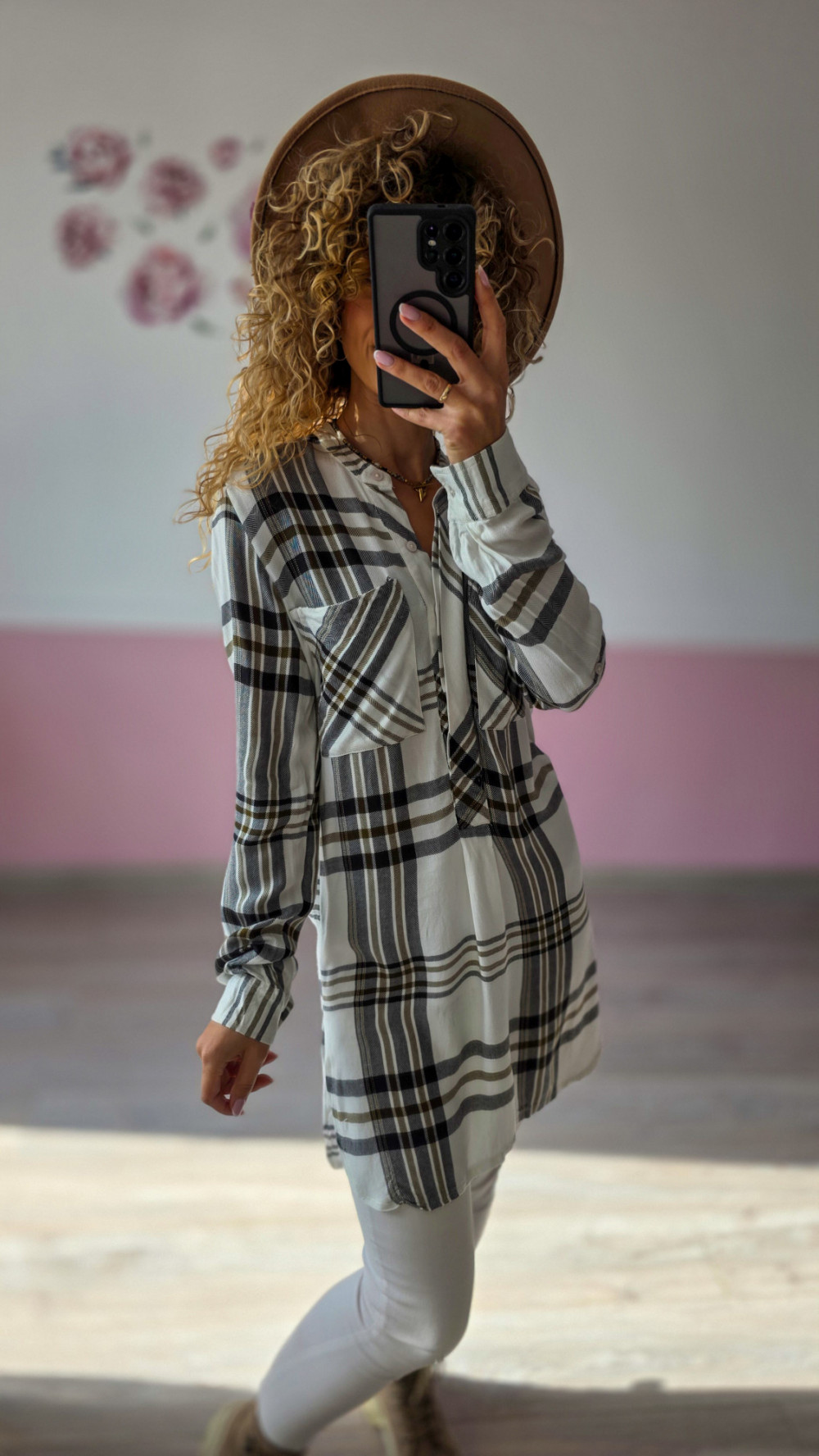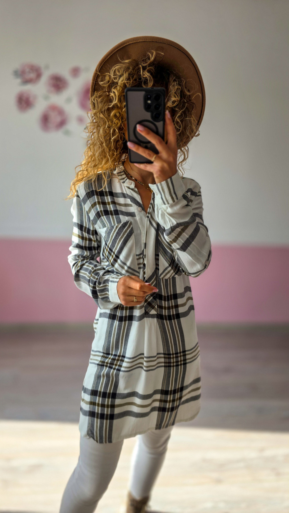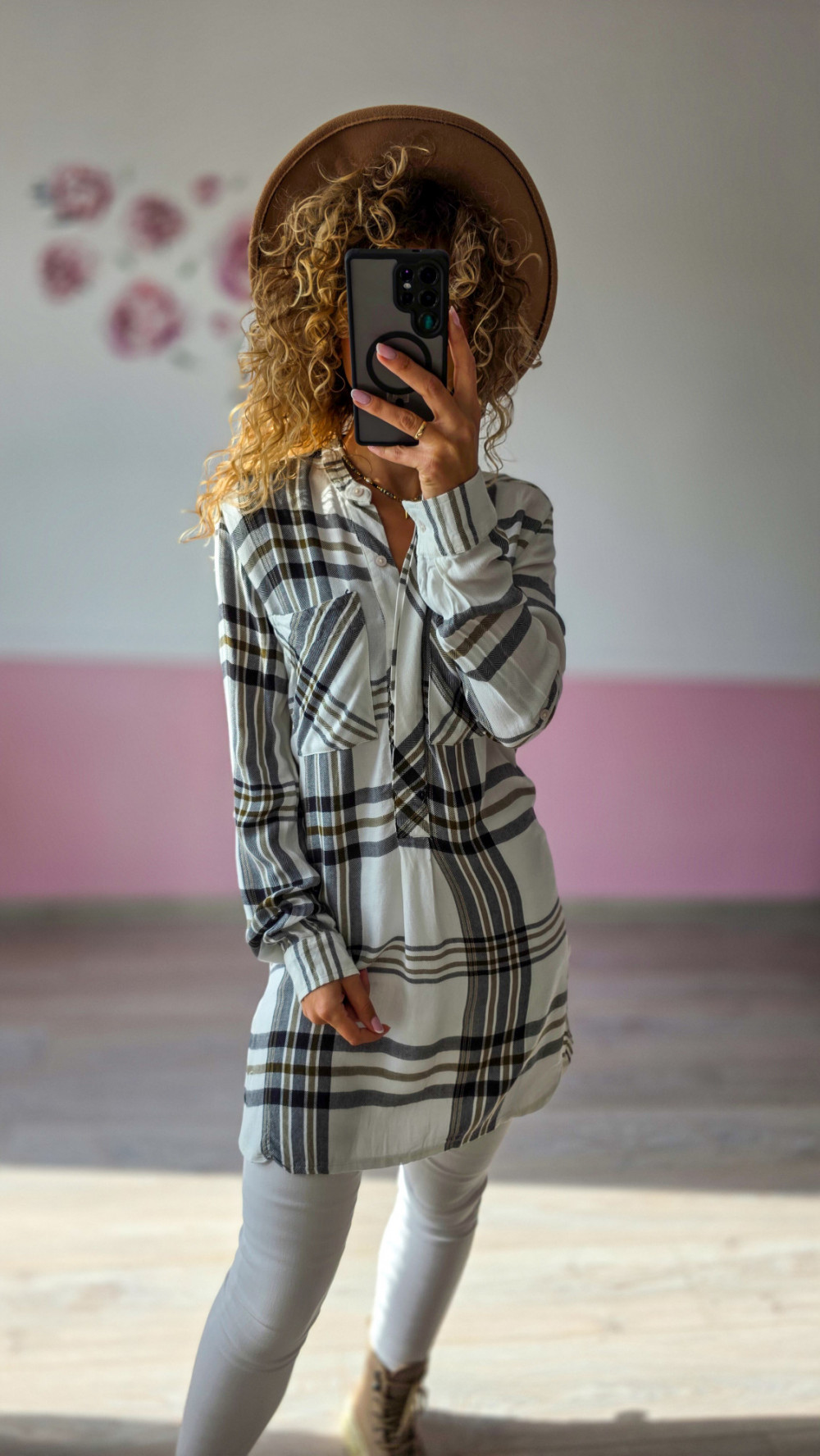 Modna długa koszula damska w kratę to doskonałe połączenie wygody i stylu. Wykonana z miękkiej, przewiewnej tkaniny, świetnie sprawdzi się jako samodzielna stylizacja lub narzutka na T-shirt. Dłuższy krój i kieszenie z przodu dodają jej casualowego charakteru.