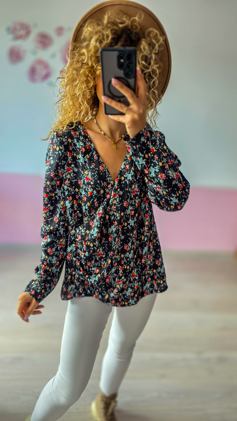 Bluzka w drobne kwiaty z dekoltem kopertowym