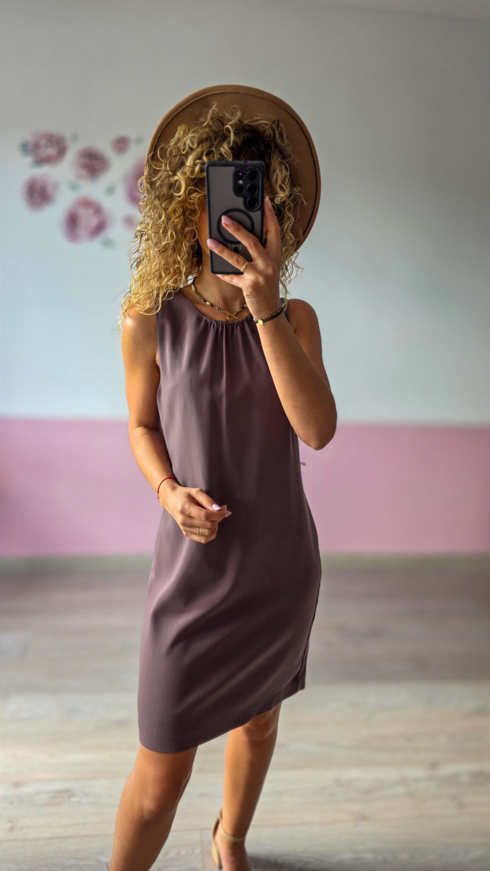 Sukienka cappuccino bez rękawów – elegancka prostota na każdą okazję
