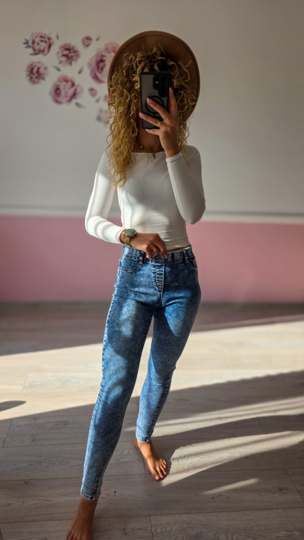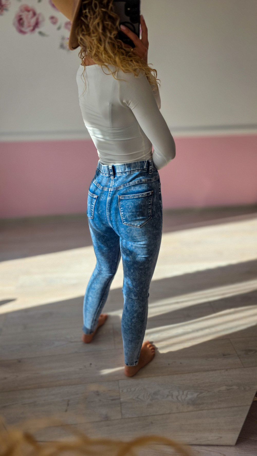 Jeansy z efektem sprania to idealny wybór na co dzień. Miękki denim i elastyczny krój zapewniają wygodę, a delikatnie przecierane wykończenie nadaje stylowy, nonszalancki wygląd.