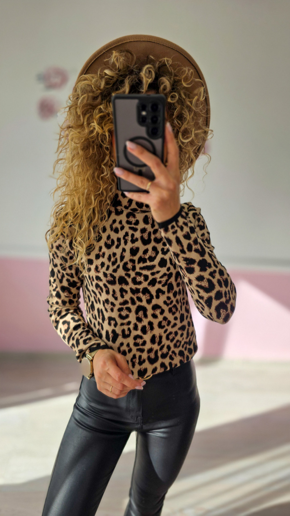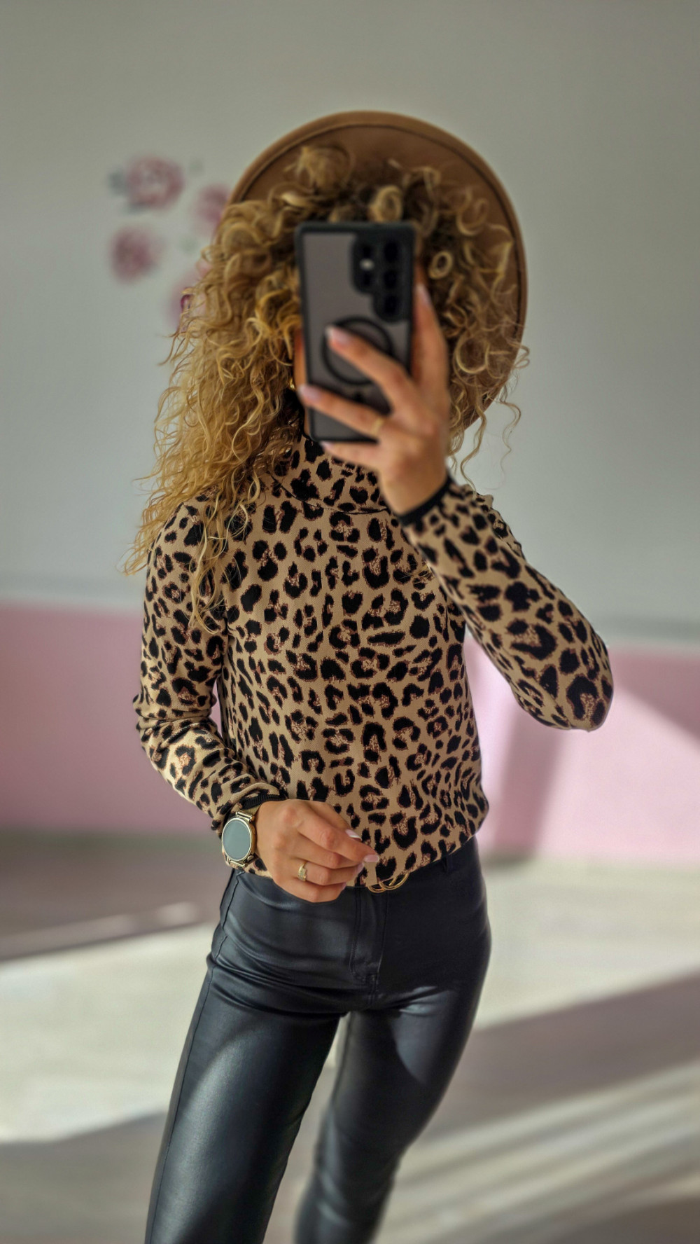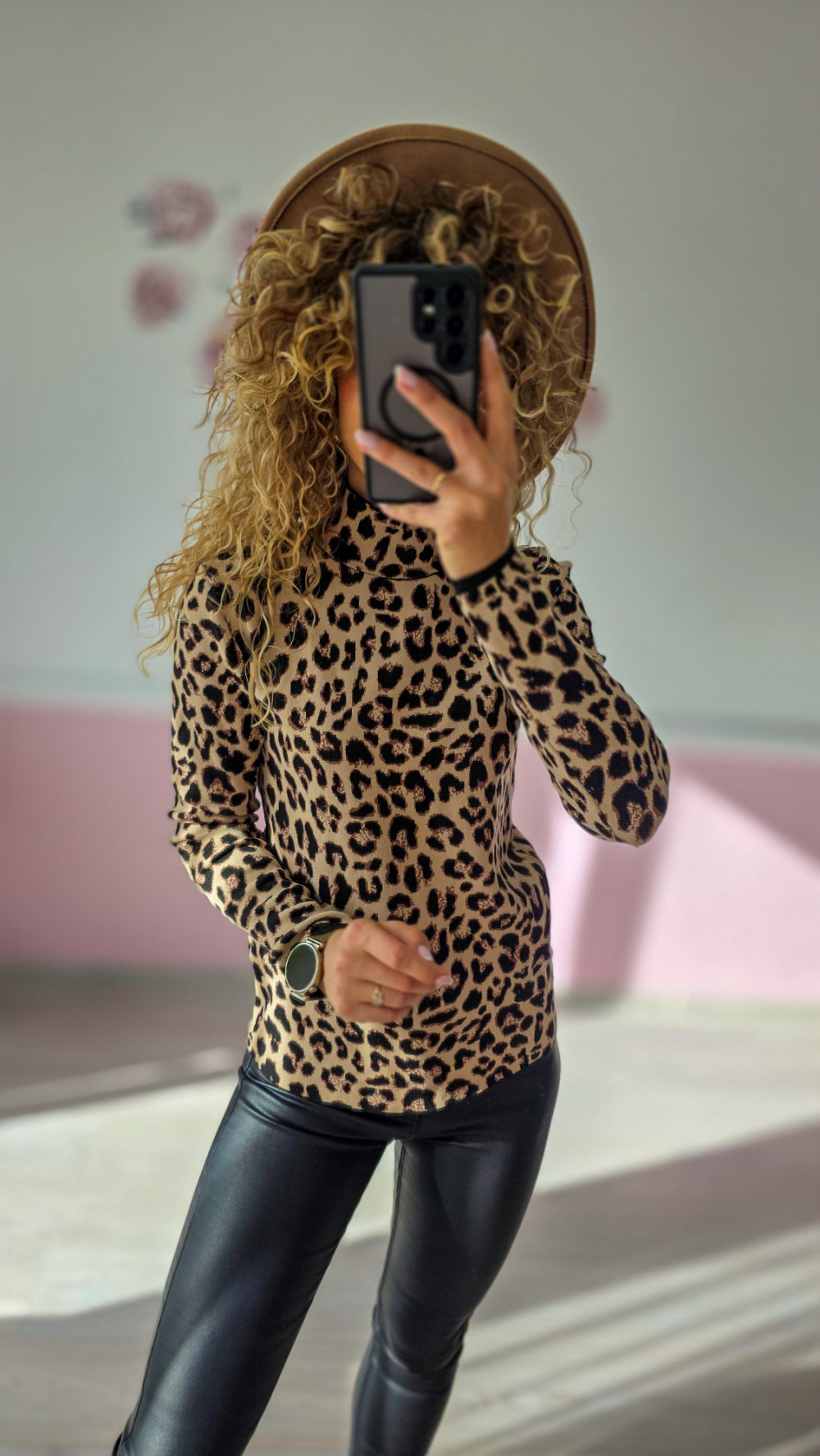 Zmysłowy i modny golf damski w panterkę to klasyka, która nigdy nie wychodzi z mody. Wykonany z elastycznego, przyjemnego w dotyku materiału, idealnie dopasowuje się do sylwetki i podkreśla kobiece kształty.