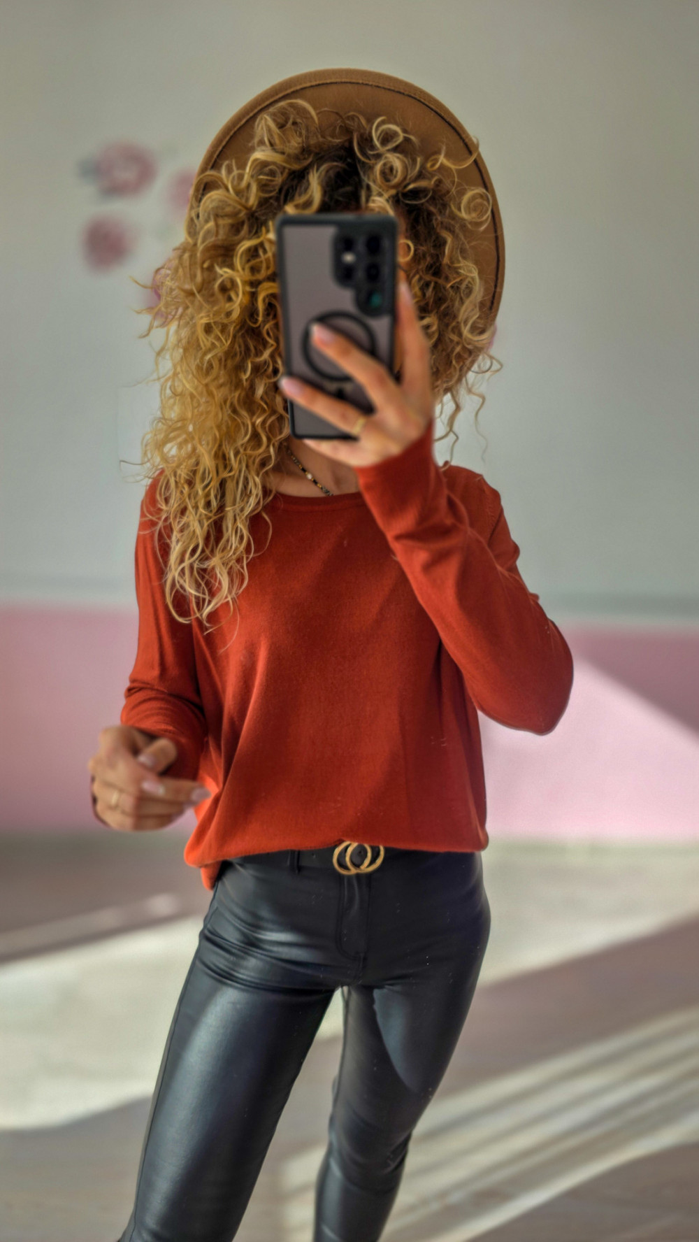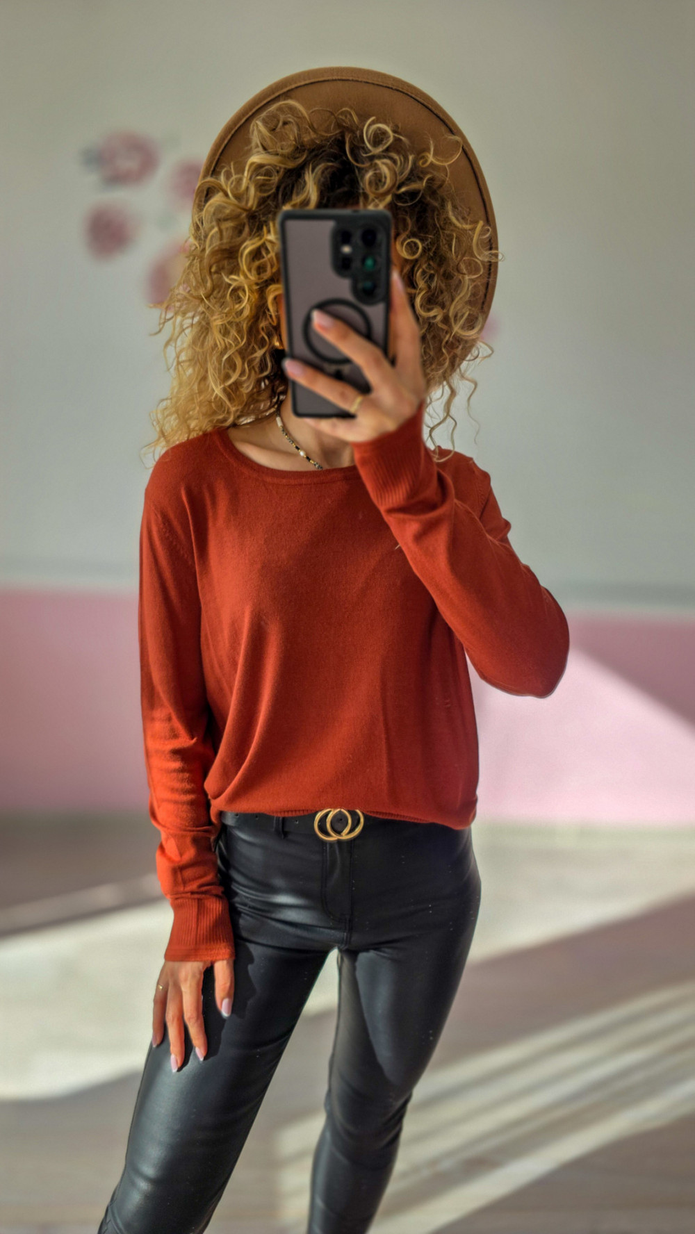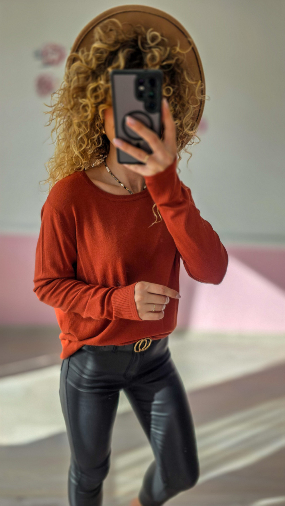 Sweterek w kolorze ceglastym – gładki, klasyczny