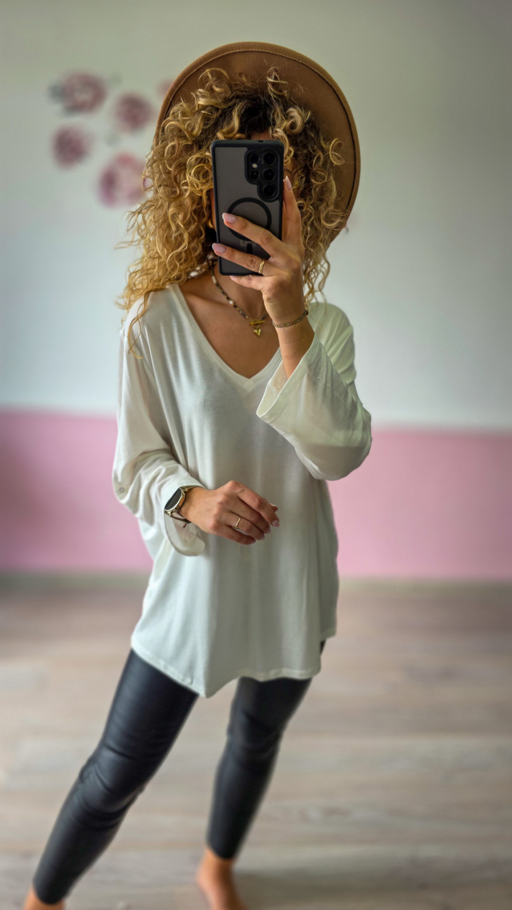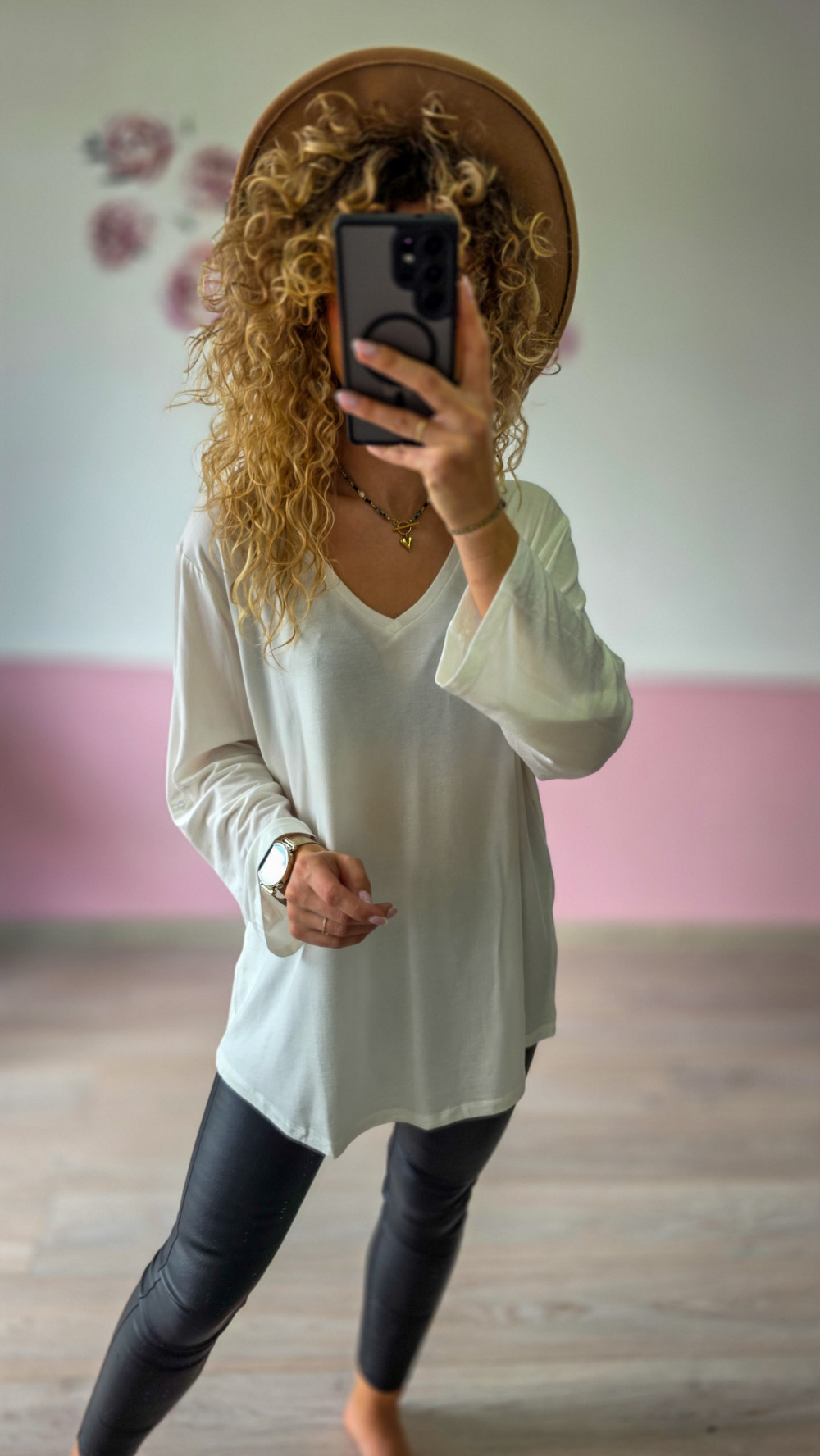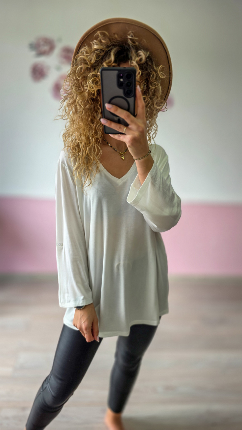 Dłuższa bluzka z dekoltem V – biała 4XL/5XL