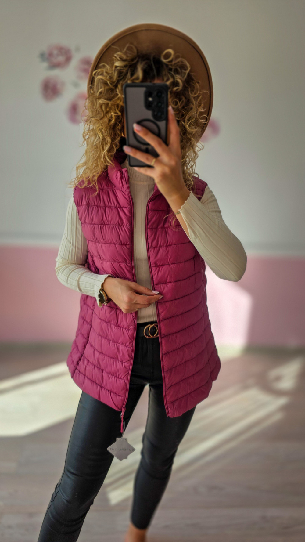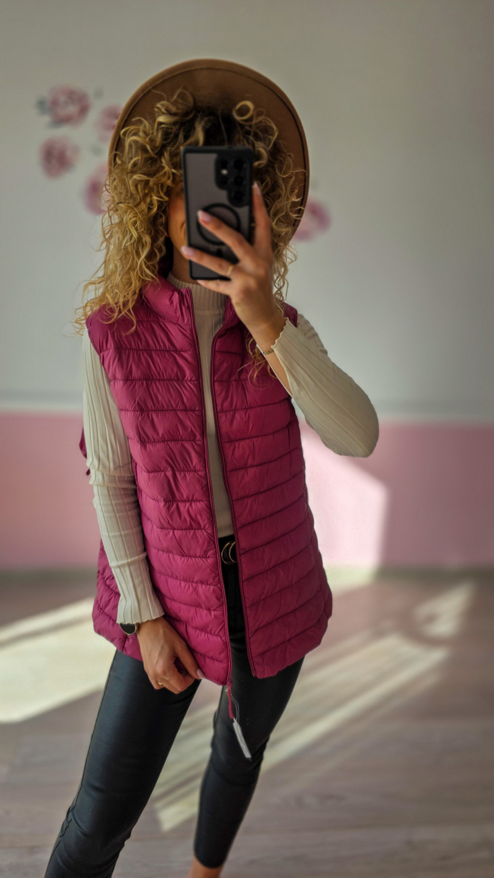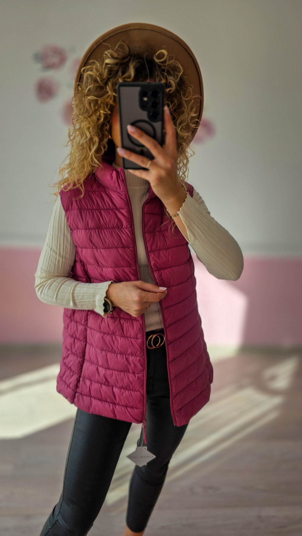Zapinana na suwak, z wysokim kołnierzem chroniącym przed wiatrem, łączy w sobie modny wygląd i praktyczność. Jej intensywny malinowo-różowy odcień pięknie ożywia nawet najprostszy look. Świetnie komponuje się z golfem, swetrem czy bluzą – niezastąpiona w warstwowych stylizacjach.