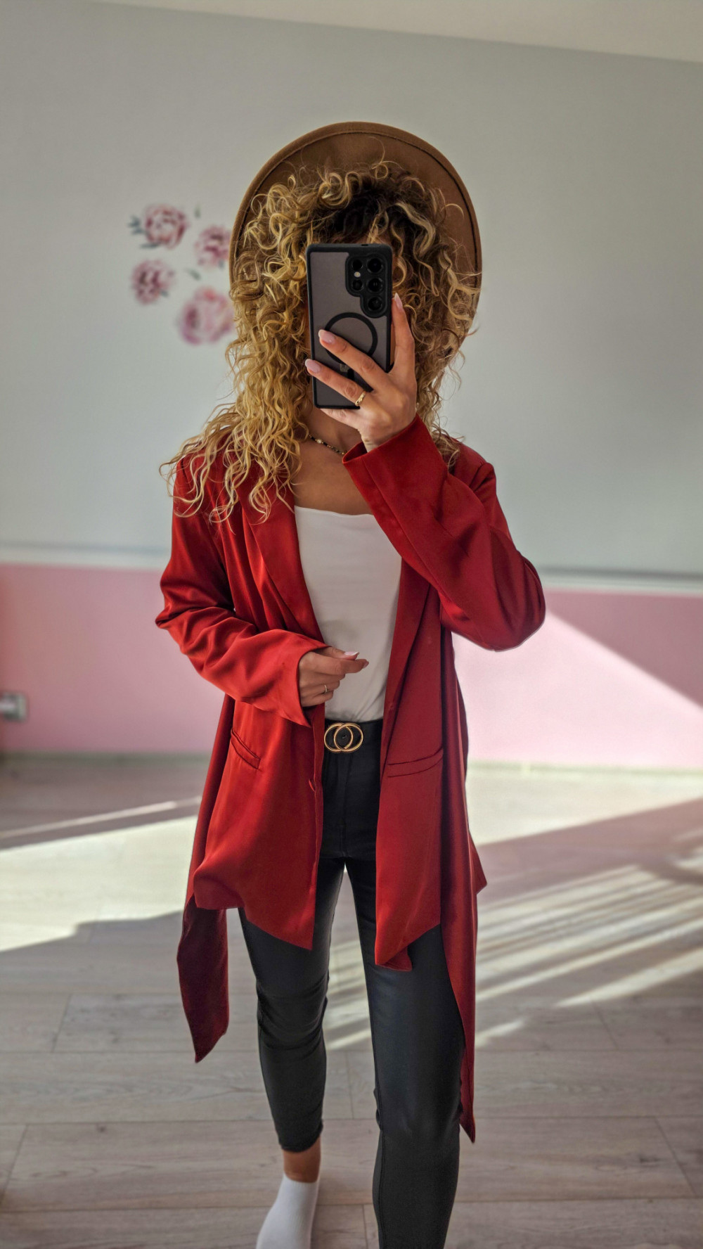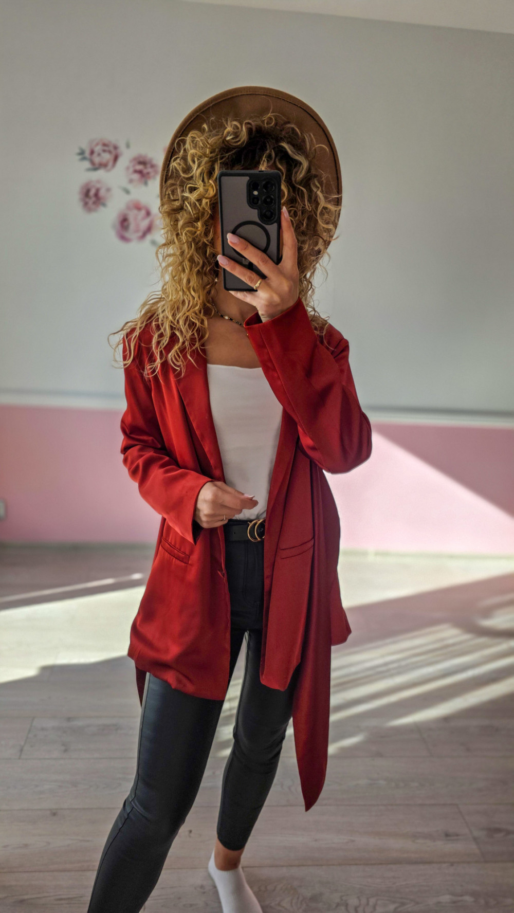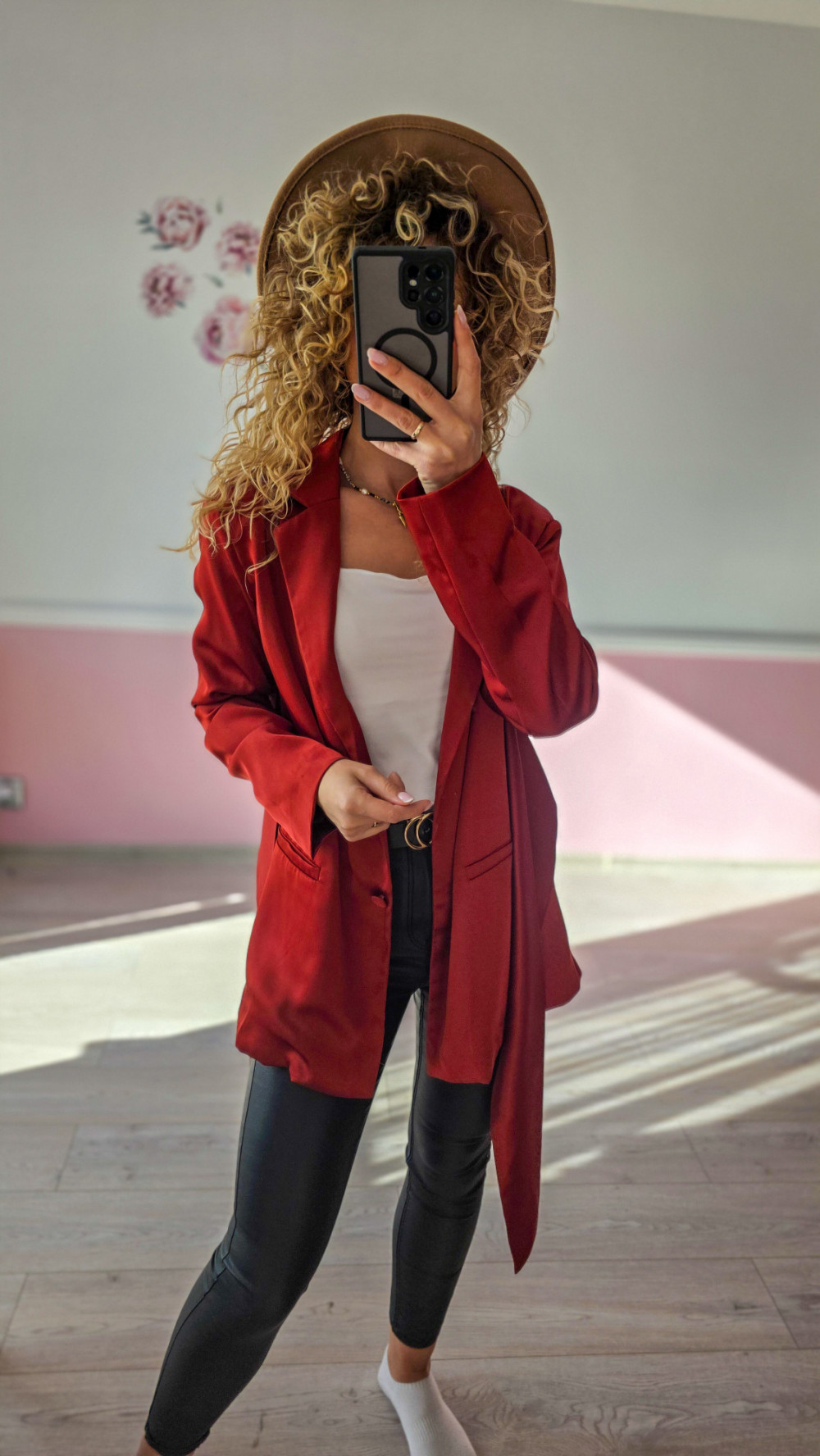 Model świetnie sprawdzi się zarówno do pracy, jak i na spotkania czy wieczorne wyjścia. Czerwony kolor dodaje energii i pewności siebie, tworząc efektowny, nowoczesny look.