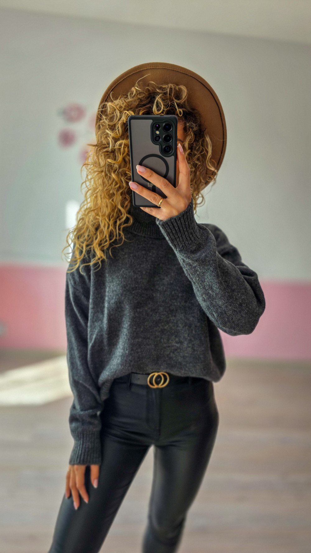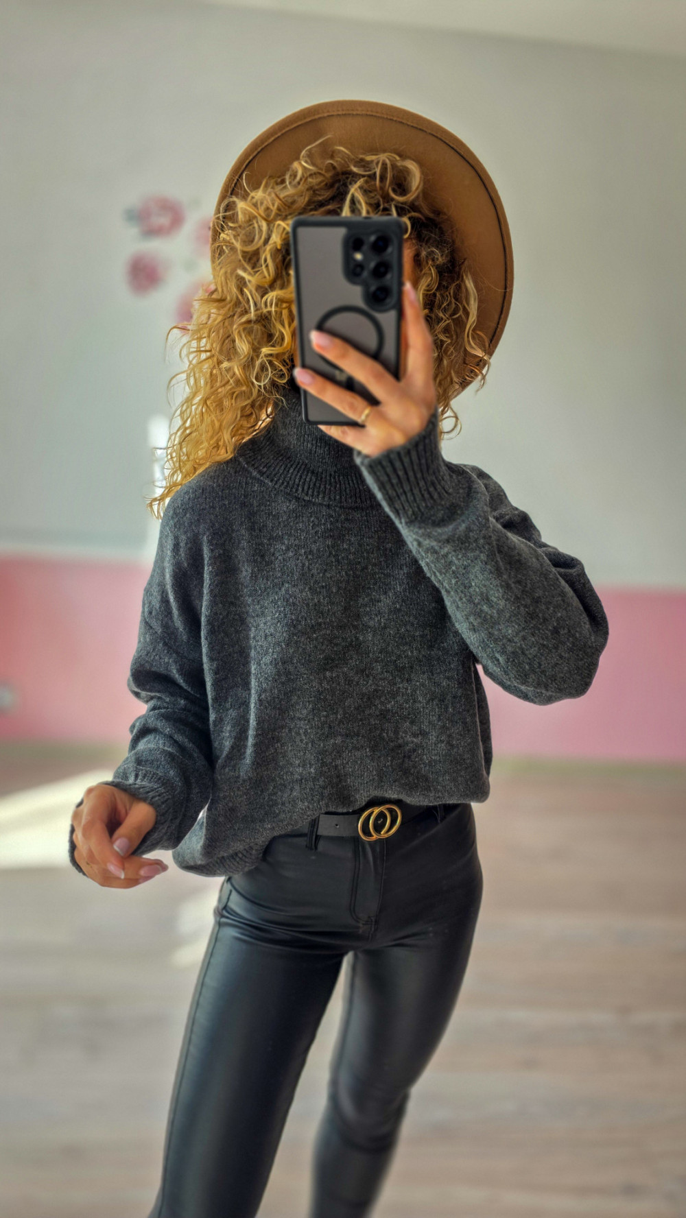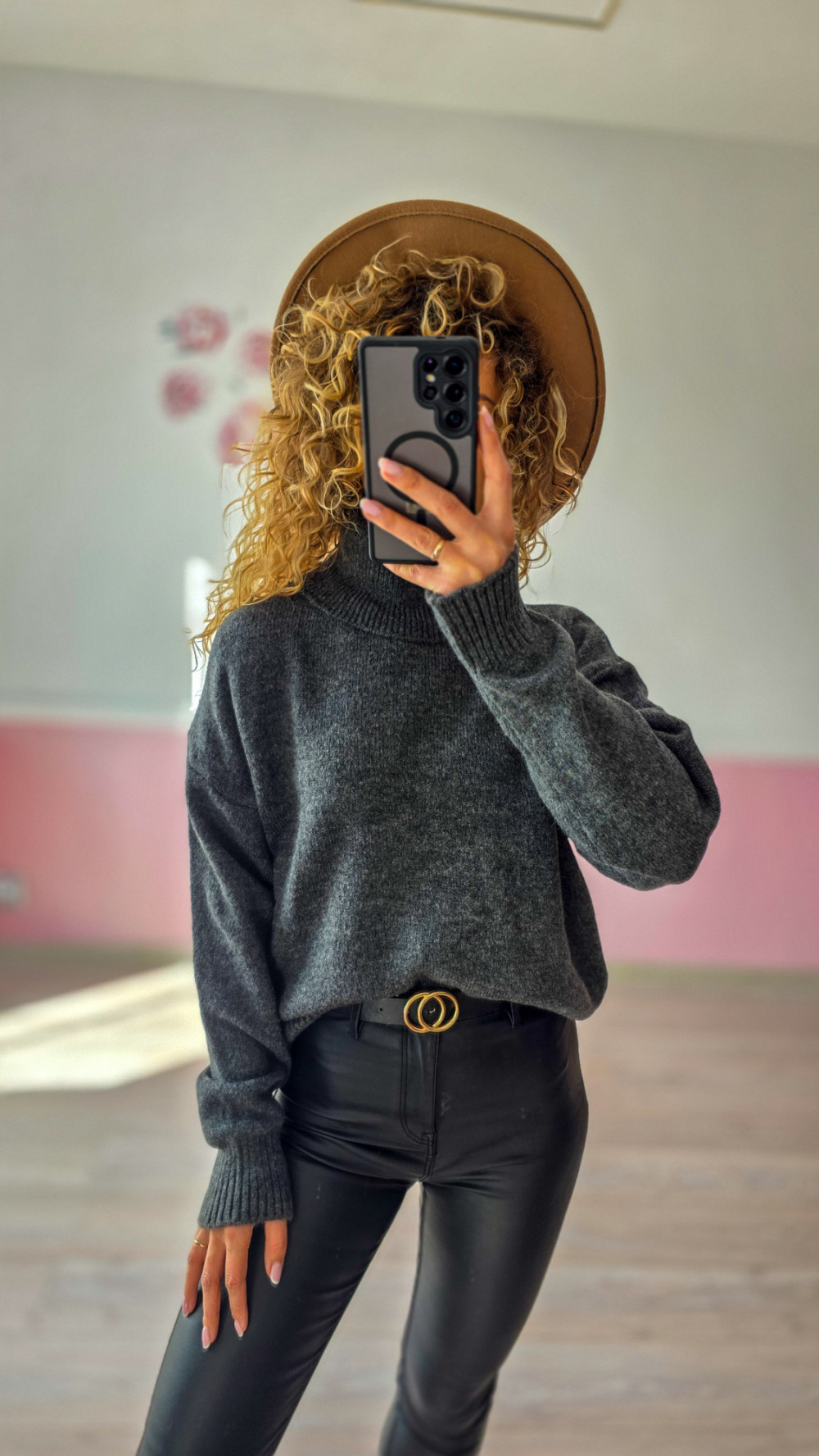 Miękki i ciepły grafitowy golf damski oversize to obowiązkowy element jesienno-zimowych stylizacji. Wykonany z miękkiej przędzy, doskonale chroni przed chłodem, zapewniając jednocześnie lekkość i komfort.