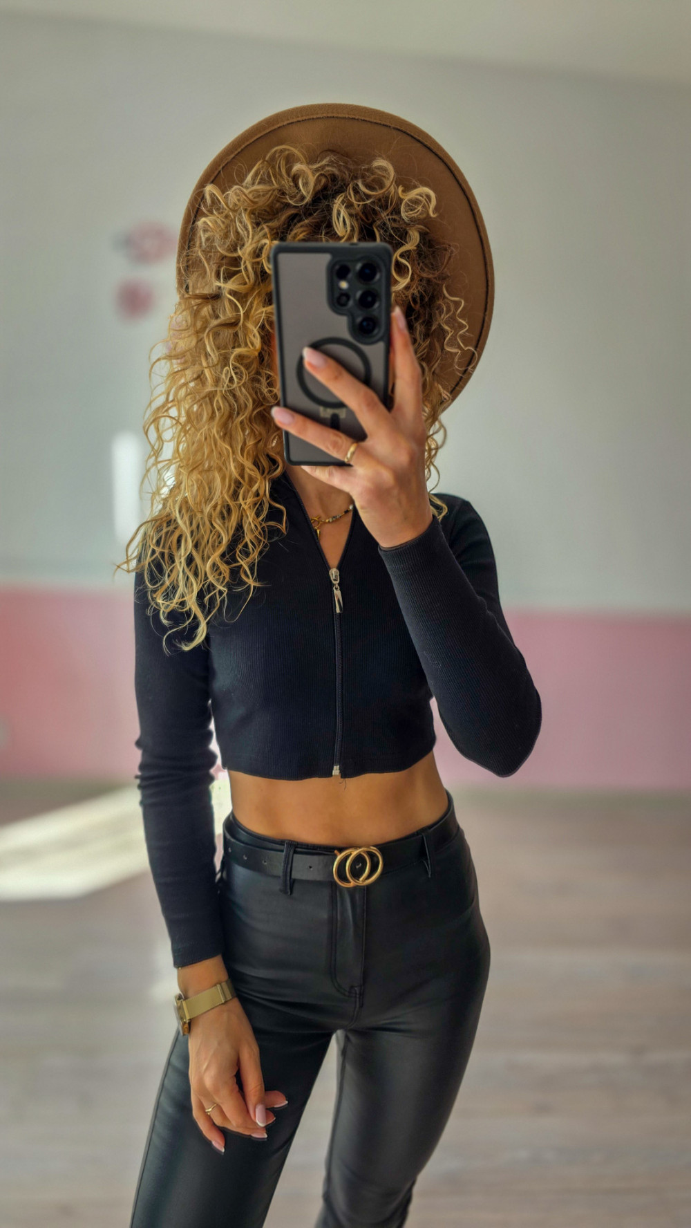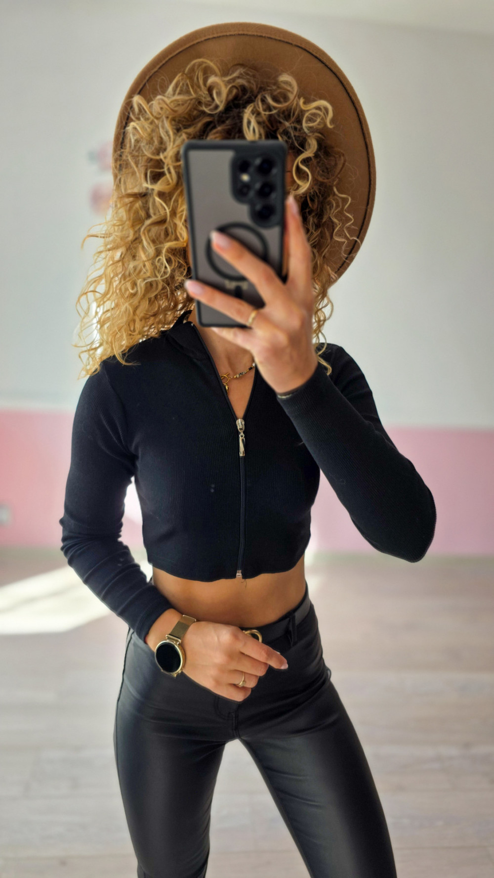 Nowoczesny, zmysłowy i wygodny – taki właśnie jest czarny crop top z długim rękawem. Uszyty z elastycznego materiału, doskonale dopasowuje się do sylwetki, podkreślając talię i biust. Zamek błyskawiczny z przodu nadaje mu charakteru i sprawia, że możesz dopasować dekolt do okazji.