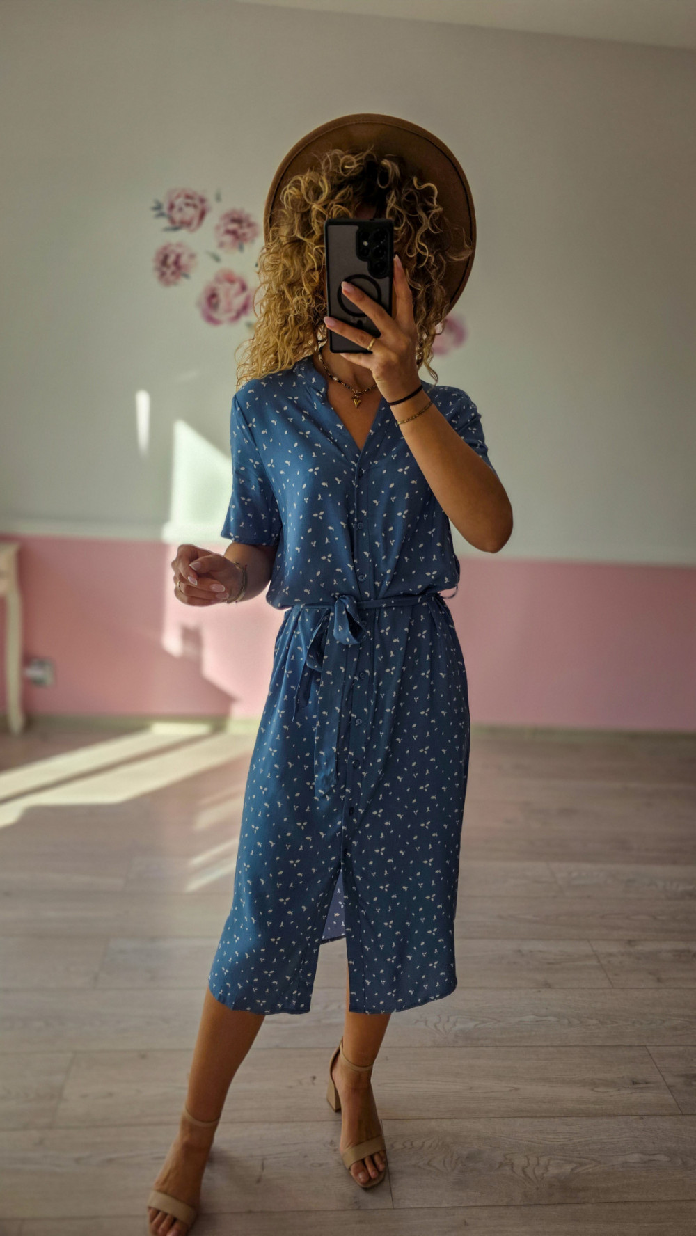 Zapinana na guziki, z krótkim rękawem i długością midi – sprawdzi się zarówno na co dzień, jak i do pracy czy na spotkanie z przyjaciółkami. Możesz zestawić ją z sandałkami, trampkami lub klapkami – w każdej wersji wygląda stylowo.